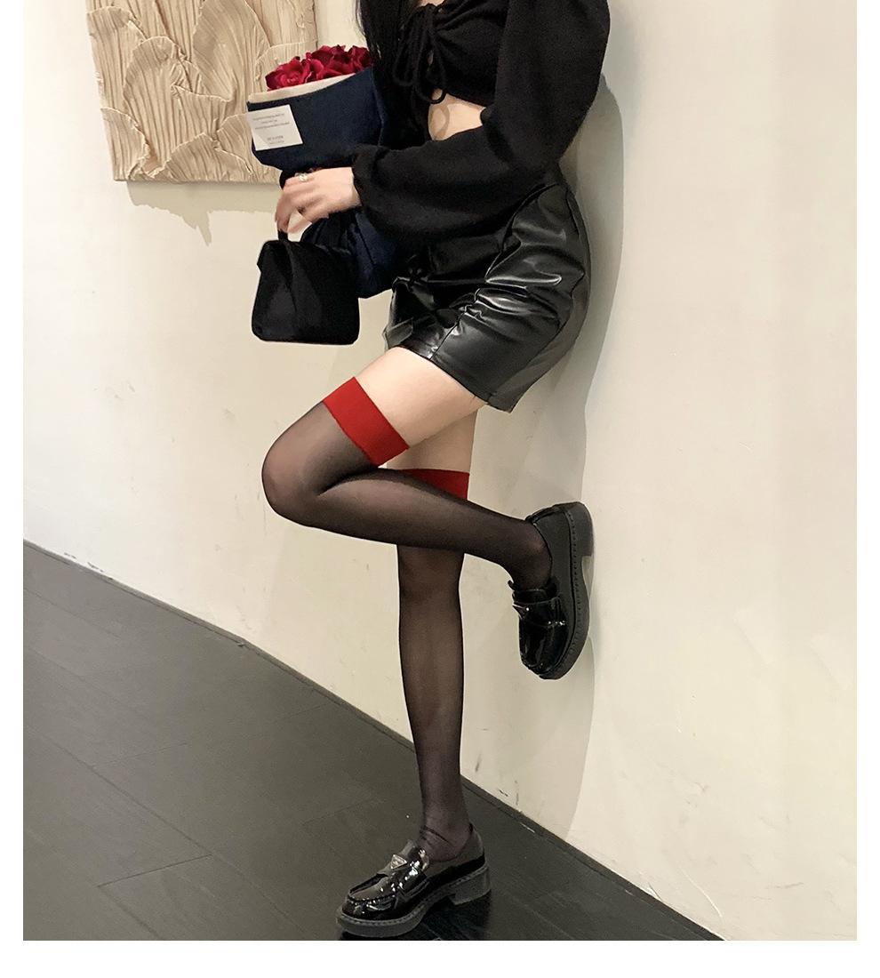 Medias Rojas Ins Celebridad Cibernética Sexy Costuras Rojas Calcetines Hulk Finas Bloque de Color Seda Negra Puras Medias Largas por Encima de la Rodilla