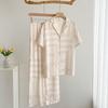 Pijama de manga larga de seda helada de alta gama para primavera y otoño, cárdigan informal y fino para mujer.