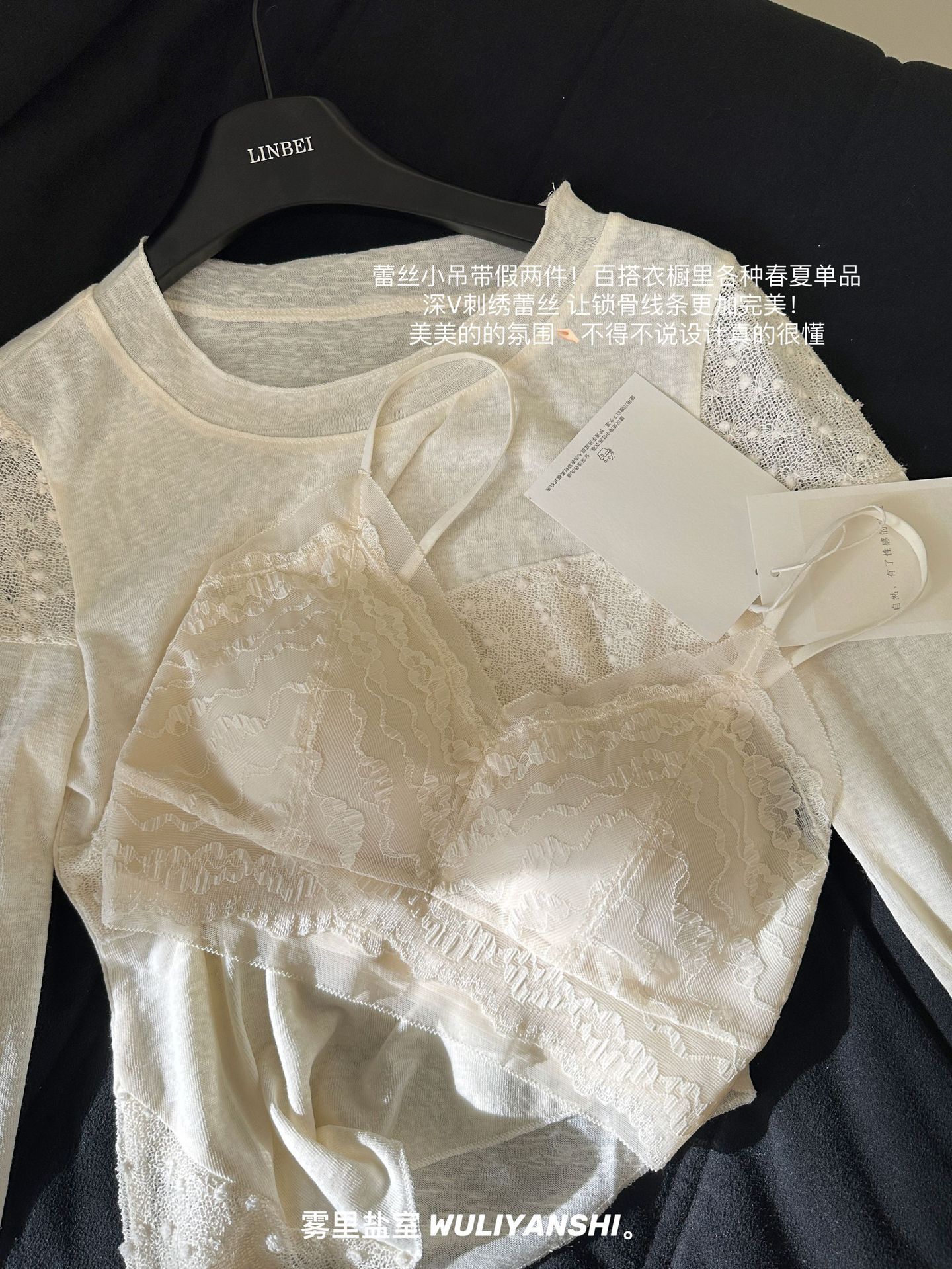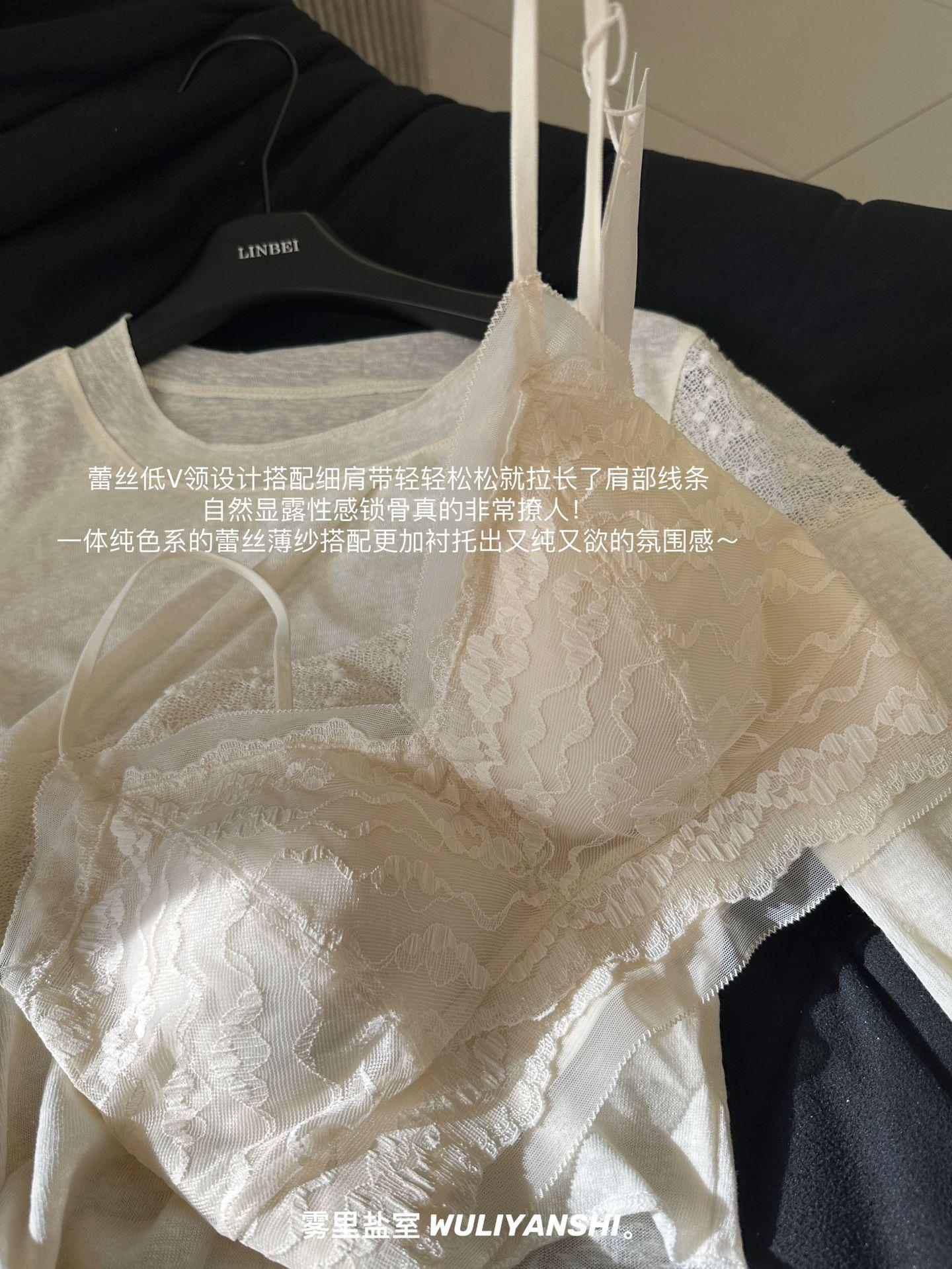 Camisola de Tirantes Espagueti de Encaje Jacquard sin Espalda Grande, Sin Costuras, Nude, Ultrafina de Piel de Hielo, Cuello en V, Transpirable