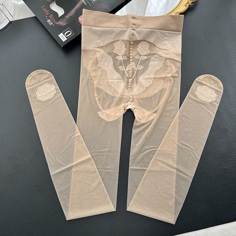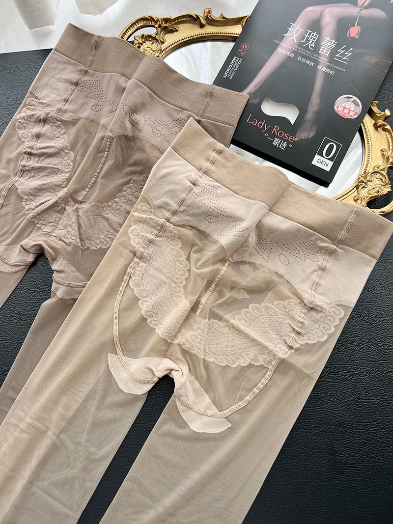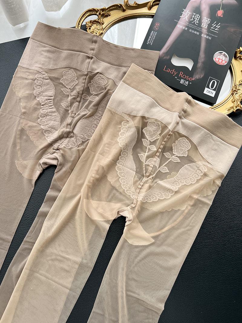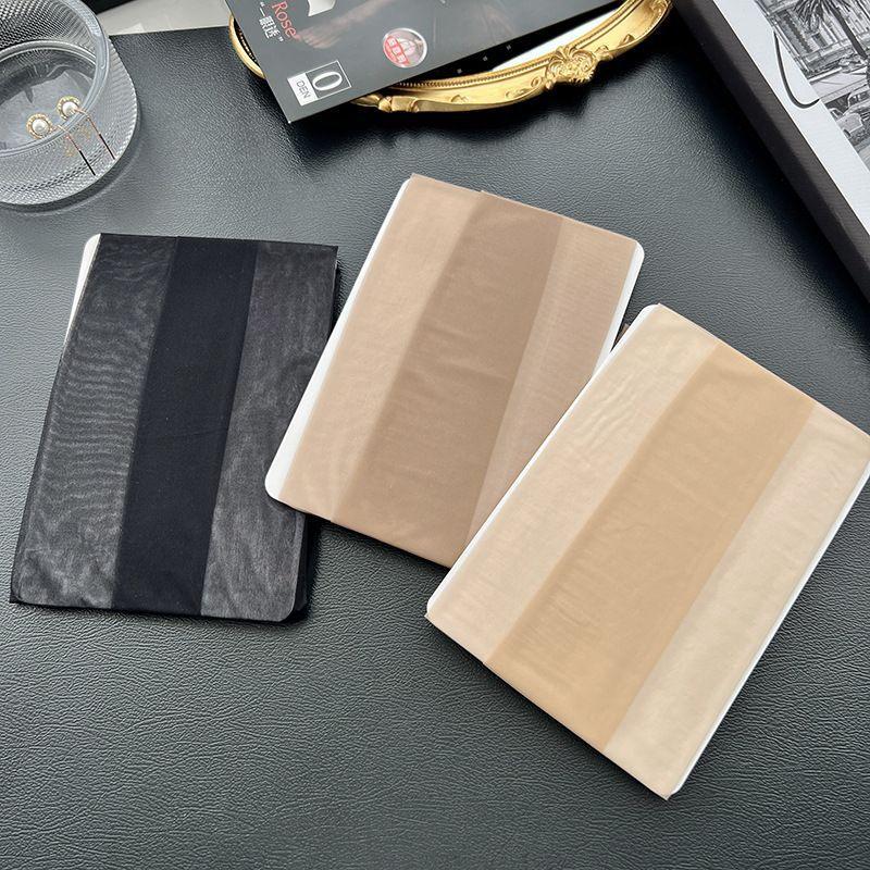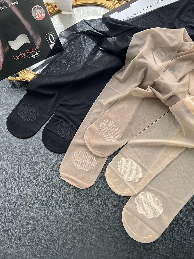 Medias de seda negras para mujer, finas, de corte libre, invisibles, suaves y ligeras, con encaje y base de rosa.
