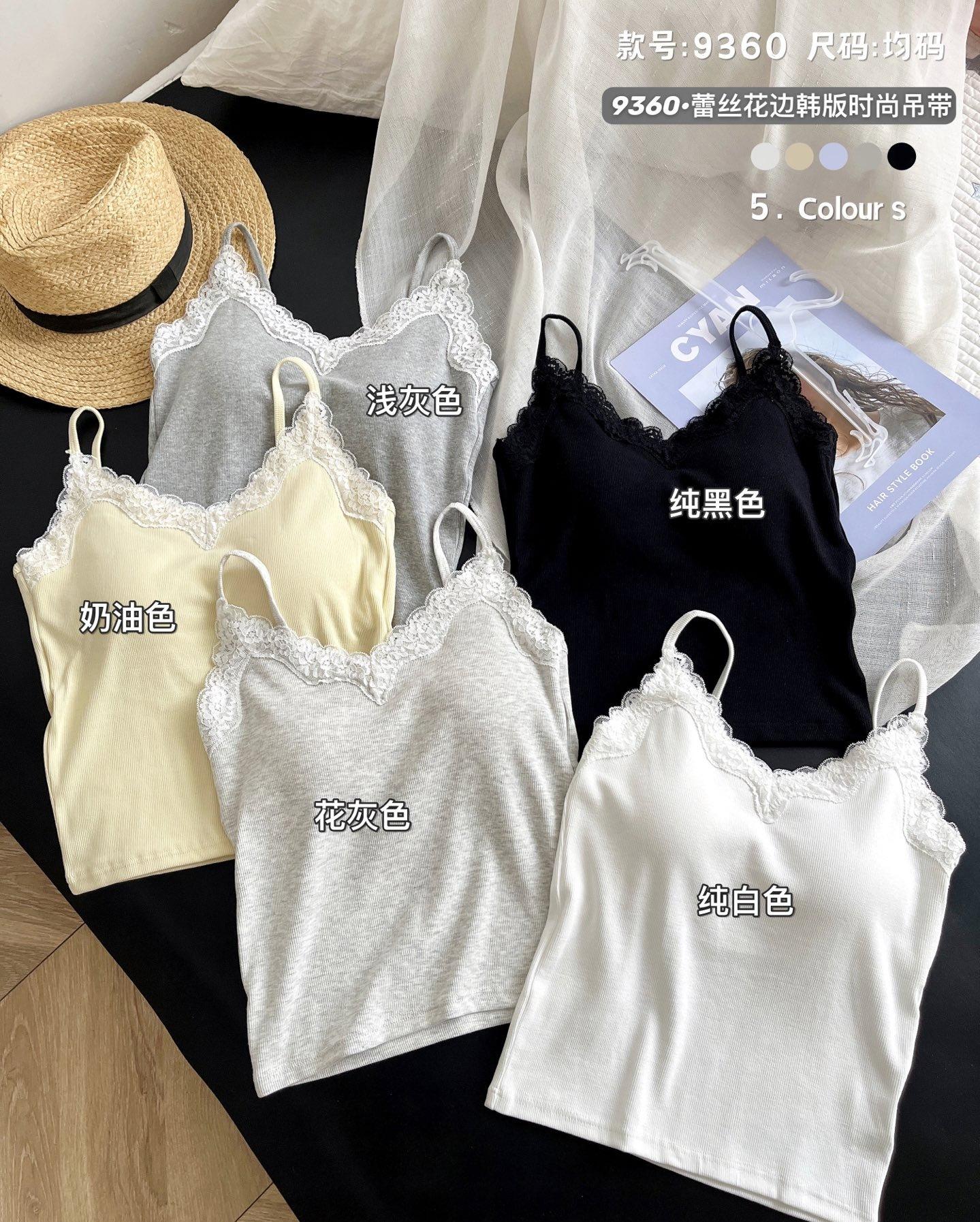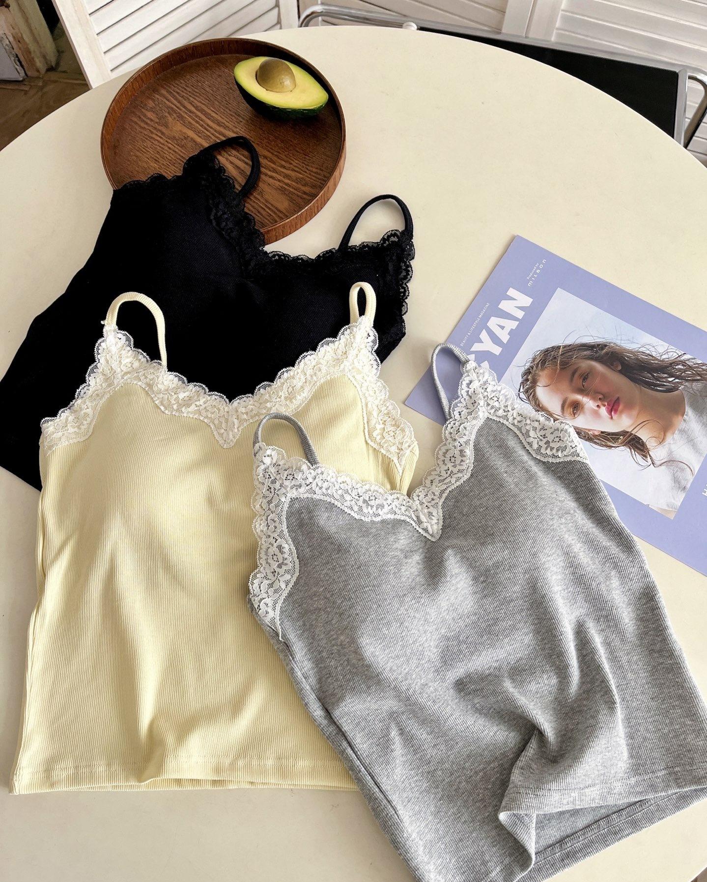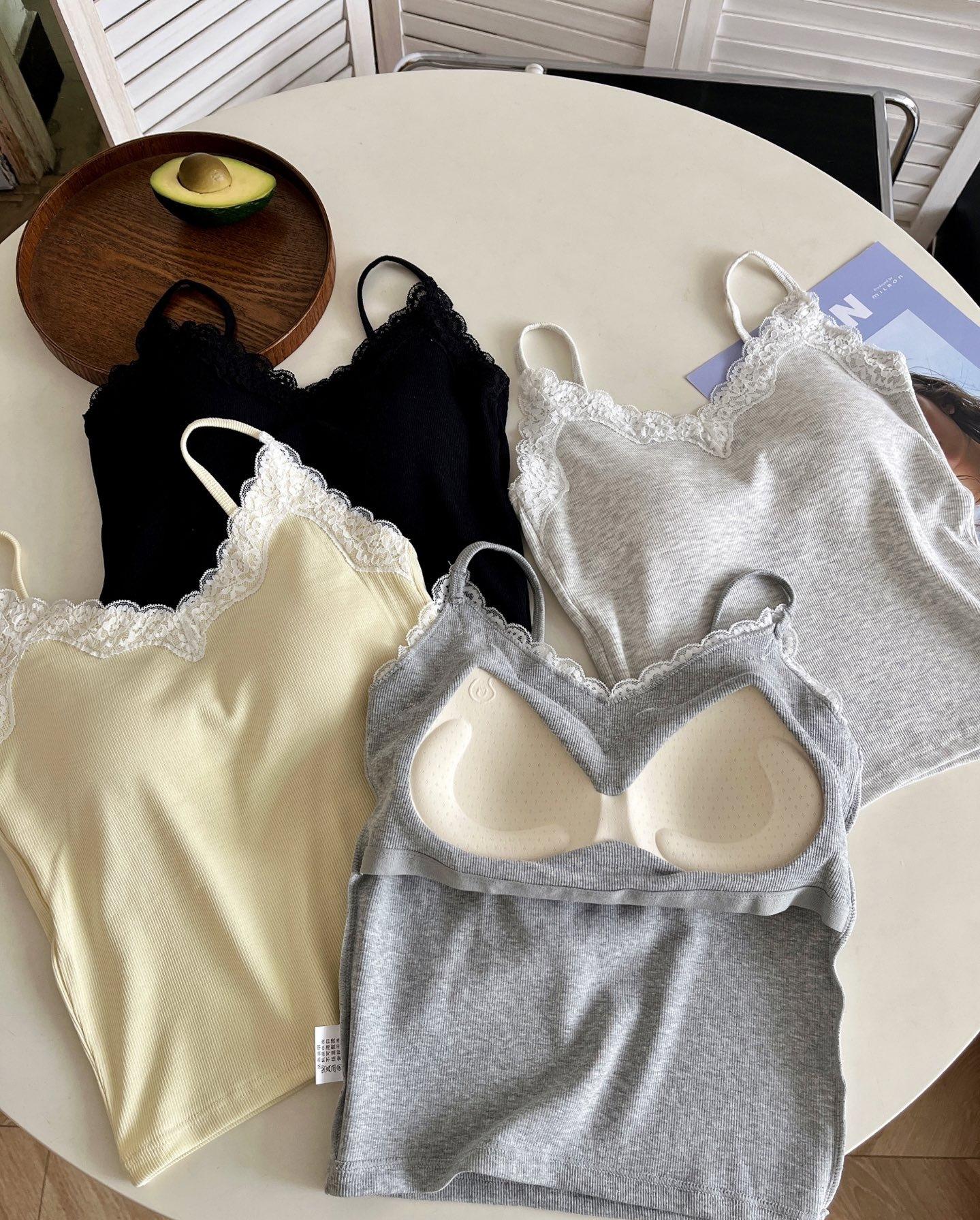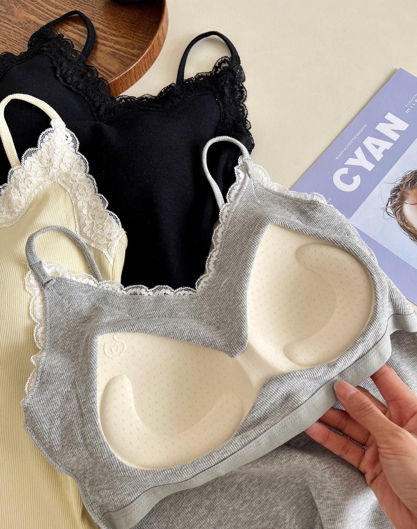 Chaleco de Espalda Hermosa Estilo Coreano de Una Copa con Encaje a Juego de Color Sexy Versátil Transpirable Tirantes Espagueti Algodón Tirantes para Mujer 9360