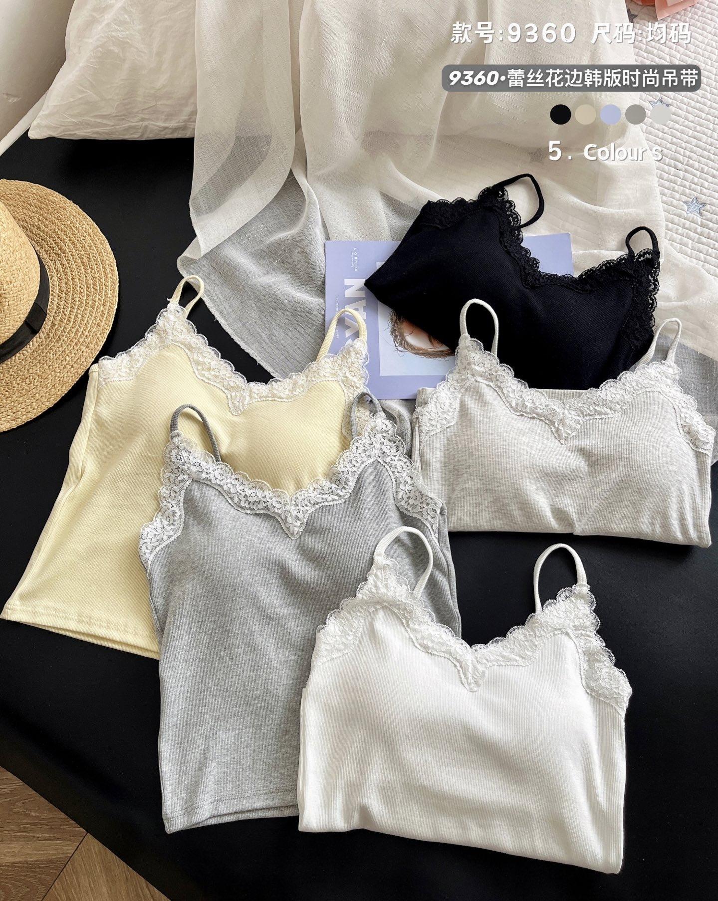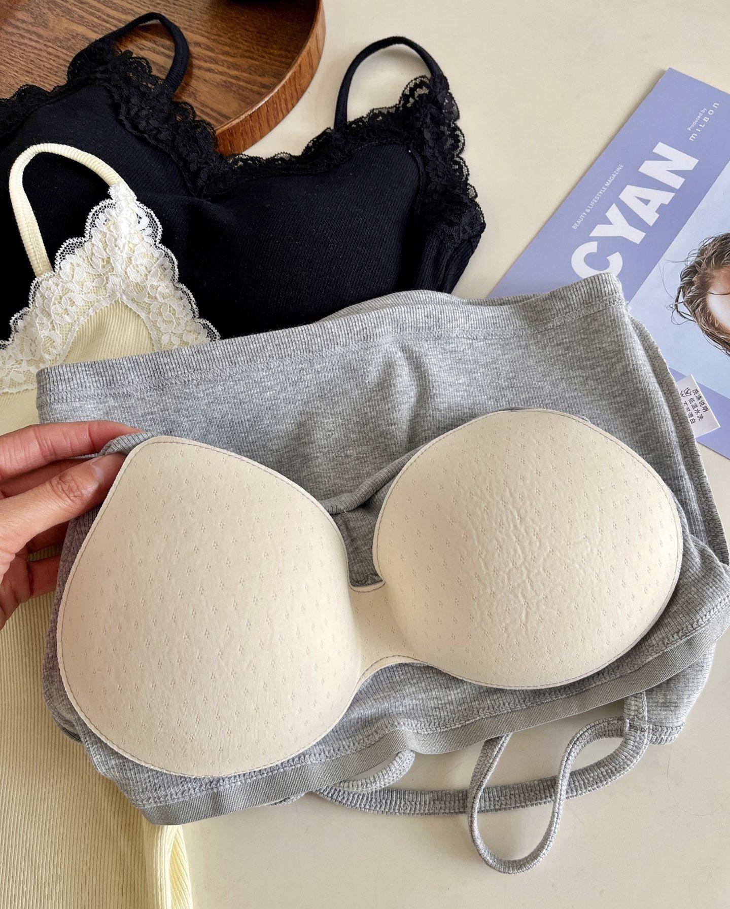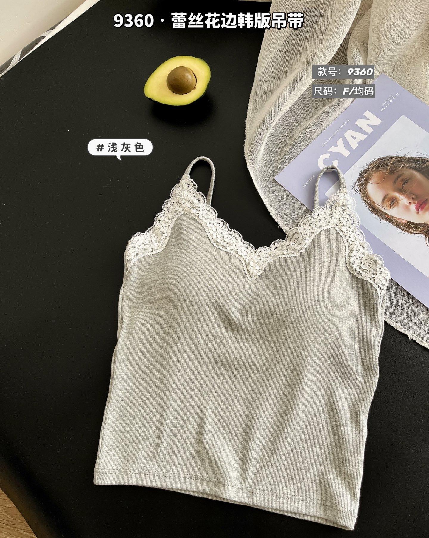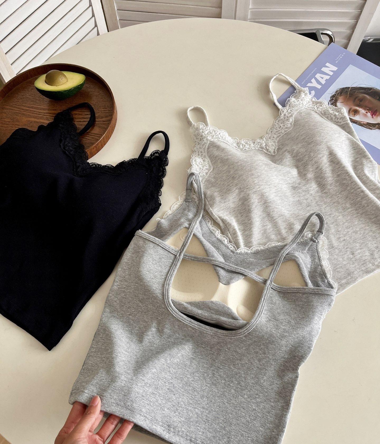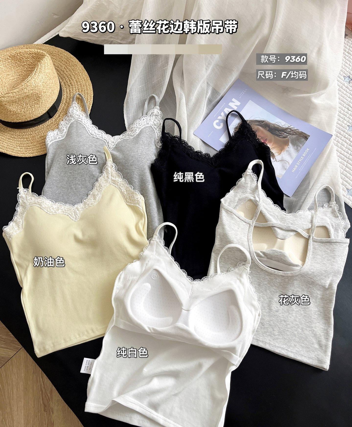 Chaleco de Espalda Hermosa Estilo Coreano de Una Copa con Encaje a Juego de Color Sexy Versátil Transpirable Tirantes Espagueti Algodón Tirantes para Mujer 9360