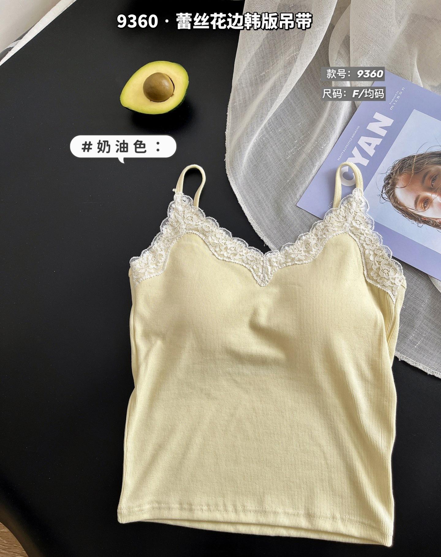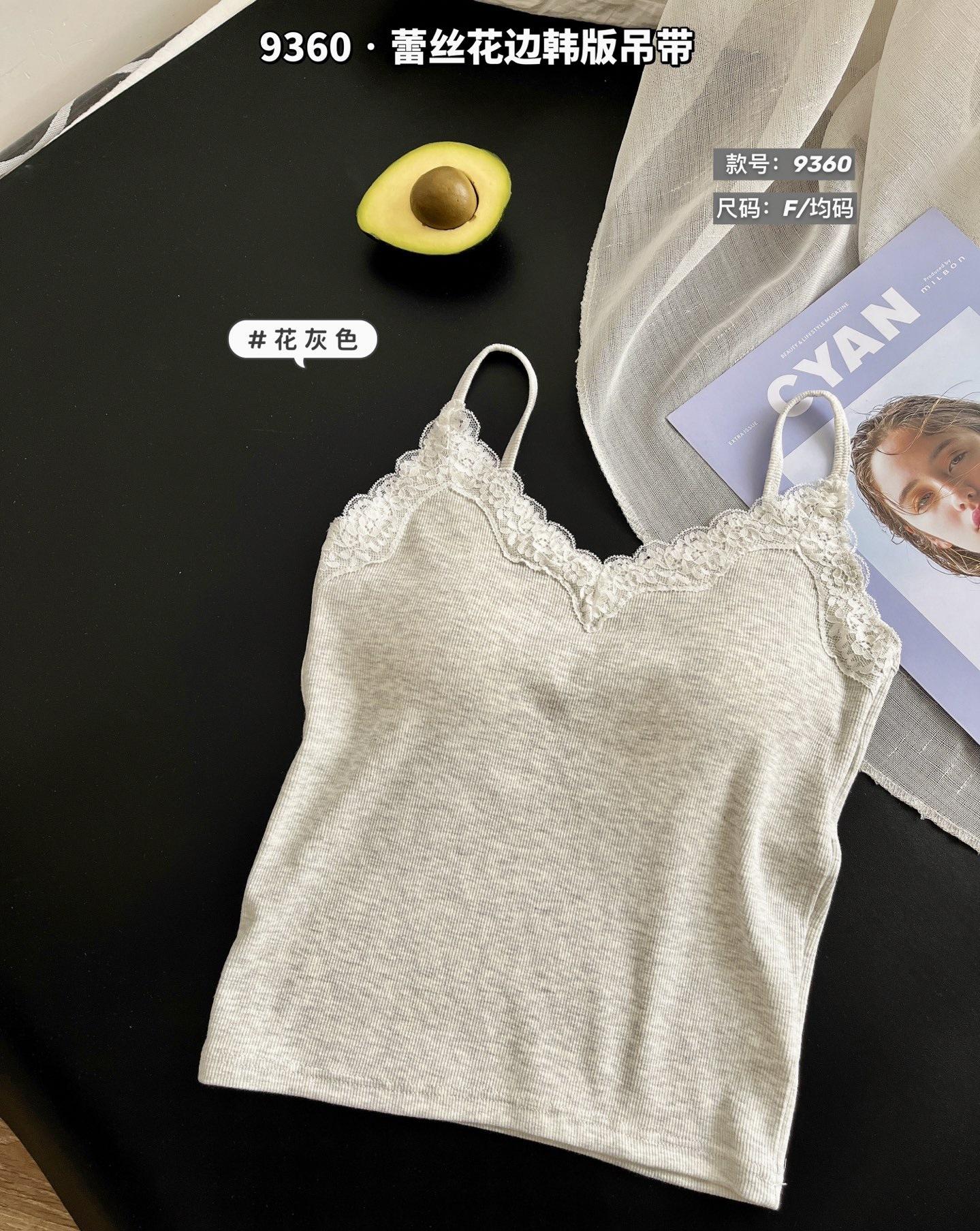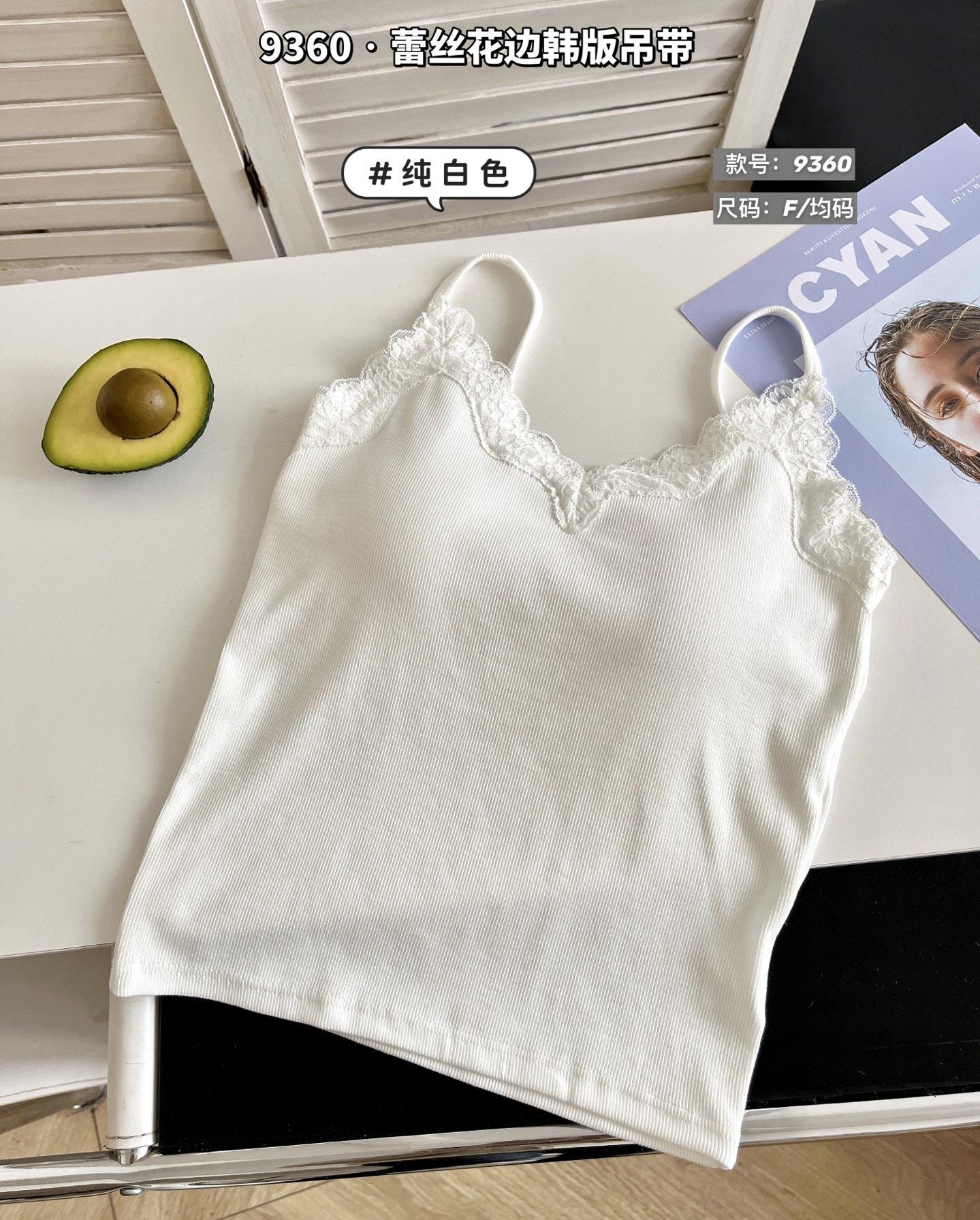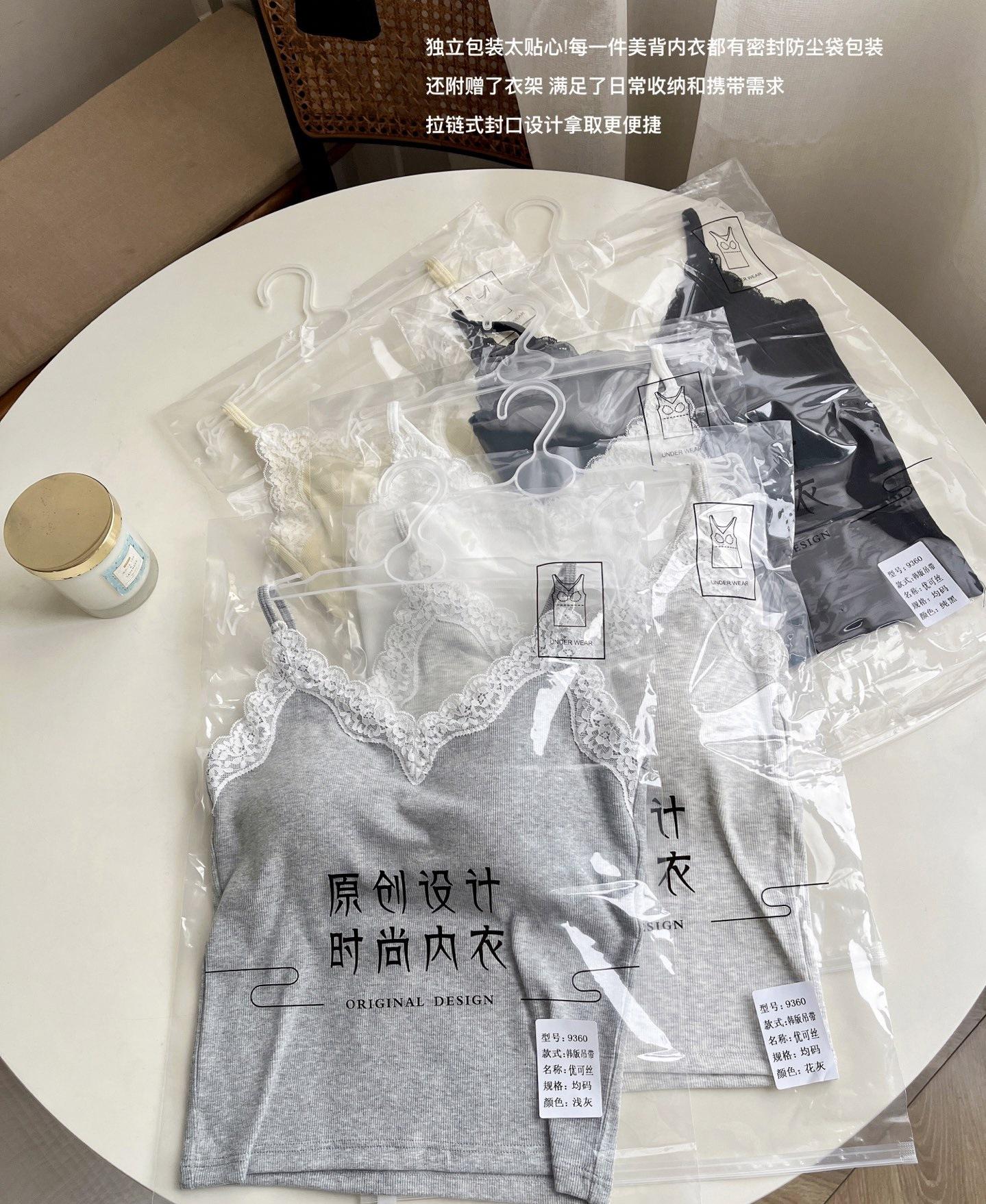 Chaleco de Espalda Hermosa Estilo Coreano de Una Copa con Encaje a Juego de Color Sexy Versátil Transpirable Tirantes Espagueti Algodón Tirantes para Mujer 9360