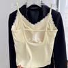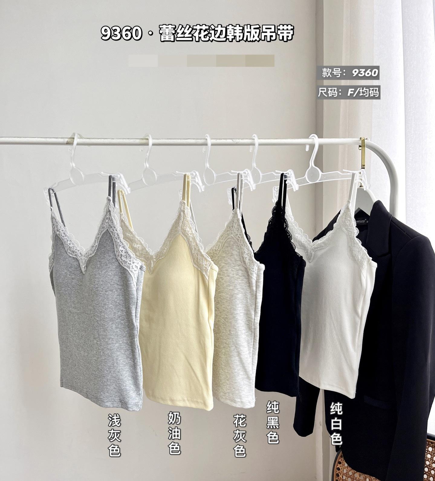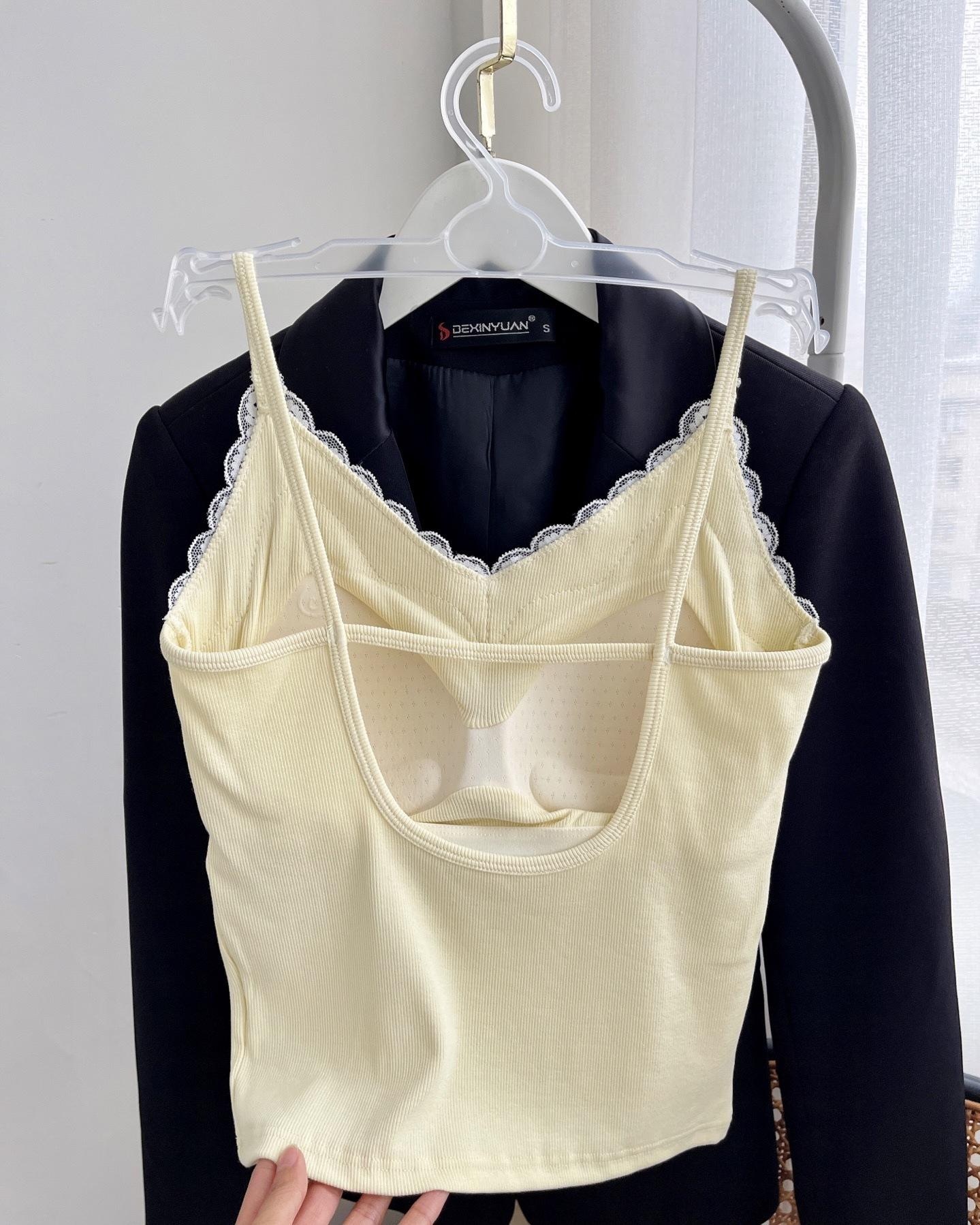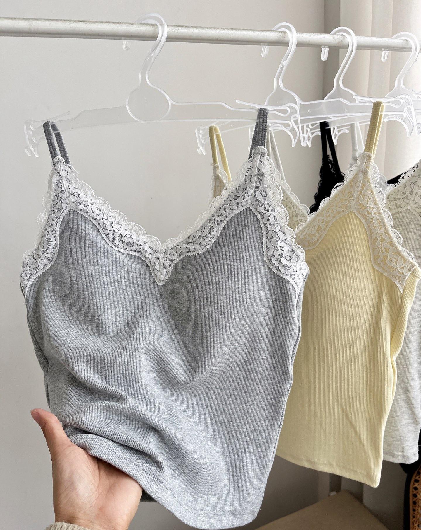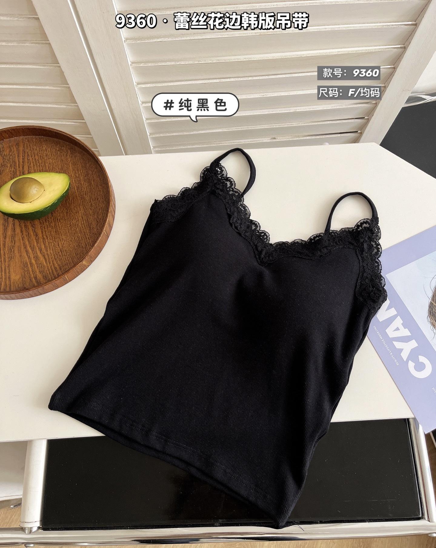 Chaleco de Espalda Hermosa Estilo Coreano de Una Copa con Encaje a Juego de Color Sexy Versátil Transpirable Tirantes Espagueti Algodón Tirantes para Mujer 9360