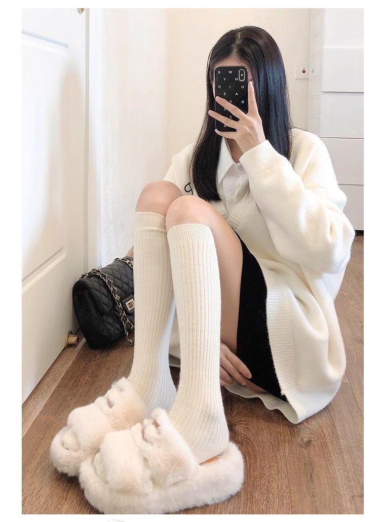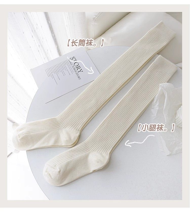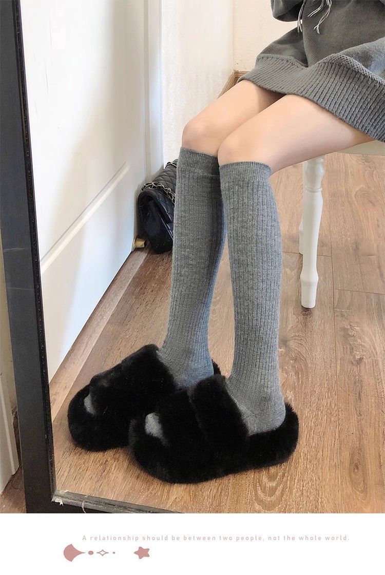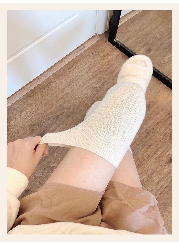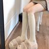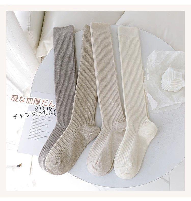 Calcetines blancos de pantorrilla con forro polar para otoño e invierno, medias blancas gruesas y cálidas para mujer, calcetines grises hasta la rodilla, calcetines de tubo de lana