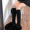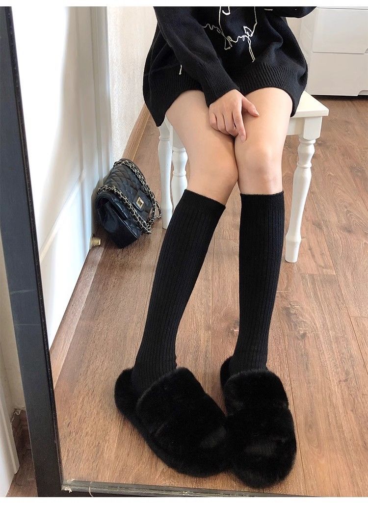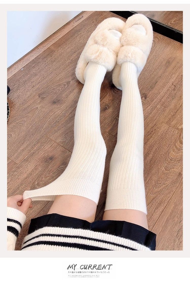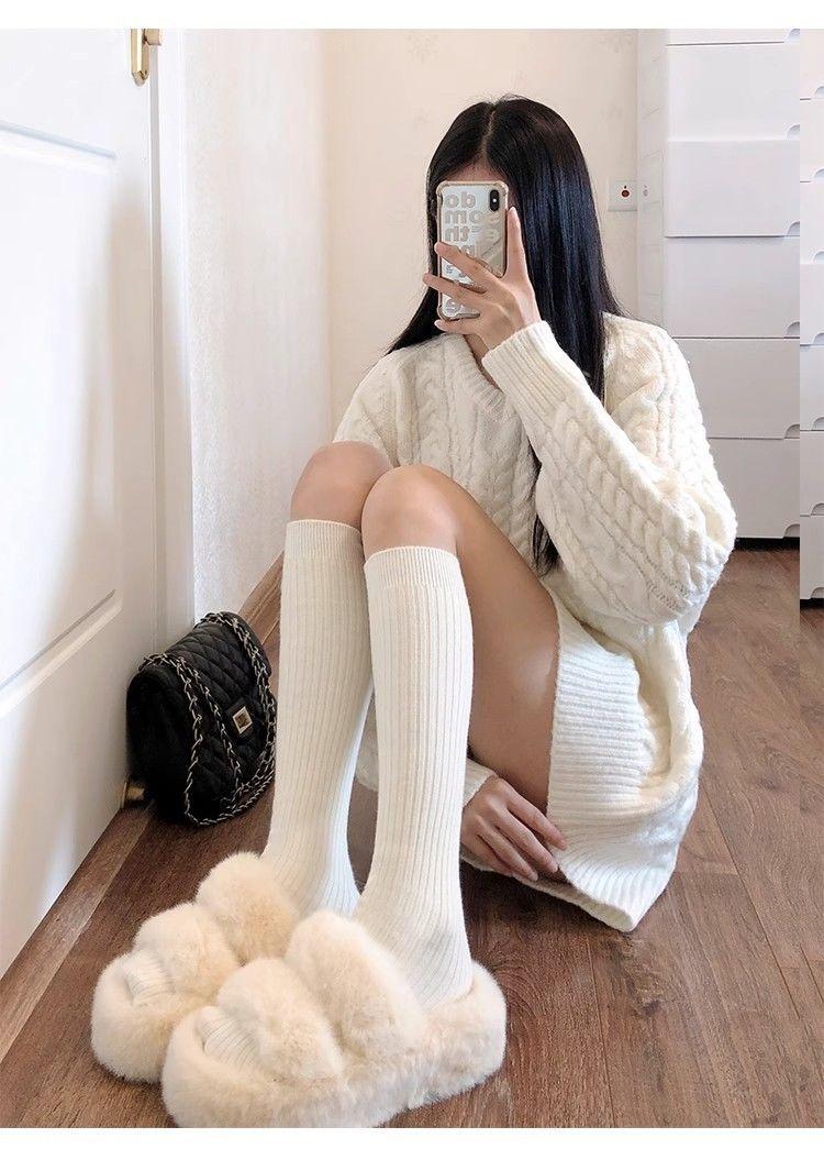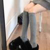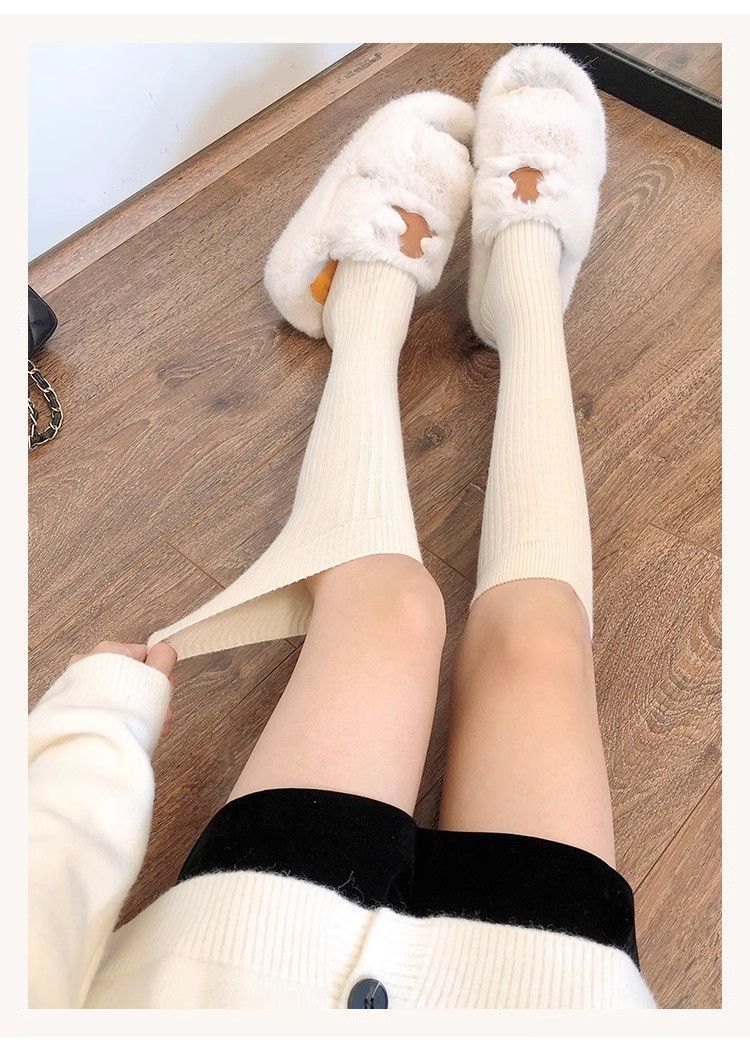 Calcetines blancos de pantorrilla con forro polar para otoño e invierno, medias blancas gruesas y cálidas para mujer, calcetines grises hasta la rodilla, calcetines de tubo de lana