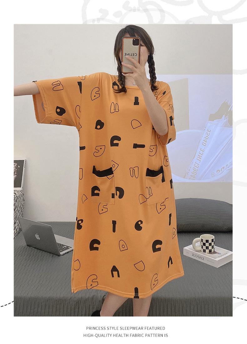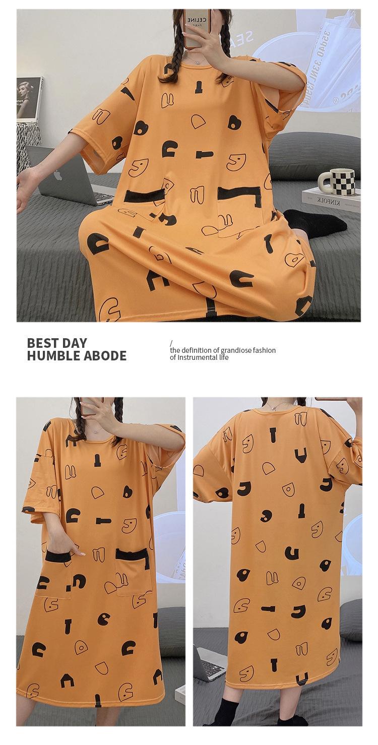 Camisón de Verano de Alta Gama para Mujer de Manga Corta Holgado hasta la Rodilla de Largo Medio Talla Grande Estilo Celebridad de Internet Vestido Pijama Nuevo Estilo