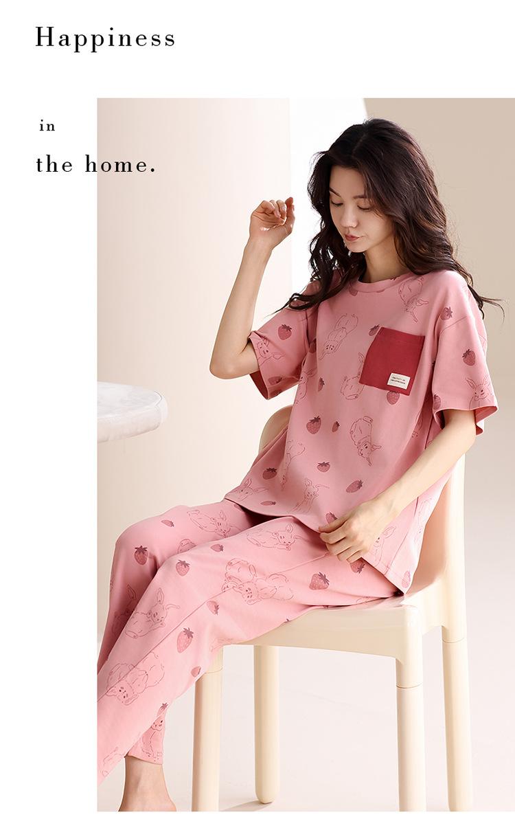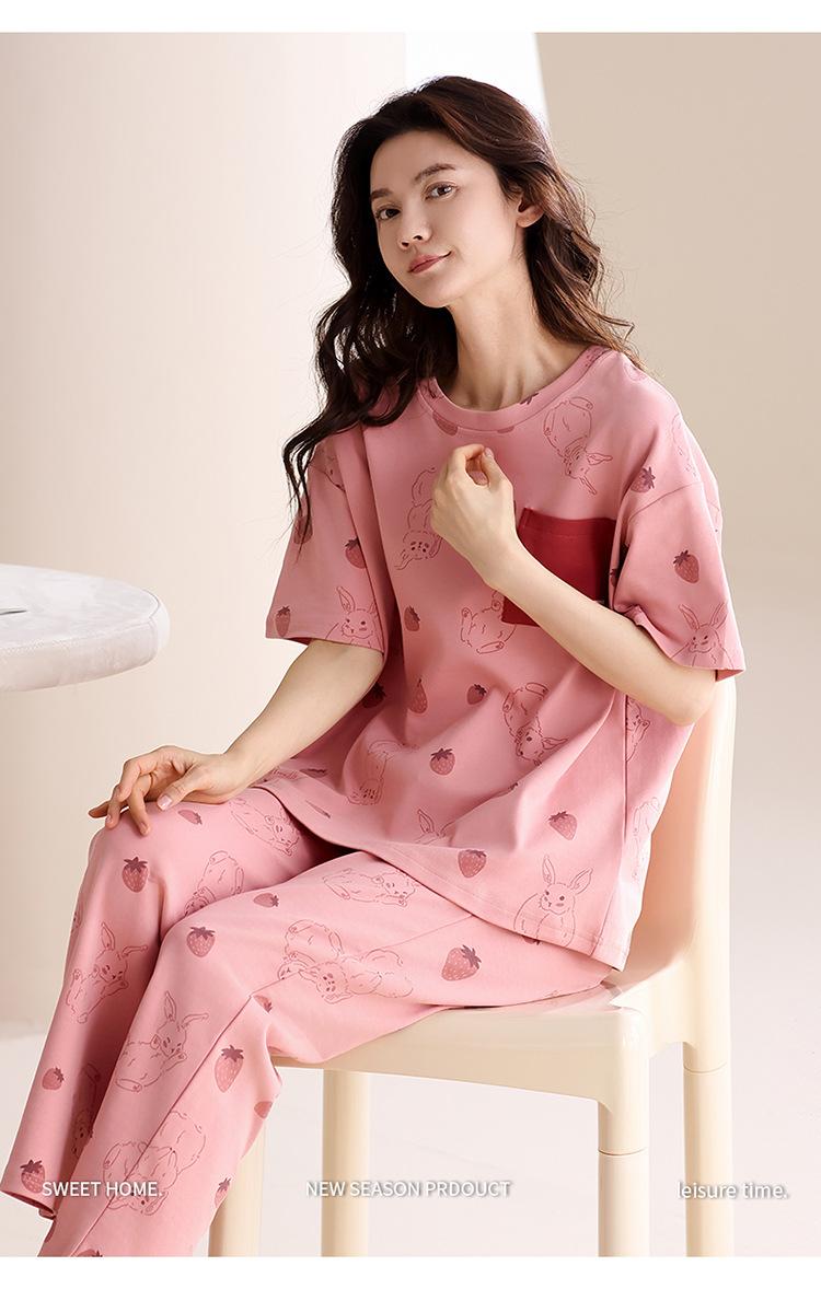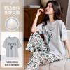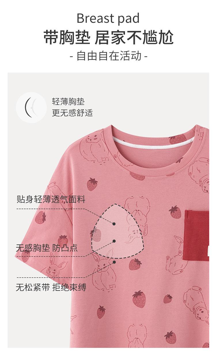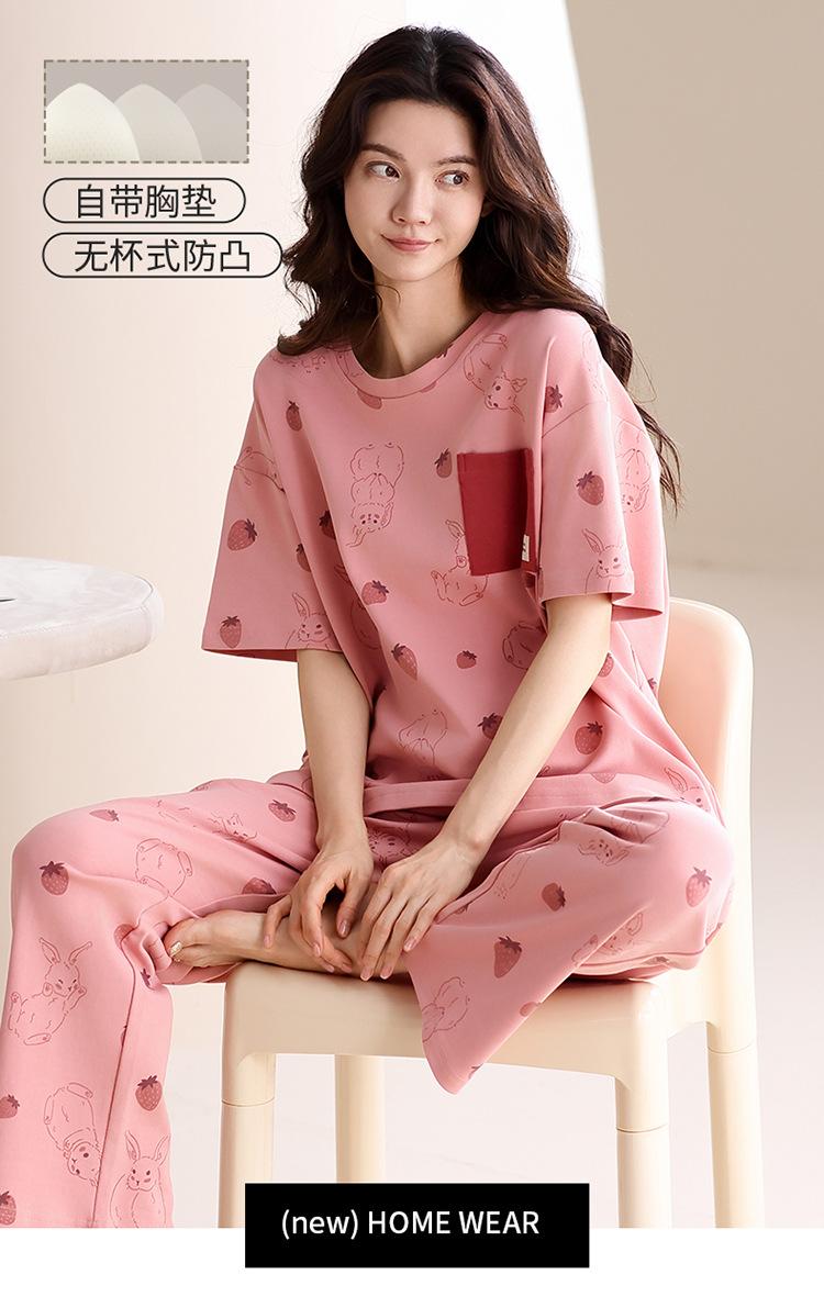 Pijamas de Algodón con Almohadilla en el Pecho para Mujer Verano Pantalón de Manga Corta 2025 Nuevo Traje de Ropa para el Hogar de Dibujos Animados para Salir