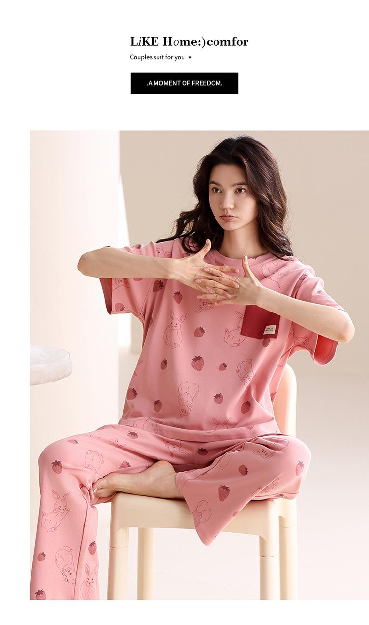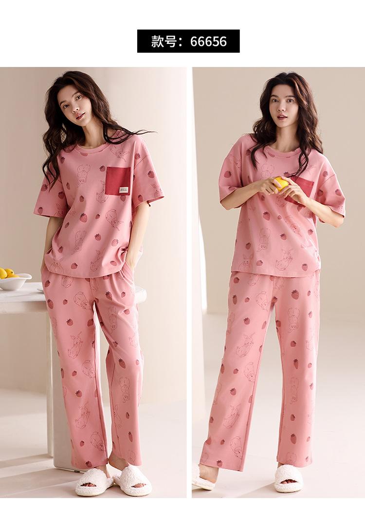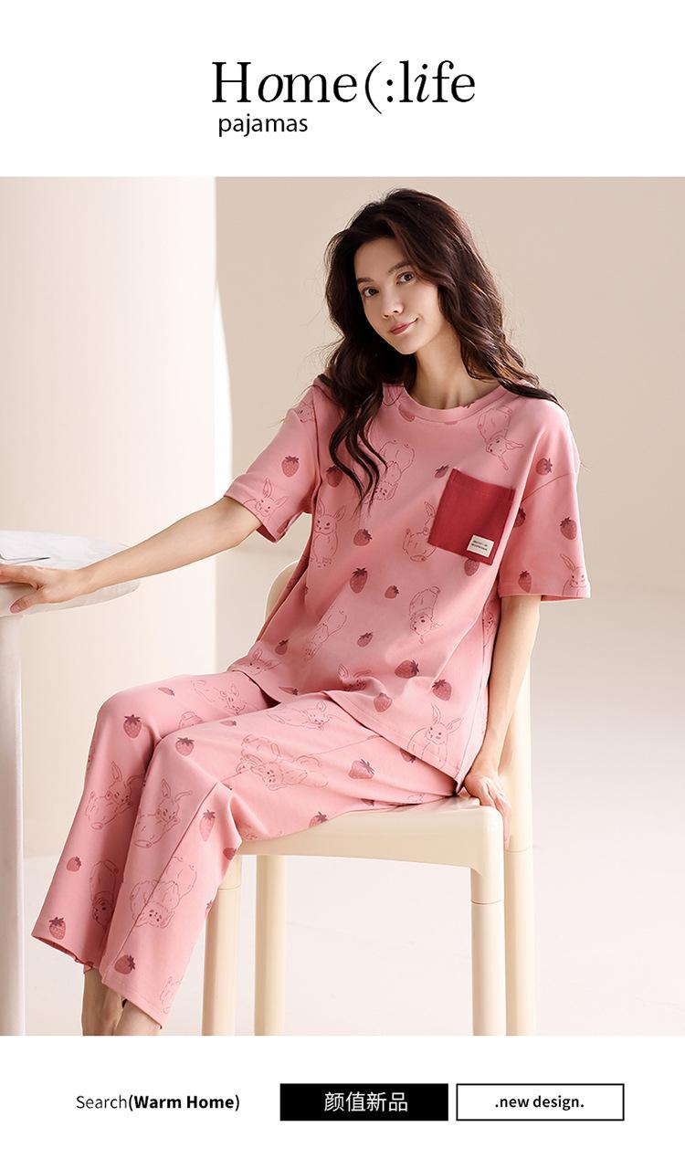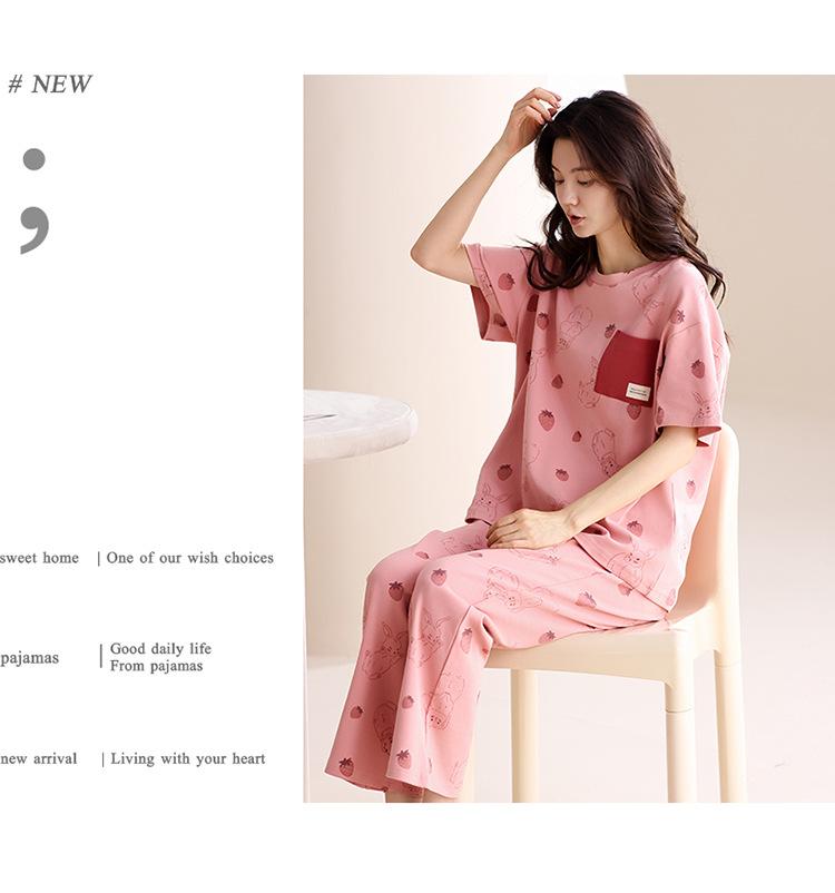 Pijamas de Algodón con Almohadilla en el Pecho para Mujer Verano Pantalón de Manga Corta 2025 Nuevo Traje de Ropa para el Hogar de Dibujos Animados para Salir