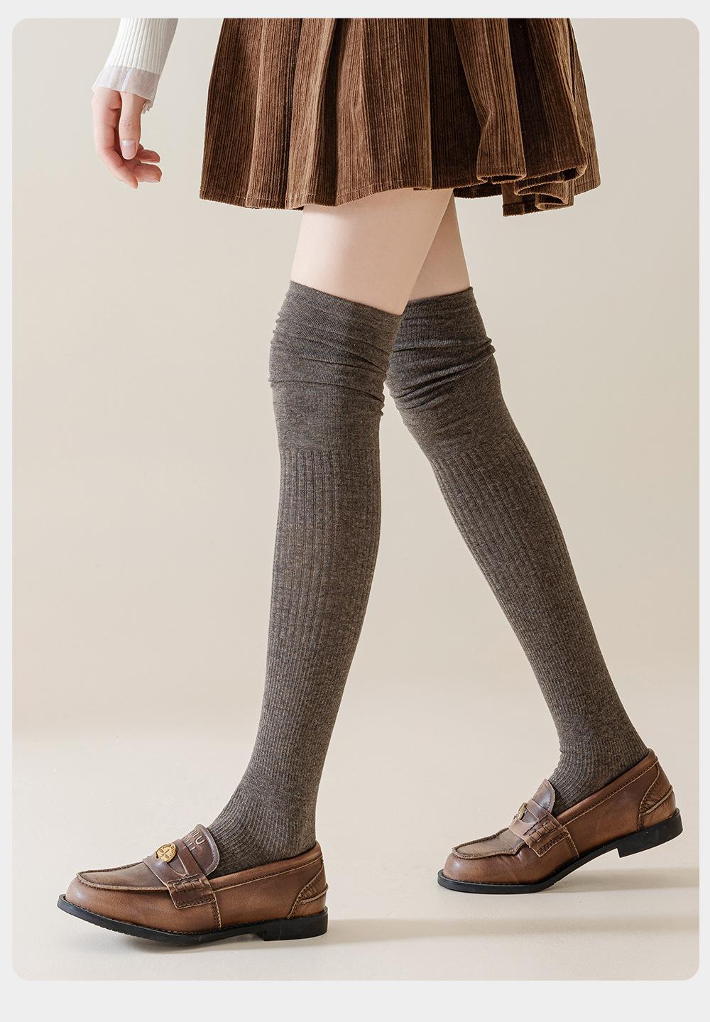 Calcetines Altos de Algodón Puro para Mujer para Otoño e Invierno, Calcetines Altos Gruesos y Cálidos hasta el Muslo, Calcetines de Invierno de Cachemira hasta la Rodilla, Calcetines Zhuji