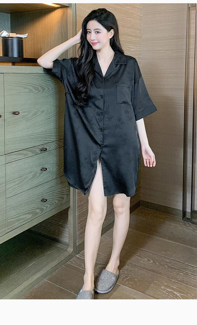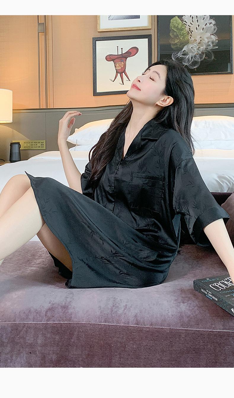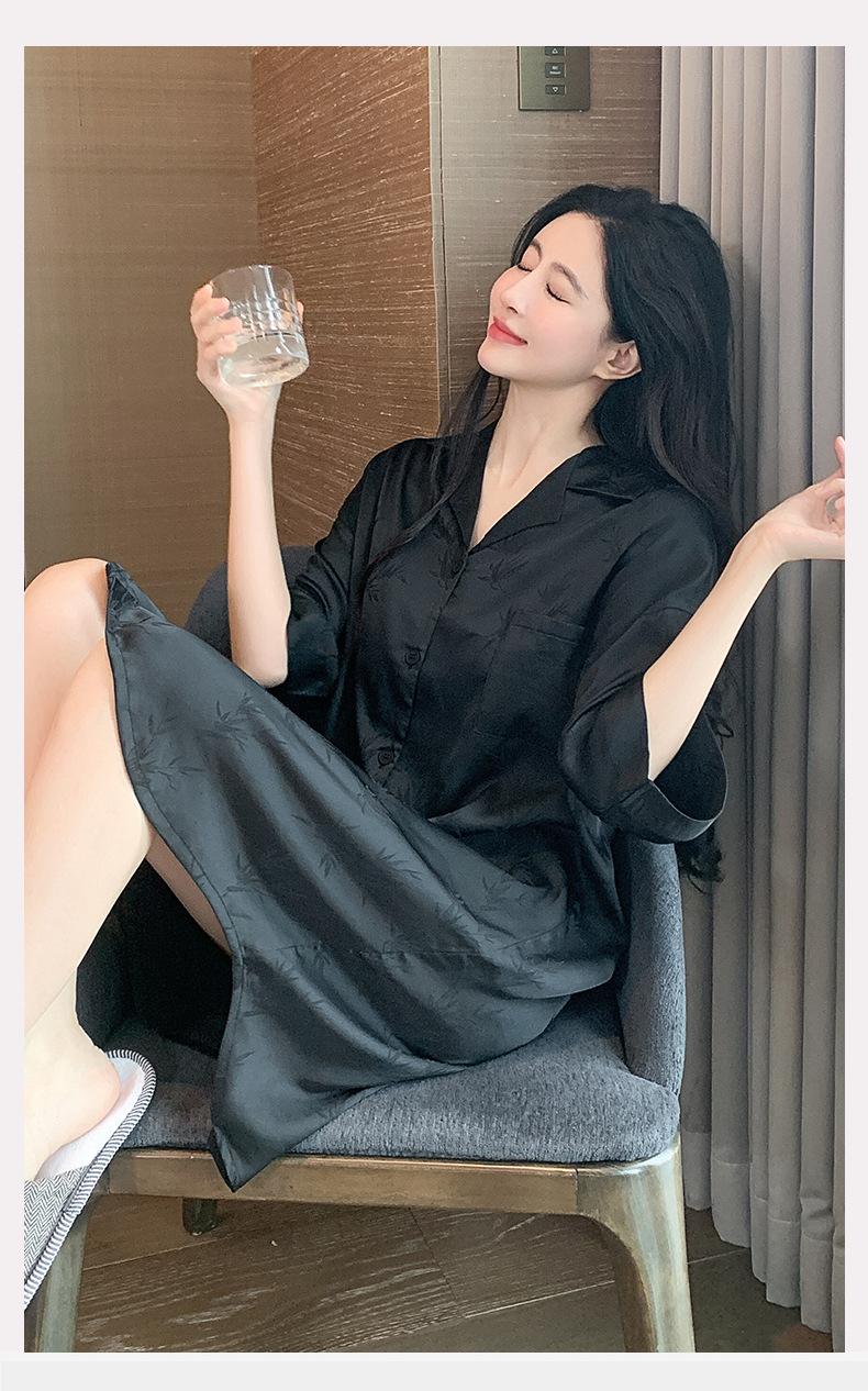 Camisón de Seda de Hielo de Moda para Mujer, Camisón Holgado de Verano Fino Sexy Estilo Novio con un Toque de Alta Gama