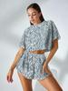 Pijamas de moda con estampado de leopardo y explosiones transfronterizas europeas y americanas para mujer, pantalones cortos sexis de manga corta, ropa para el hogar, traje para mujer