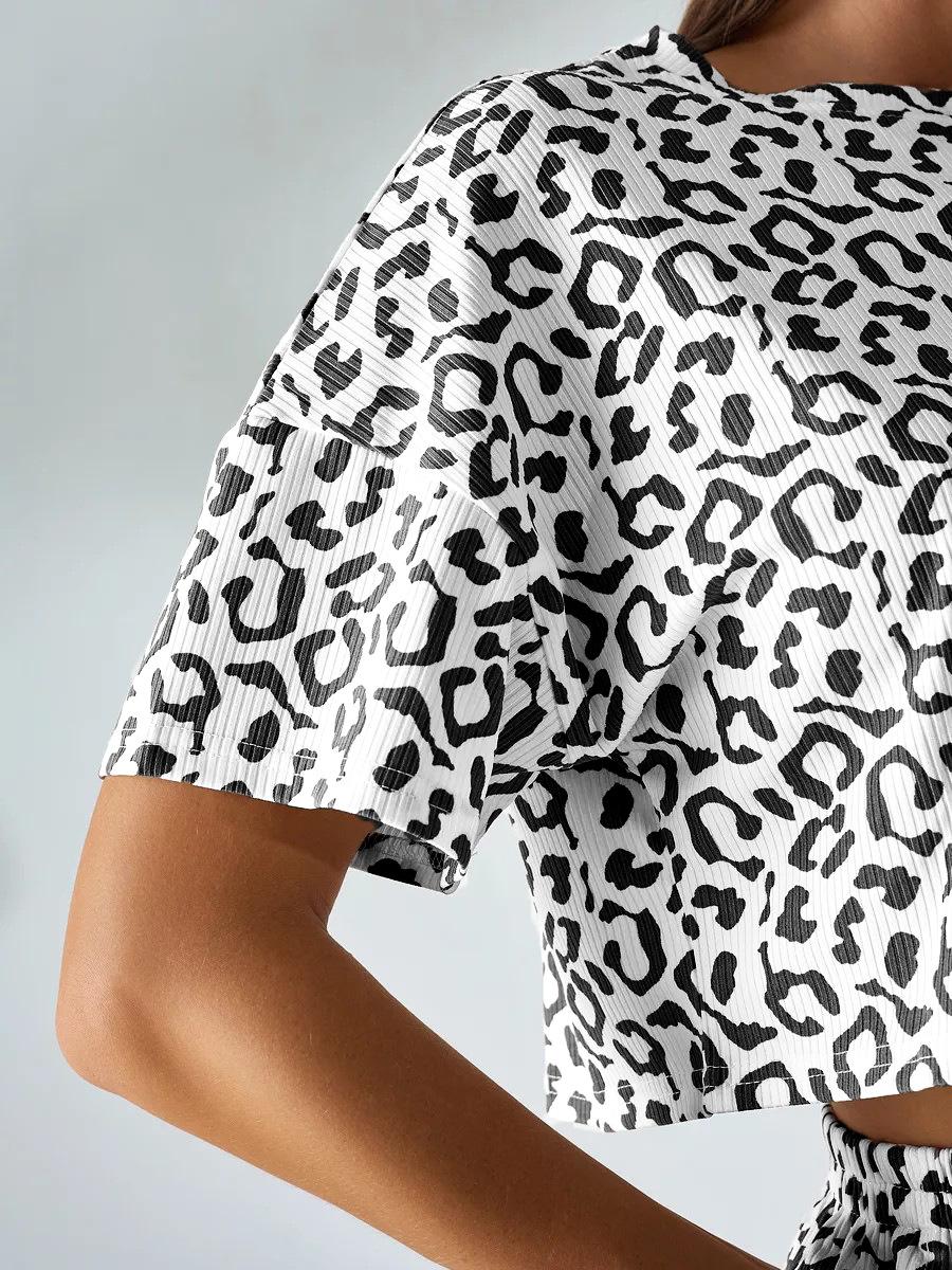 Compra Pijamas de moda con estampado de leopardo y explosiones transfronterizas europeas y americanas para mujer, pantalones cortos sexis de manga corta, ropa para el hogar, traje para mujer al por mayor en Joom.pro
