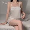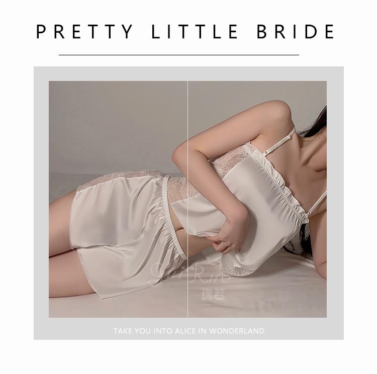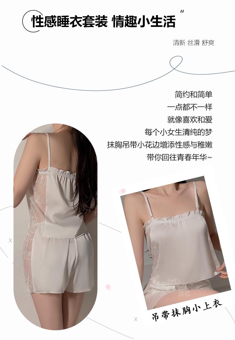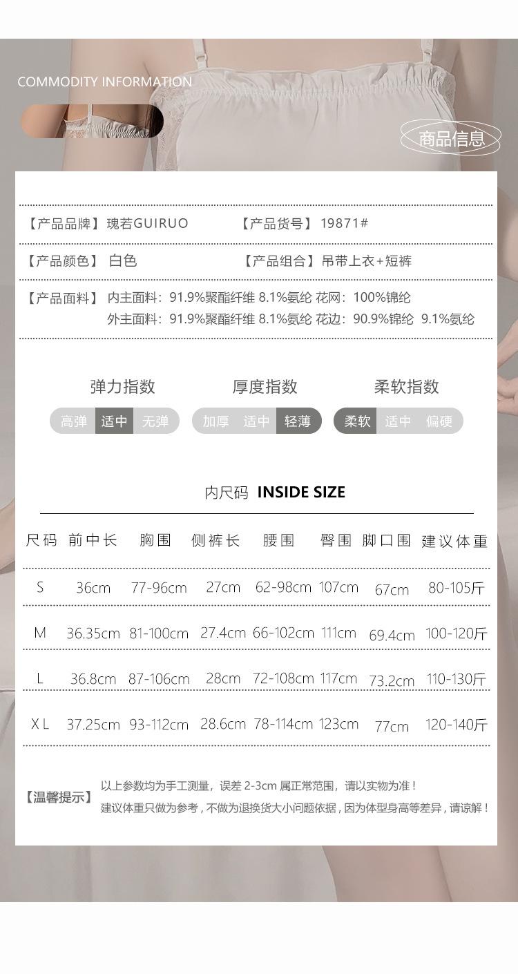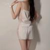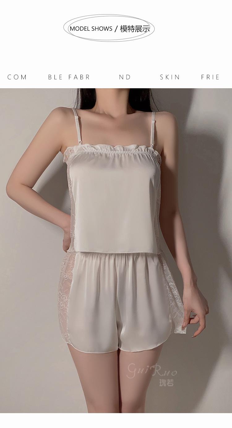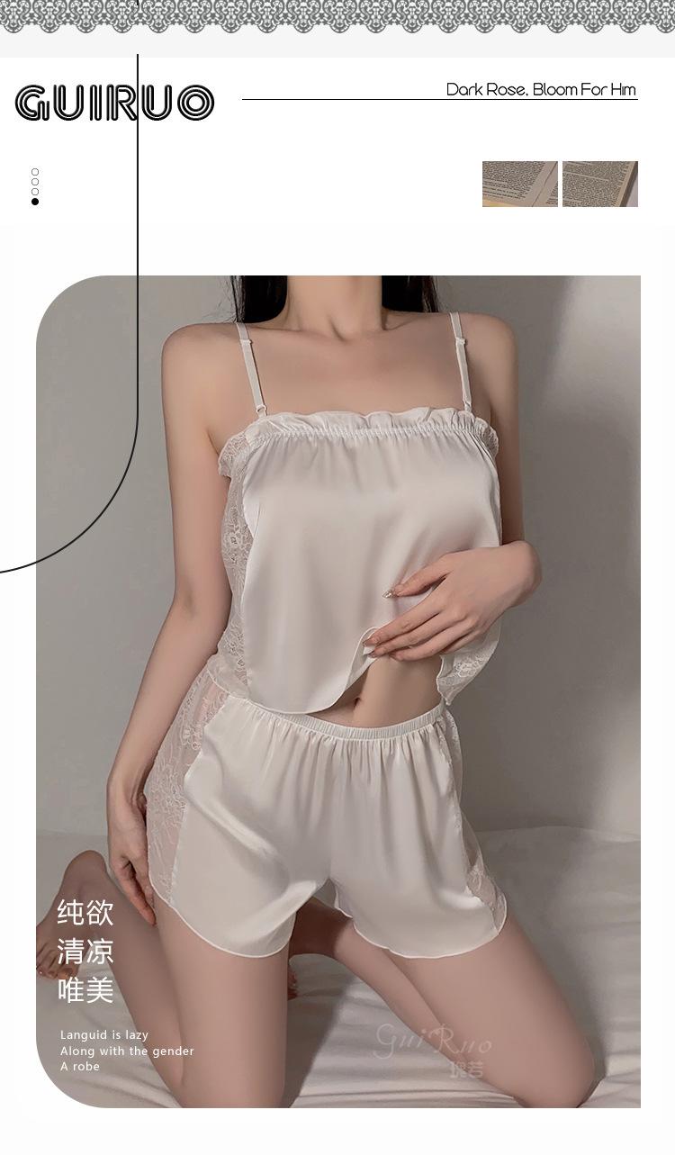 Conjunto de dos piezas Guiruo de satén con encaje y cuello de pico, tirantes finos, pantalones cortos, para el hogar, 19871