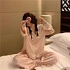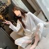 Pijamas de seda de hielo para mujer, de manga larga, de primavera y otoño, con encaje, ropa fina de seda para el hogar de verano.