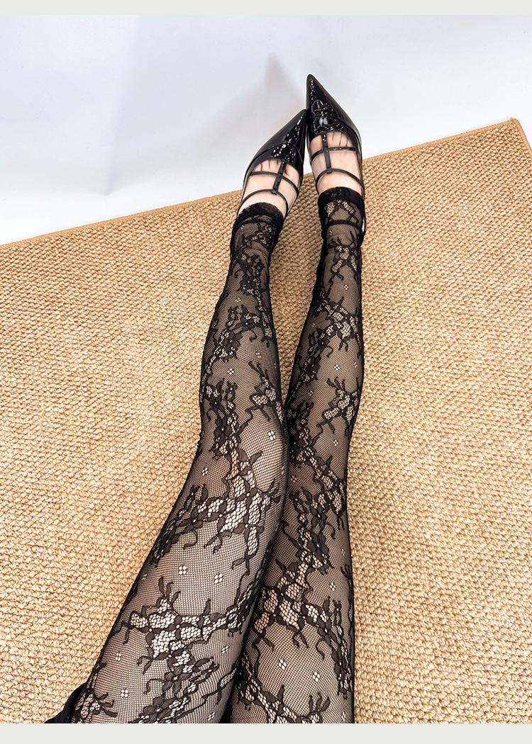 Medias finas de encaje blanco de primavera y verano para mujer, medias negras de malla de viento puro sexy de seda anti-gancho huecas, pantimedias japonesas