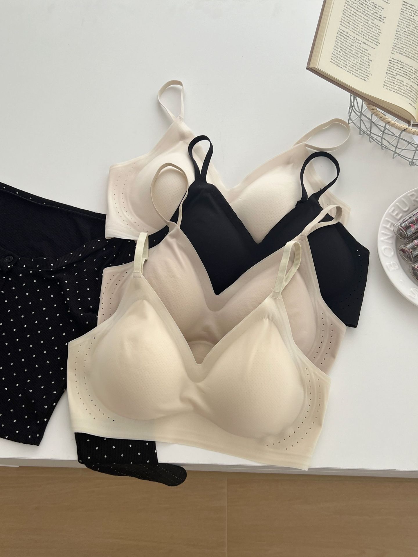 2. La parte inferior del sujetador puede tener un diseño de tira de gelatina para aumentar el soporte y la estabilidad.