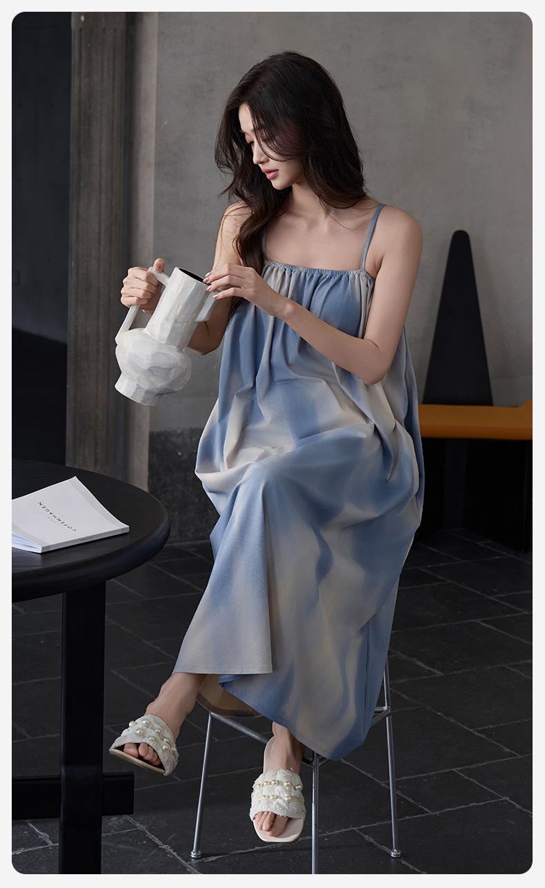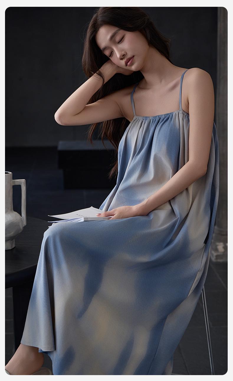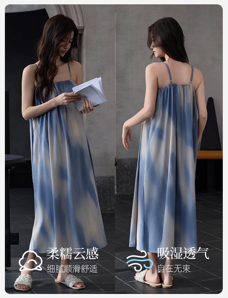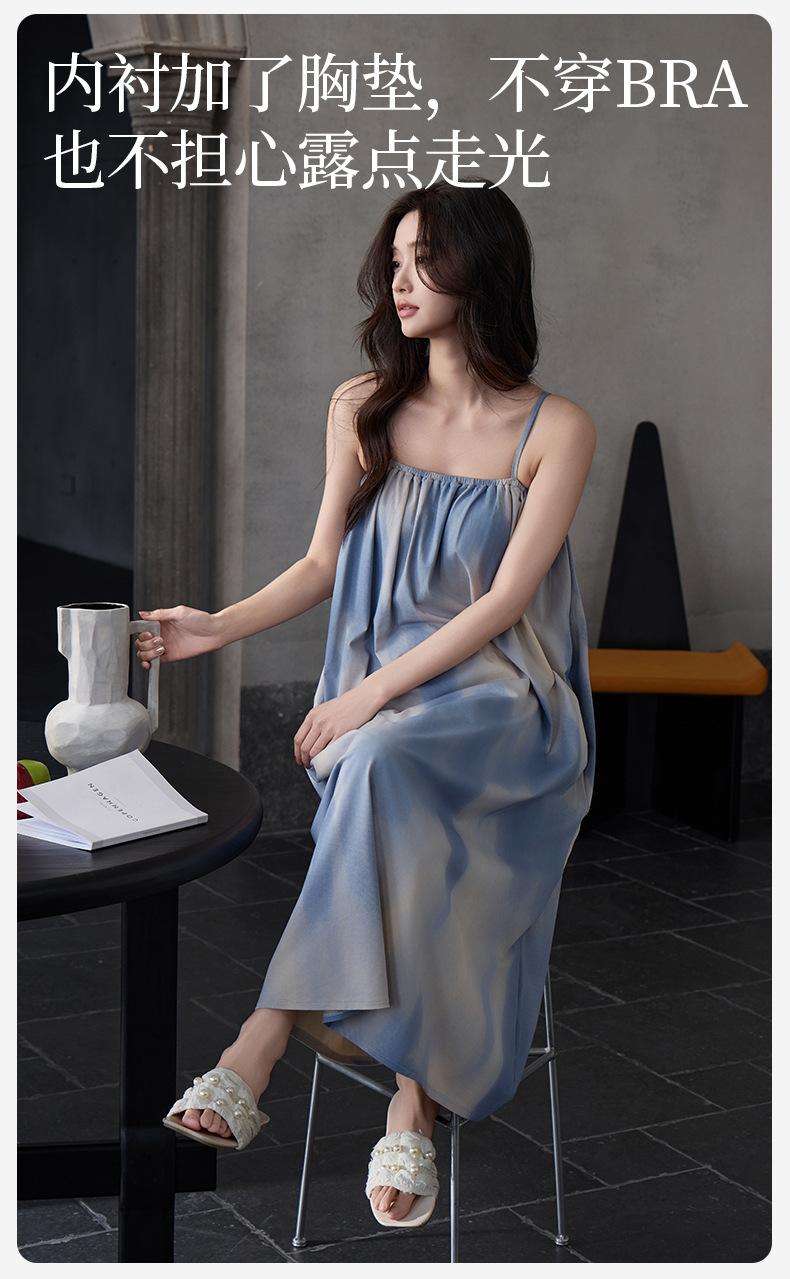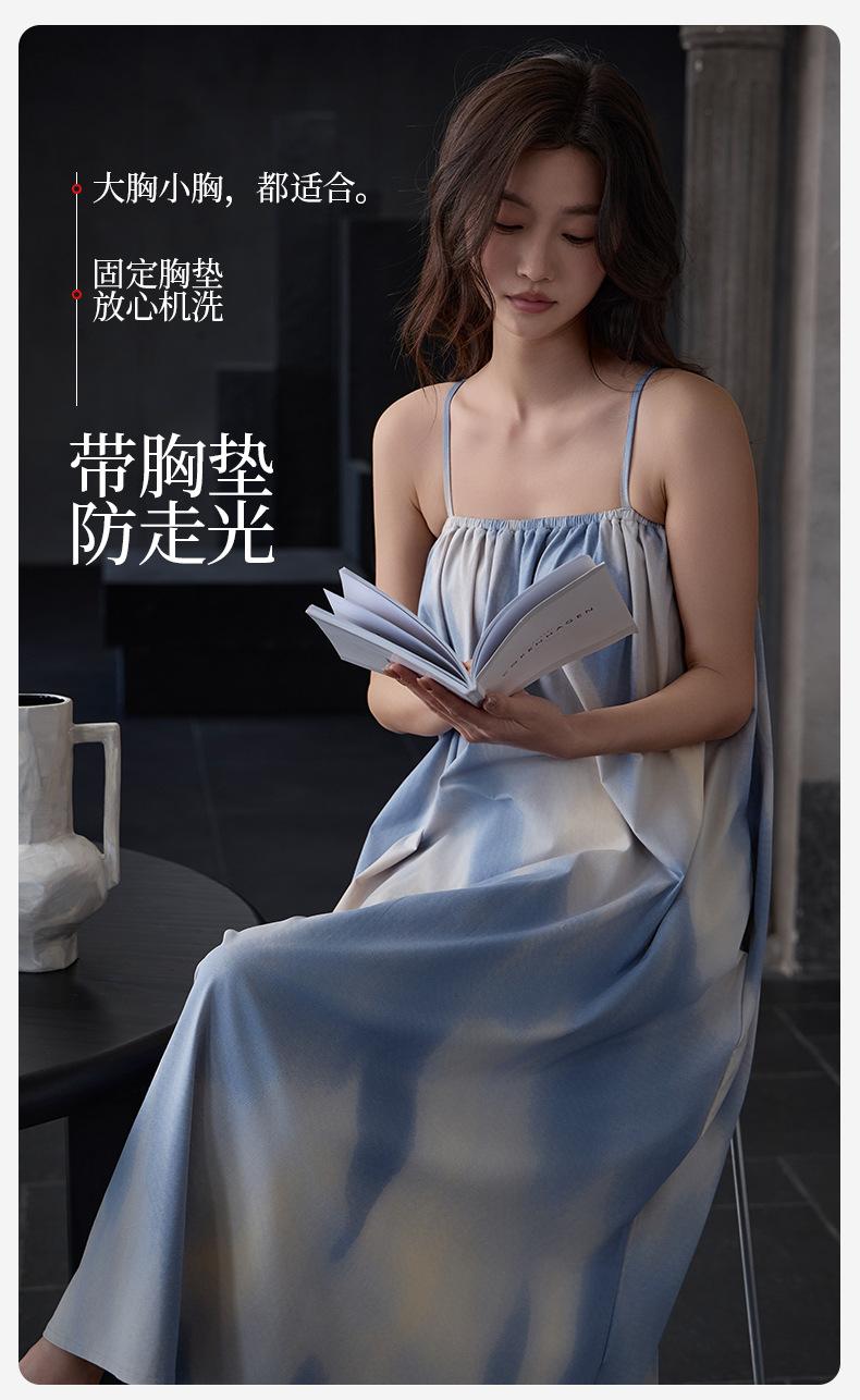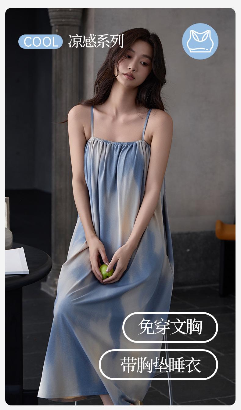 Camisón Modal de Verano para Mujer Vestido Largo Fresco Cómodo y Fresco Almohadilla de Pecho de Alta Gama Ropa para el Hogar
