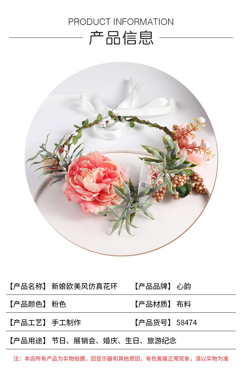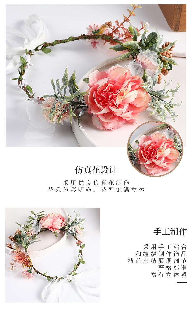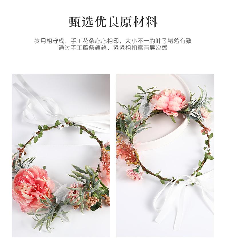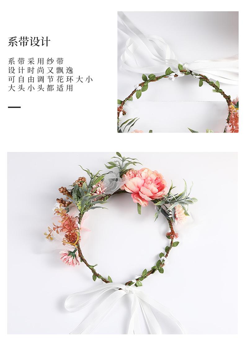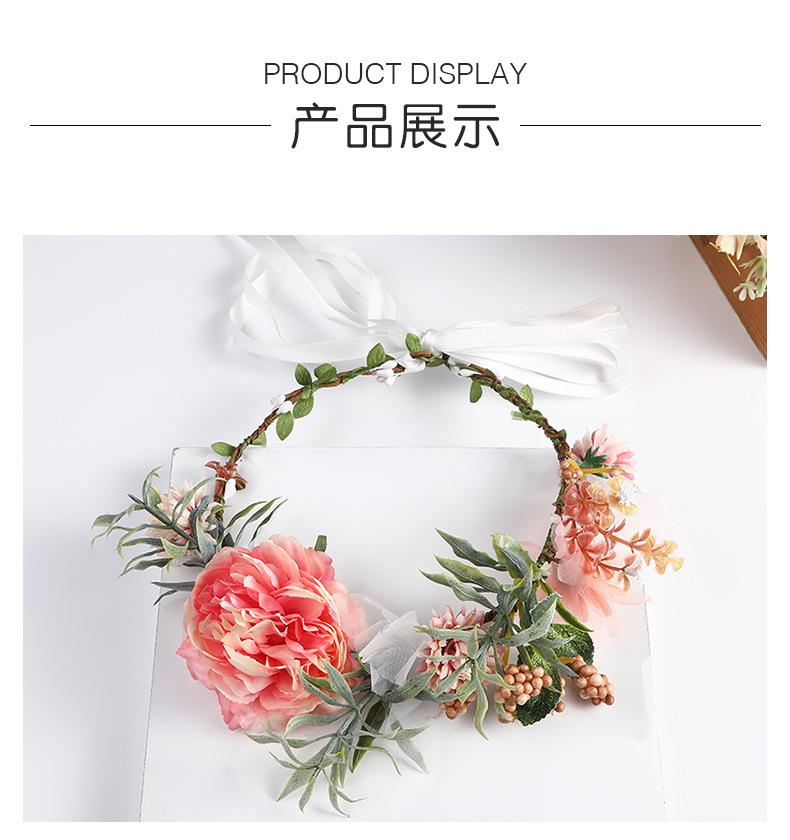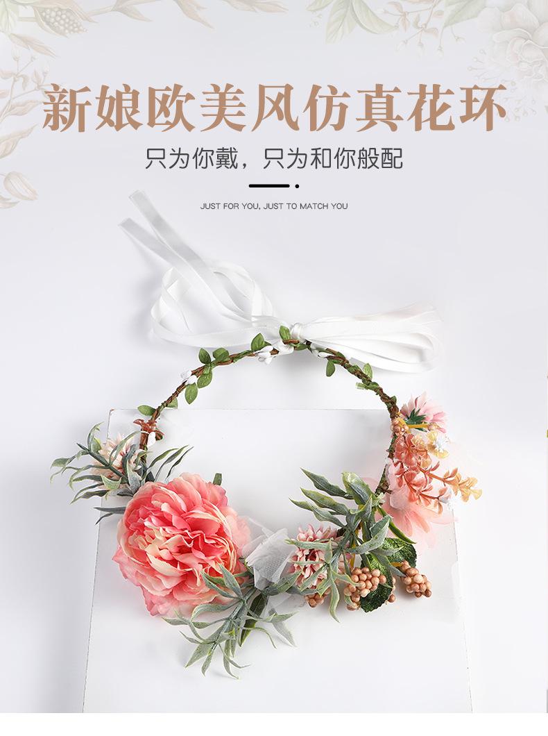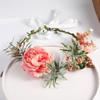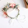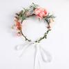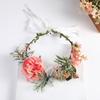 Tocado de novia con guirnalda nueva europea y americana, diadema de cinta de ratán con flores artificiales rosas, accesorios para el cabello de novia Mori