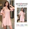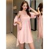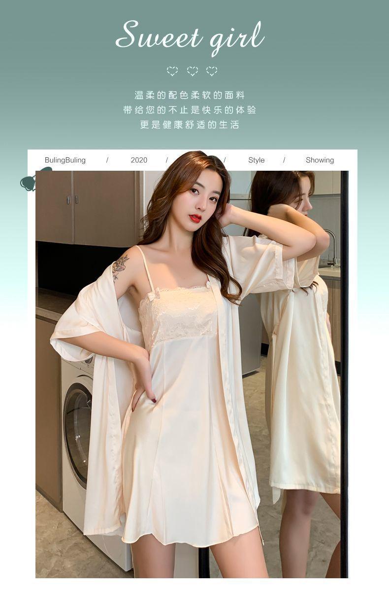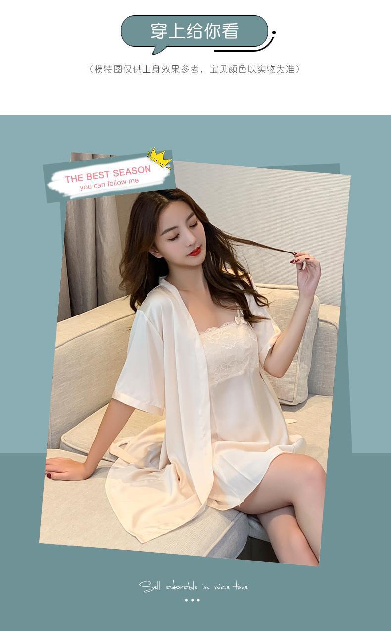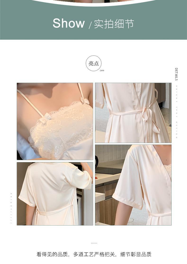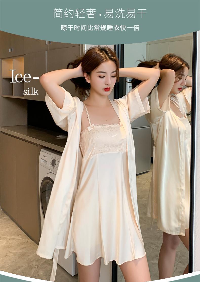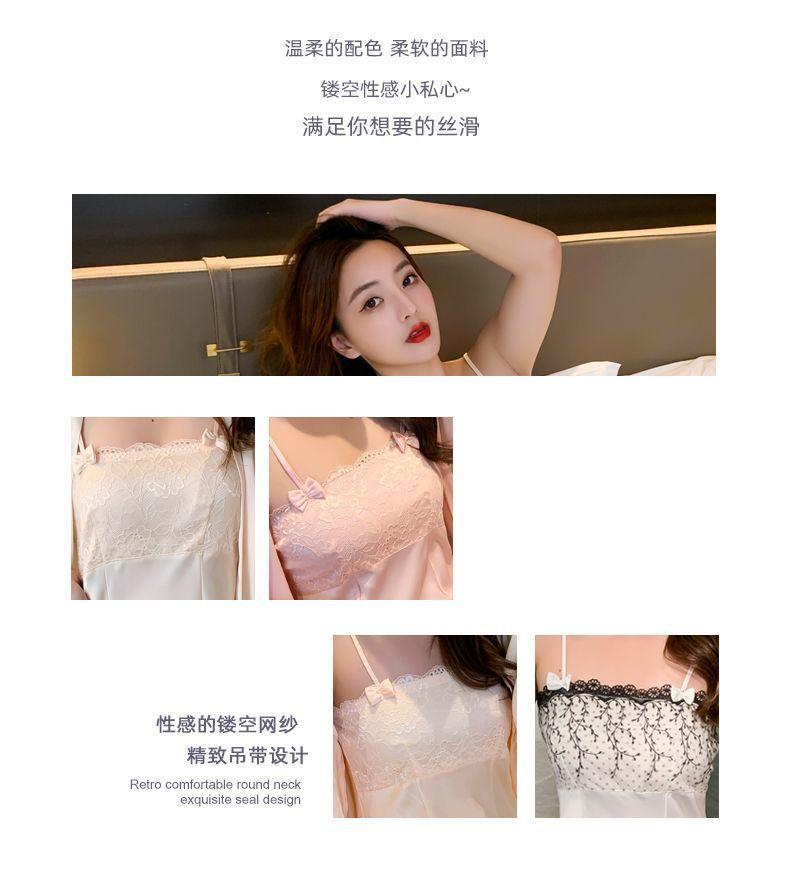Pijama sexy de seda helada para mujer, novedad de primavera y otoño de 2023, con cinturón de encaje y almohadilla para el pecho, camisón ligero de lujo con tirantes.
