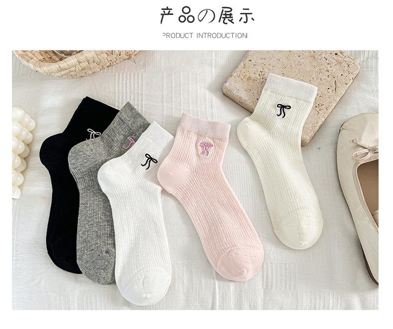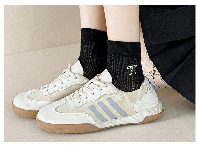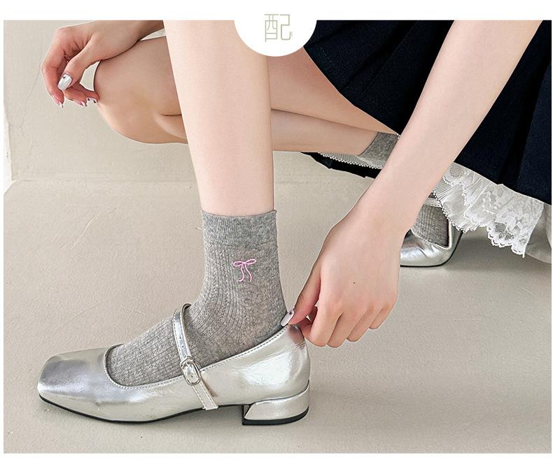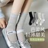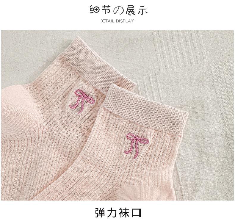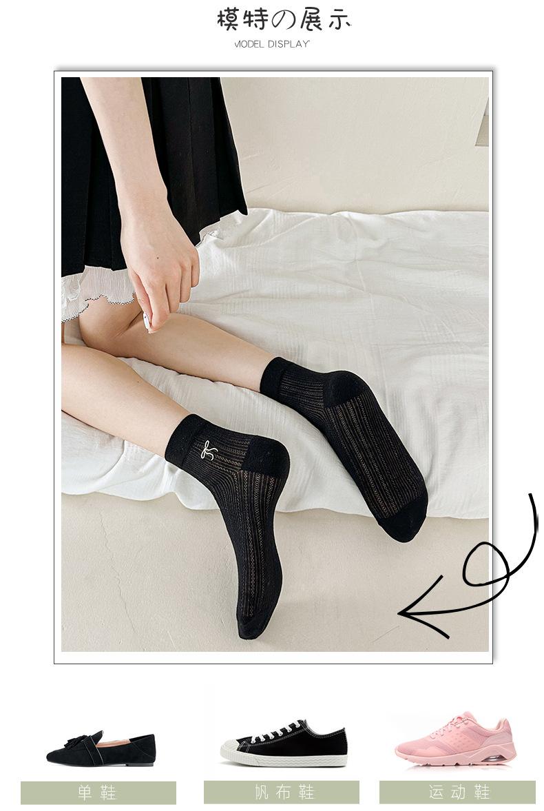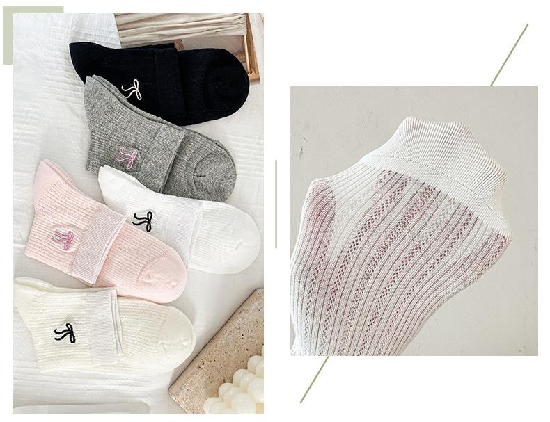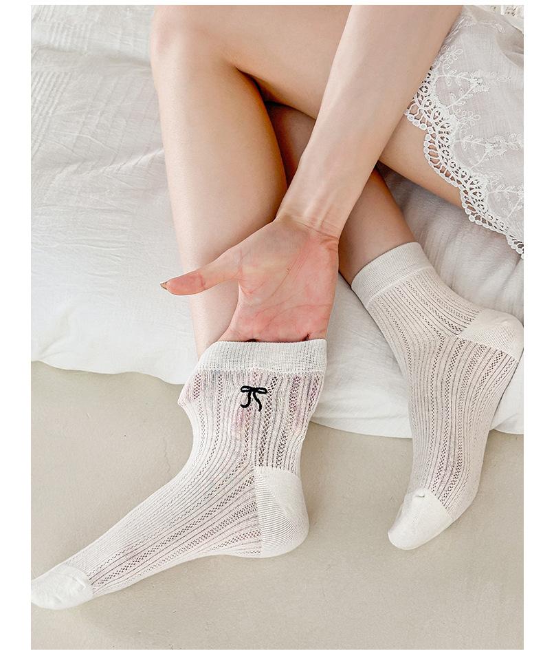 Calcetines de Verano Calados Ultrafinos Apilados para Mujer Calcetines con Lazo Bordado Estilo Miu Algodón Transpirable Antipeeling