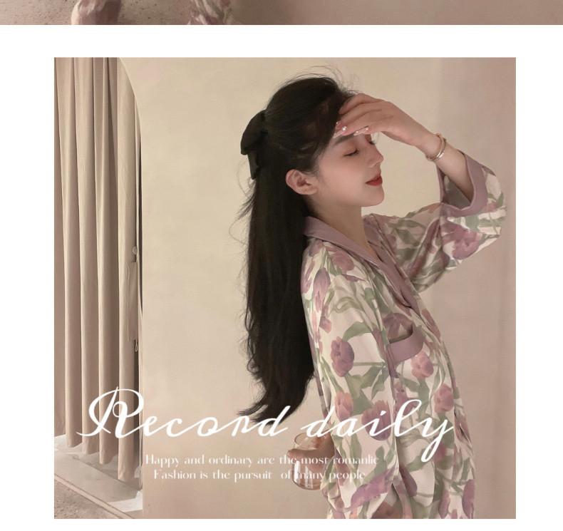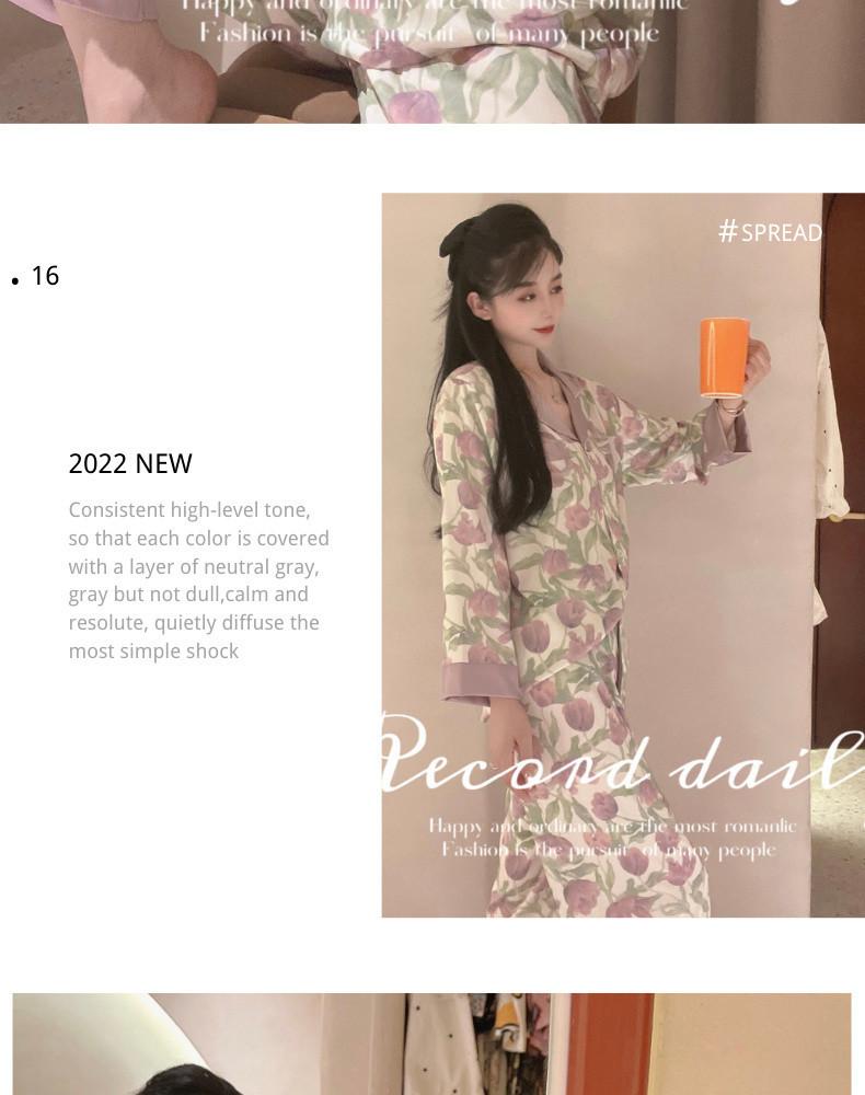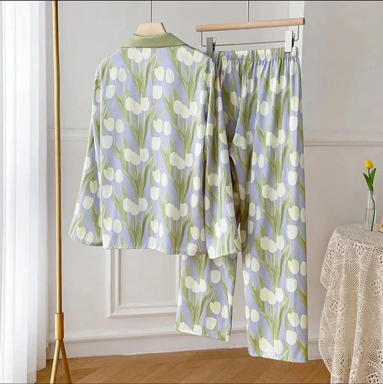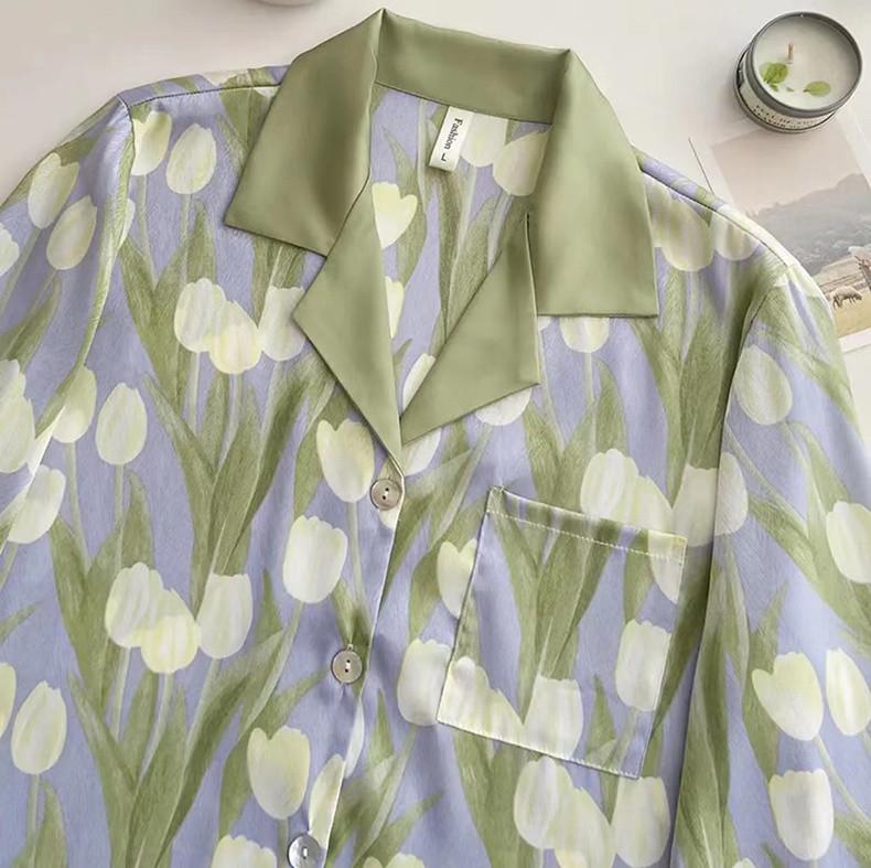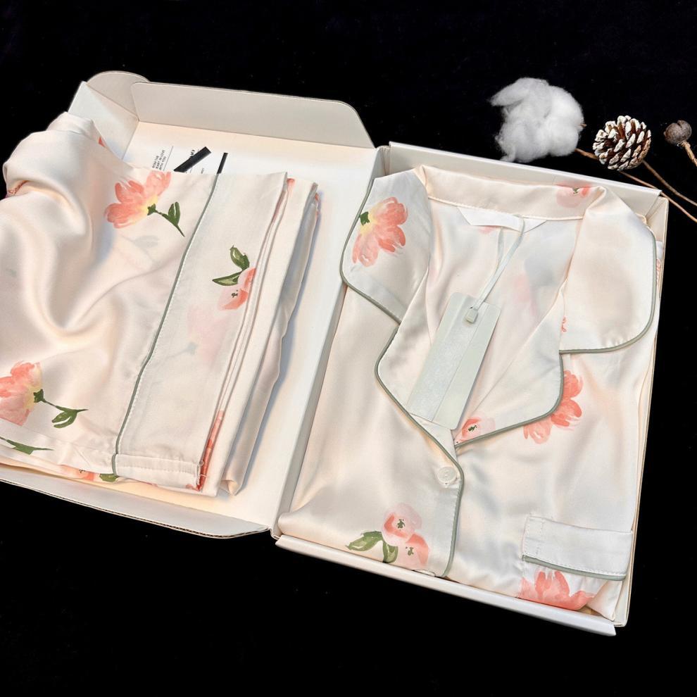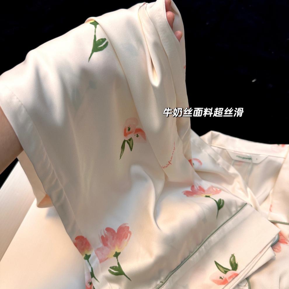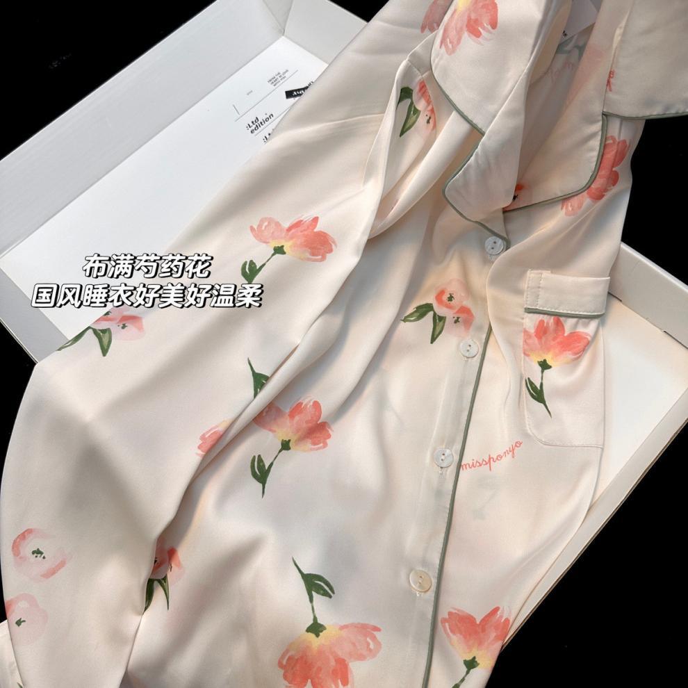 Gran Oferta Pijama Tulipán Seda de Hielo para Mujer Primavera y Otoño Manga Larga Fino Conjunto de Ropa de Casa de Seda para Mujer Se Puede Usar Afuera en Verano