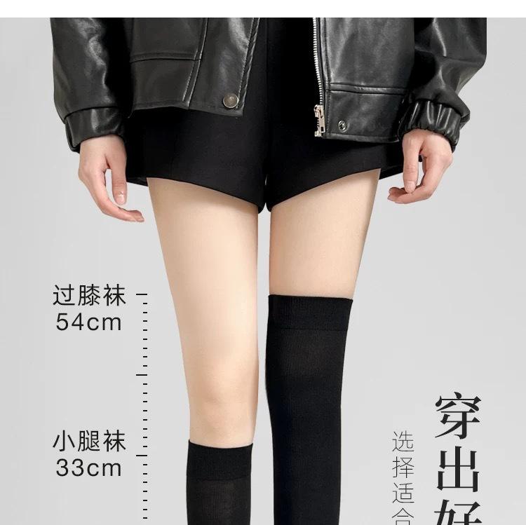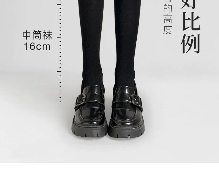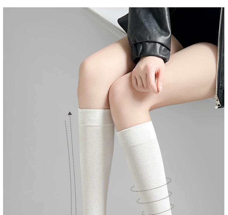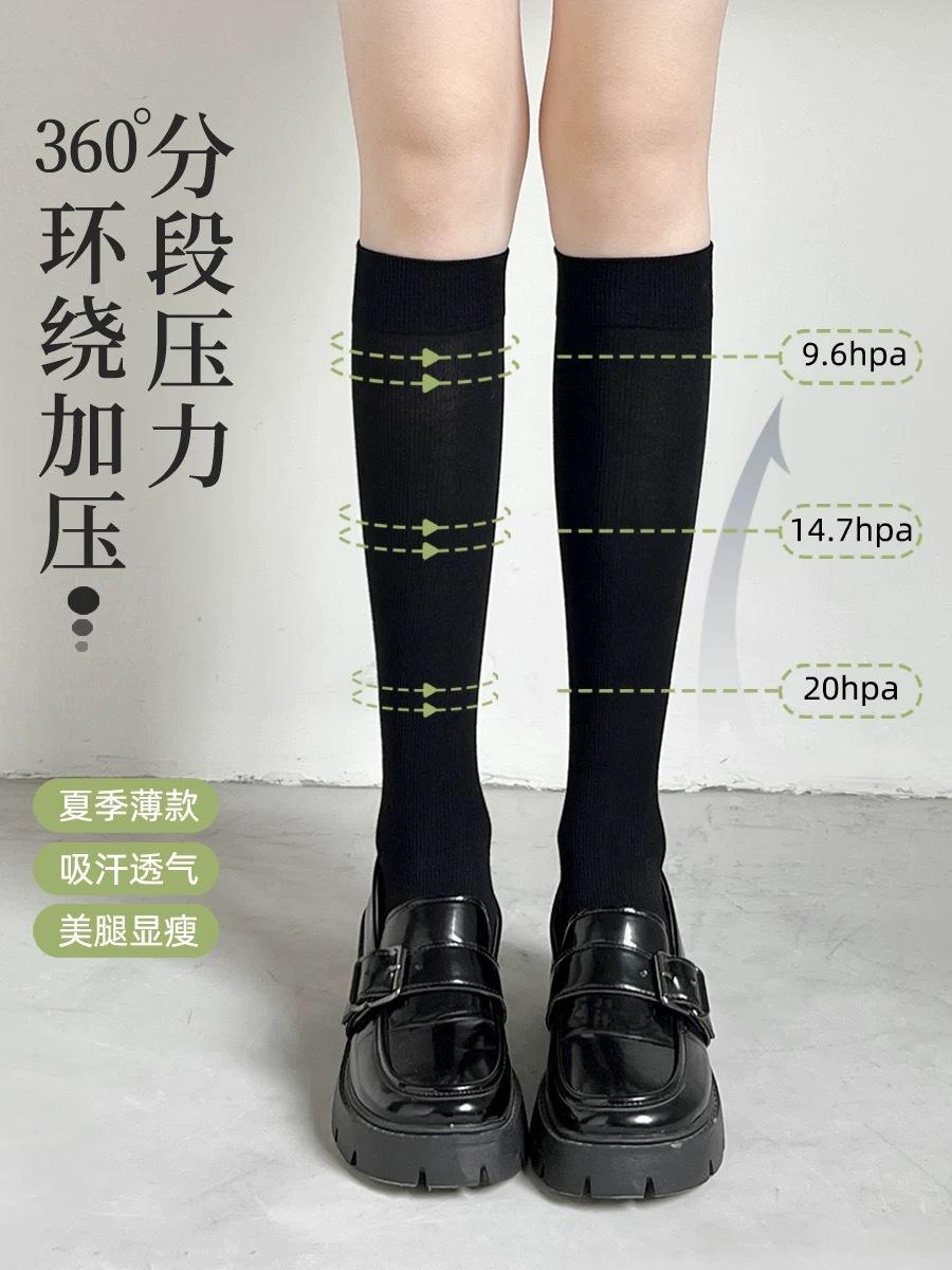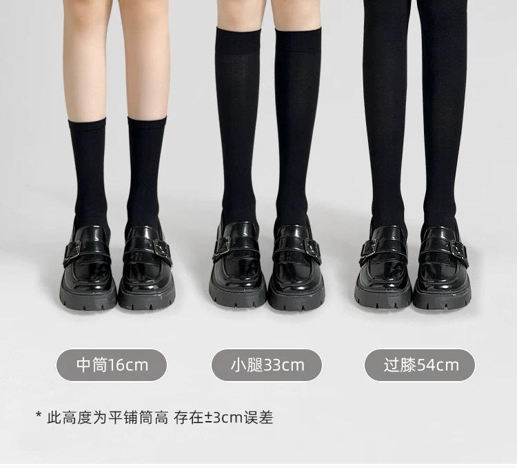Calcetines de compresión para piernas delgadas para niños, calcetines de pantorrilla de algodón negros para primavera y otoño, medias altas hasta la rodilla jk de media caña, altos, con zapatos de piel pequeños