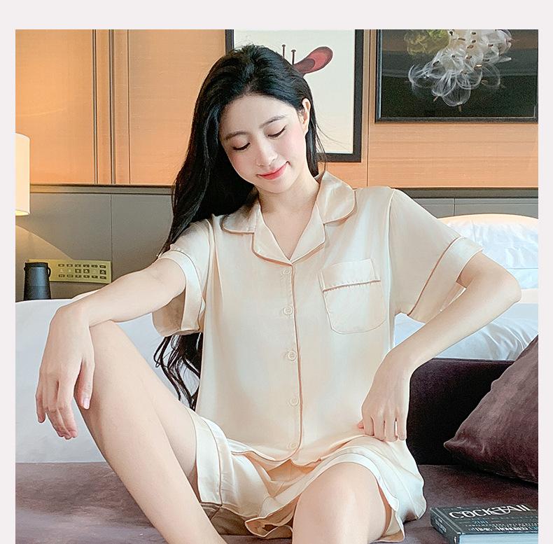 Pijamas de Seda de Hielo para Mujer 2025 Nuevo Verano Manga Corta Shorts de Gama Alta Verano Delgados Talla Grande Conjunto de Ropa de Casa para Mujer