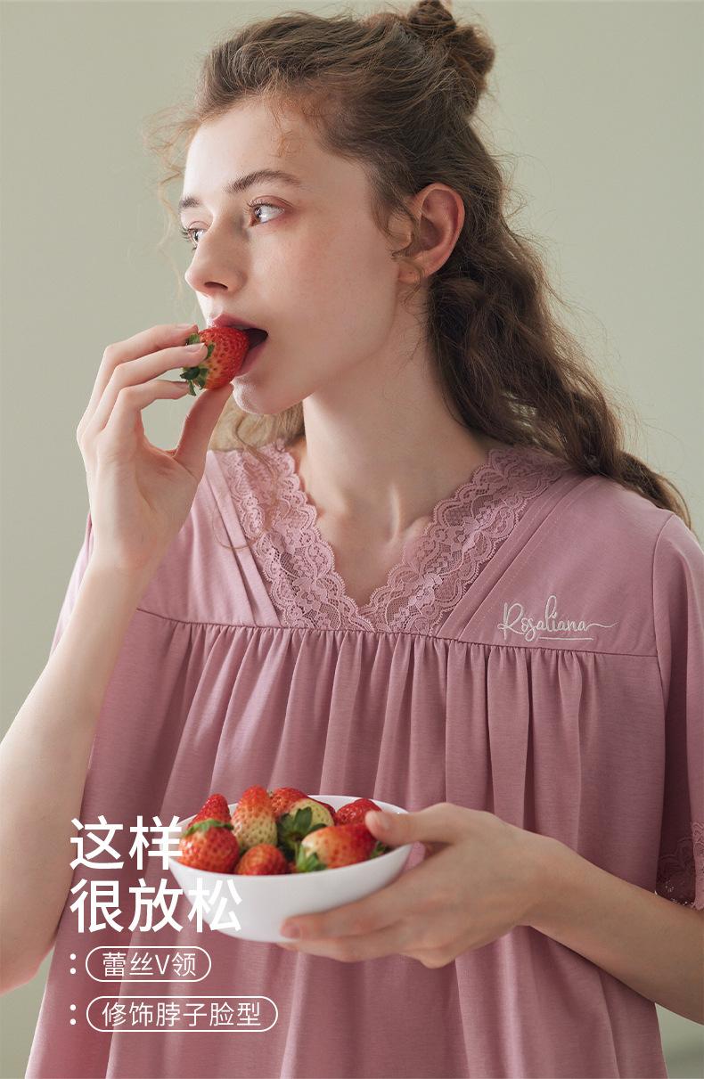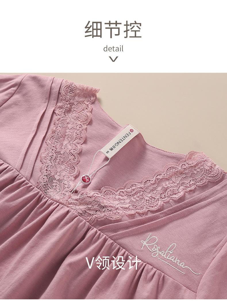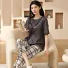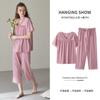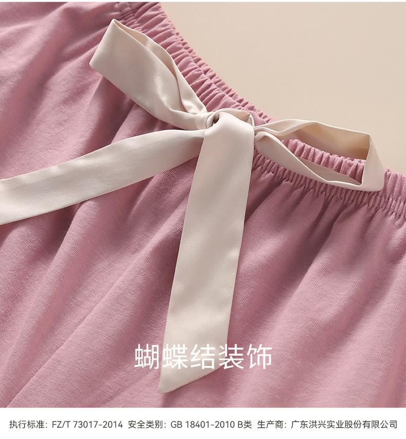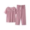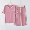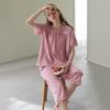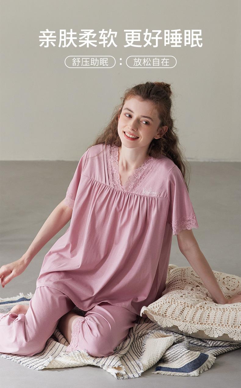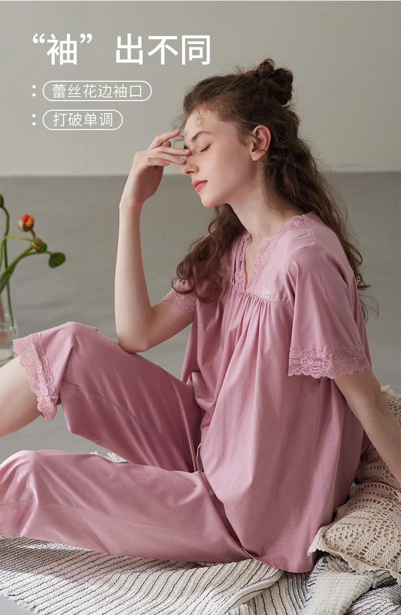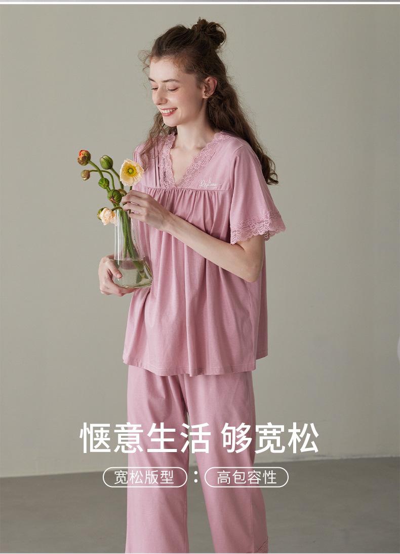 [Algodón Suave para la Piel] Pijama para Mujer Verano Manga Corta Pantalón Capri Traje Delgado Borde de Encaje Holgado Casual Ropa para el Hogar