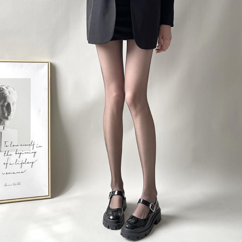 Calcetines invisibles de seda negra súper transparente 0D para mujer, con lunares ondulados, para primavera y otoño, sexys, finos, sin corte de entrepierna para verano