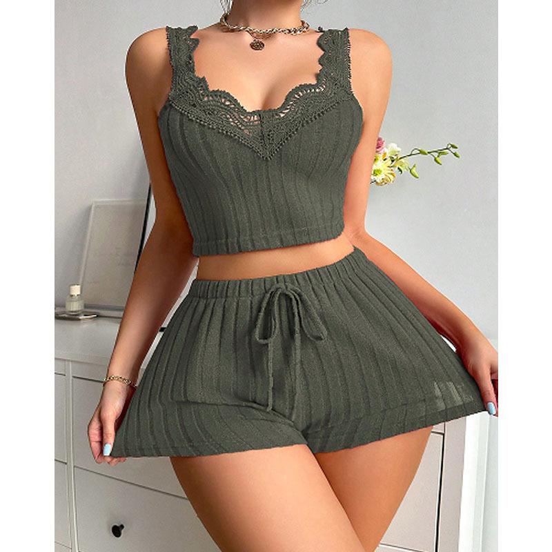 Verano Nuevo Dulce Ropa para el Hogar Estilo Europeo y Americano Pijama Traje de Mujer Encaje Empalmado Camisola Shorts Conjunto de Dos Piezas