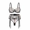 Sujetador transparente de encaje ultrafino sin esponja, sexy, conjunto de sujetador, ropa interior para mujer, bragas, liguero, conjunto de tres piezas