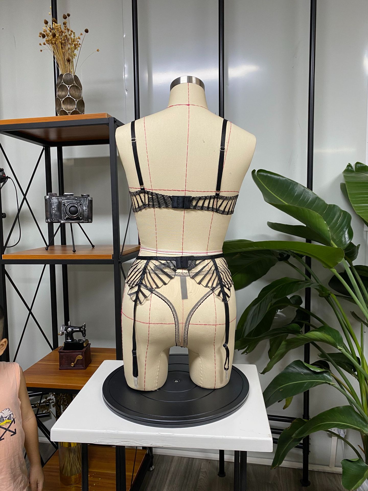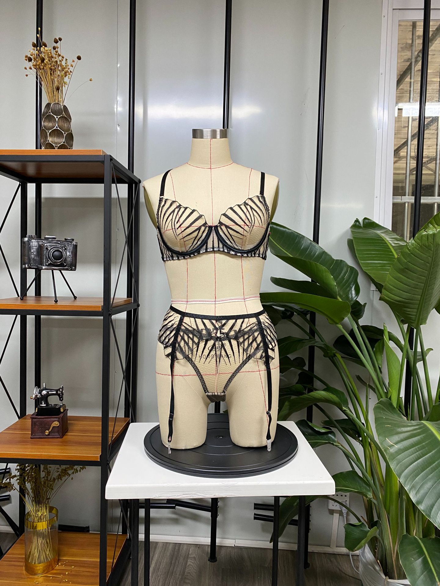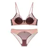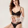 Ropa interior ultradelgada sin esponja de encaje push-up sexy traje de sujetador ropa interior para mujer conjunto de tres piezas de abstinencia