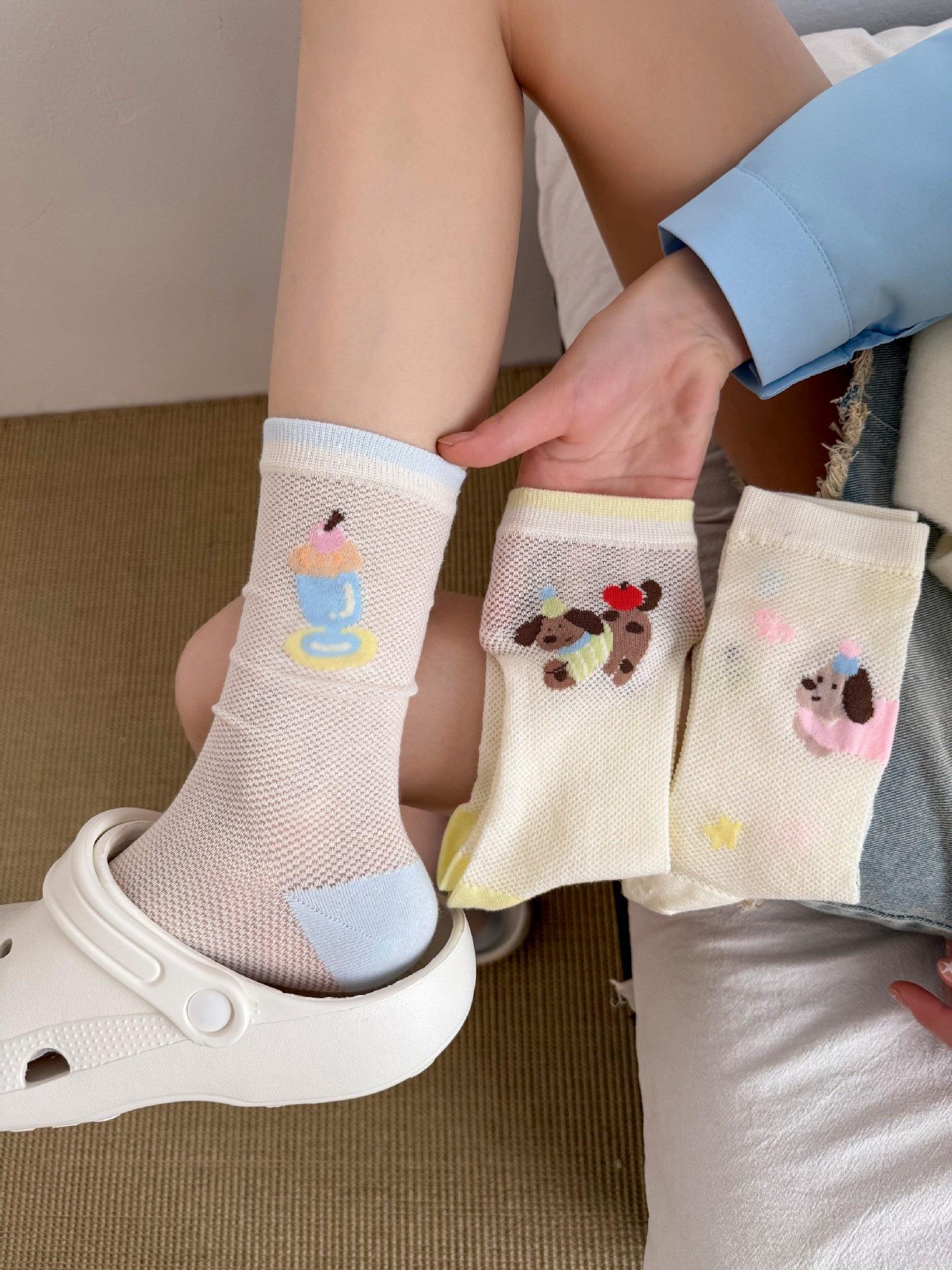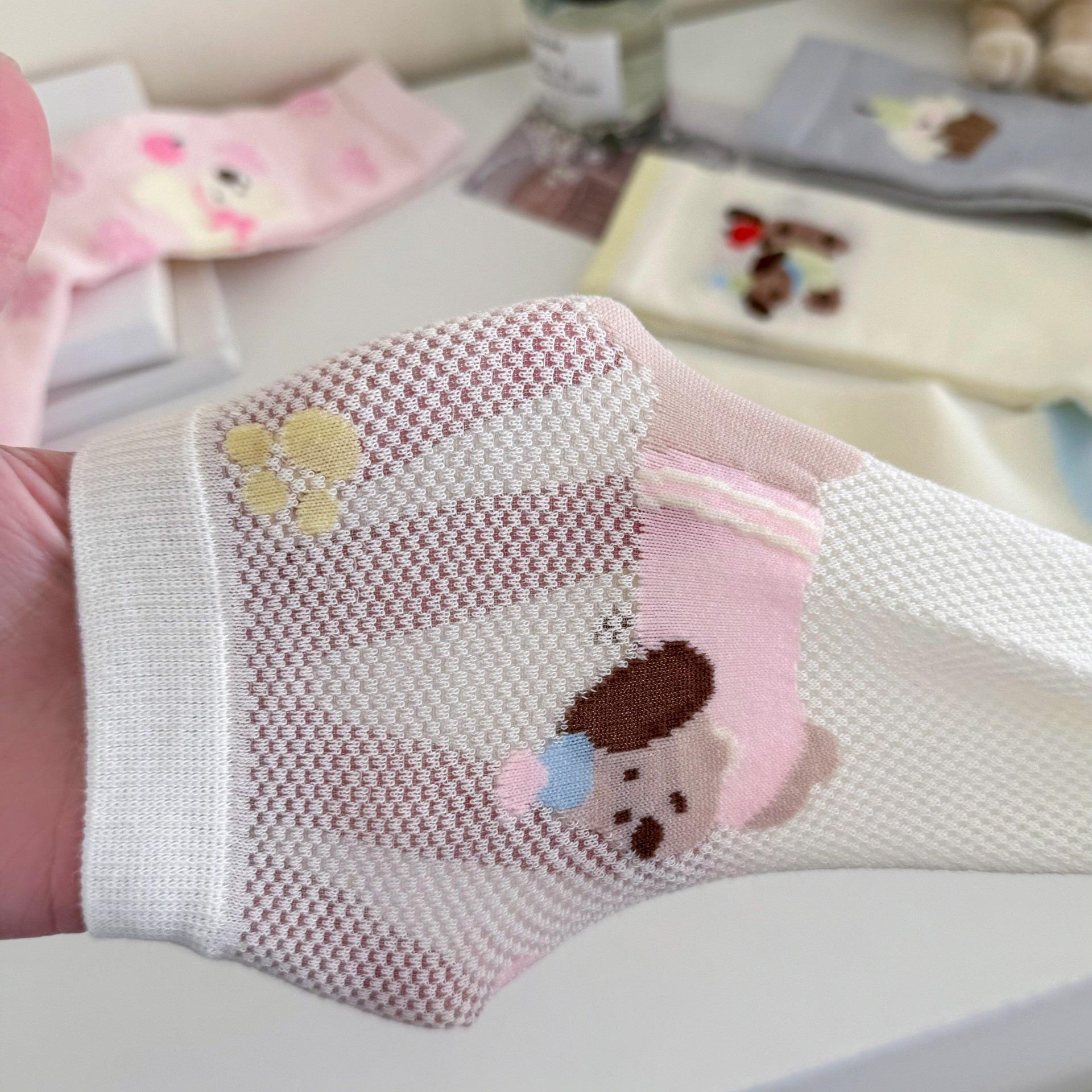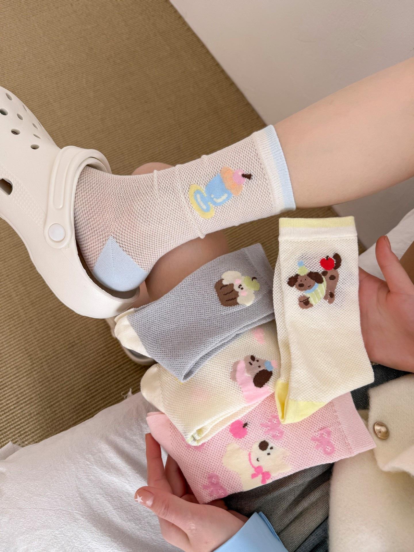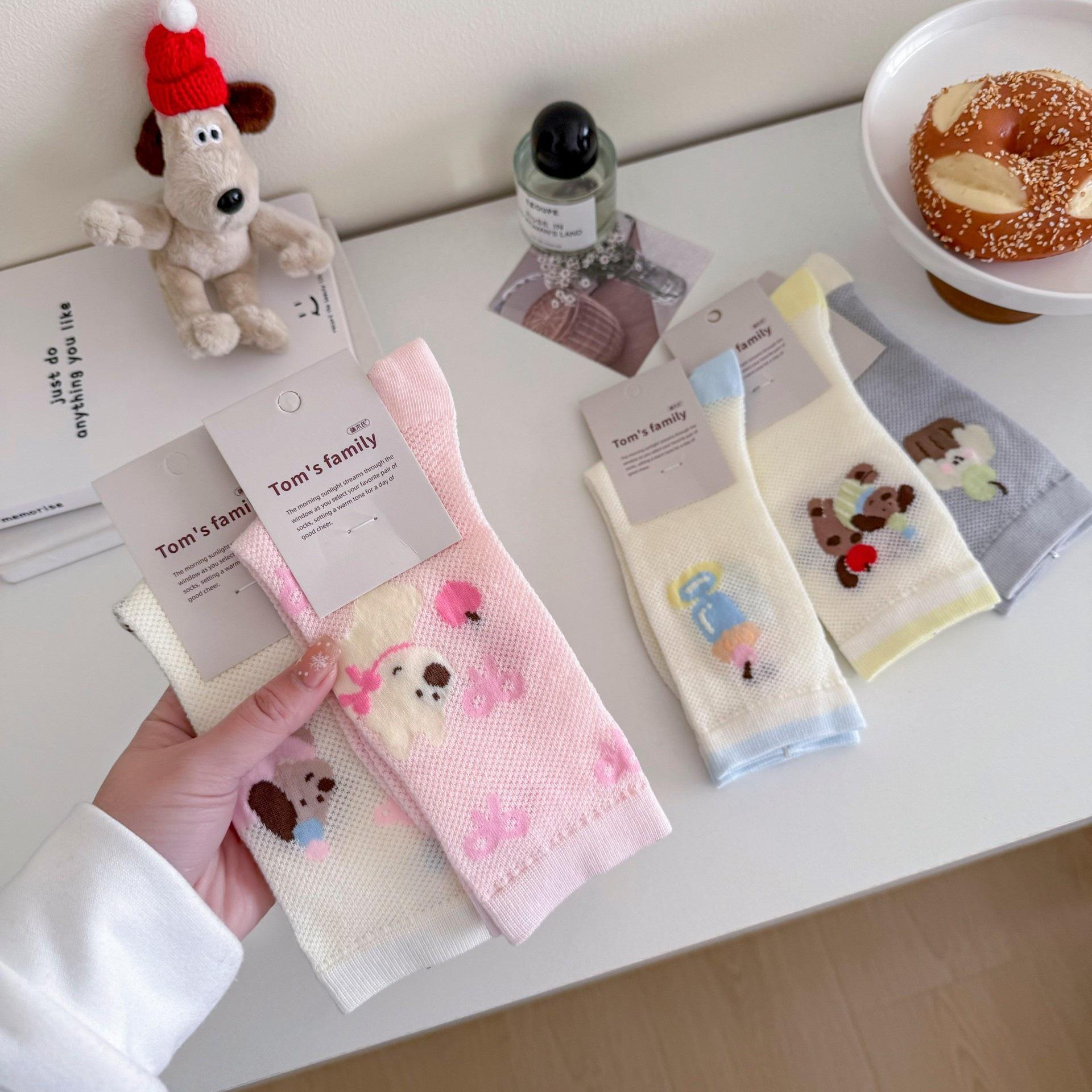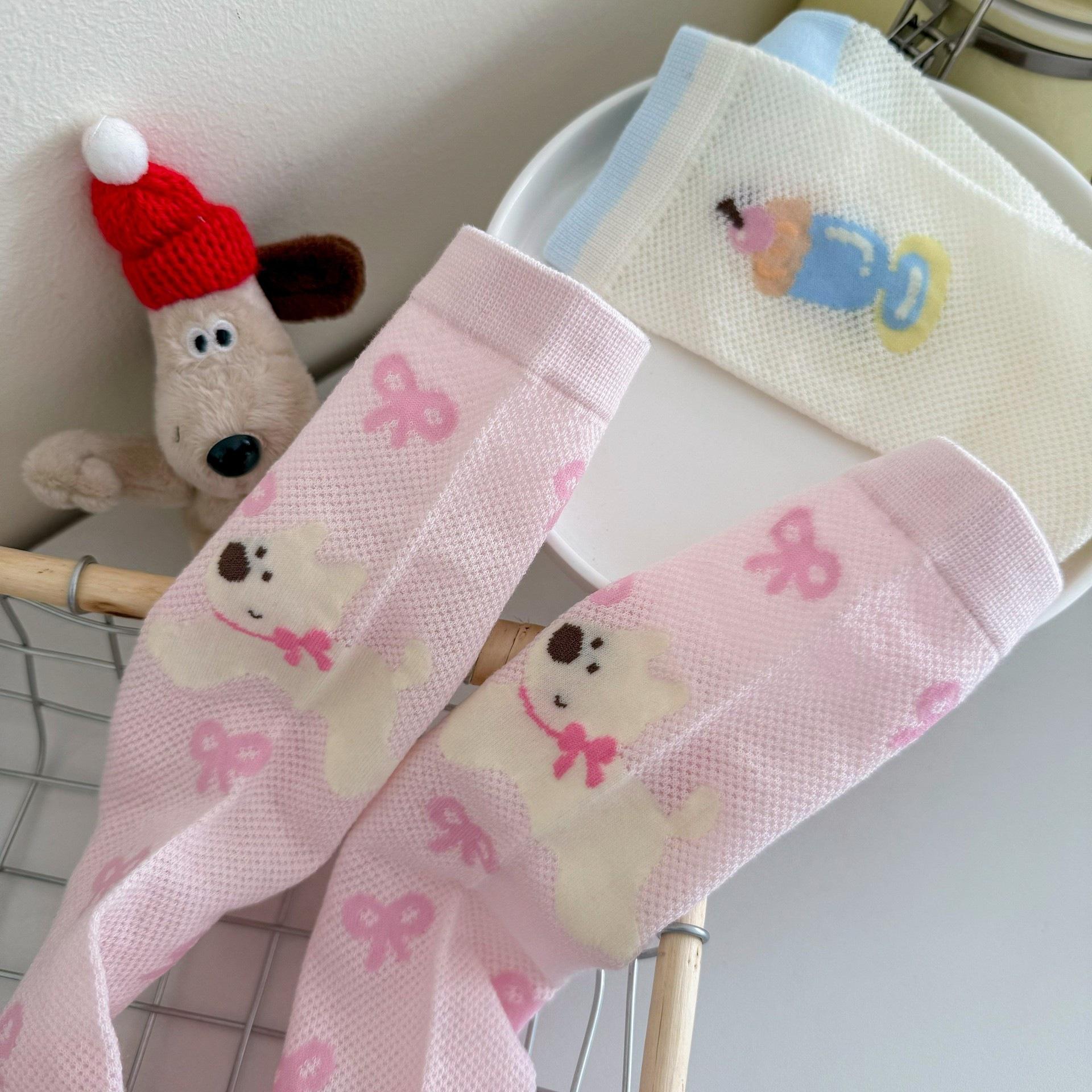 Primavera y verano nuevos calcetines de algodón de malla fina transpirable para mujer todo en uno sin costuras lindo perro de dibujos animados calcetines de montón al por mayor