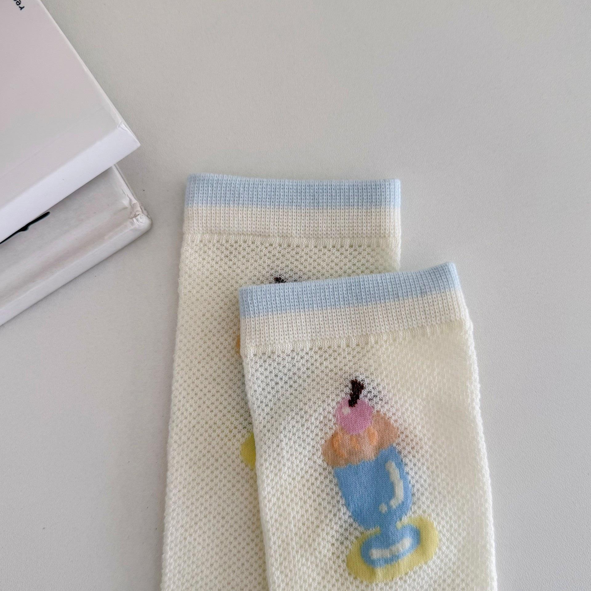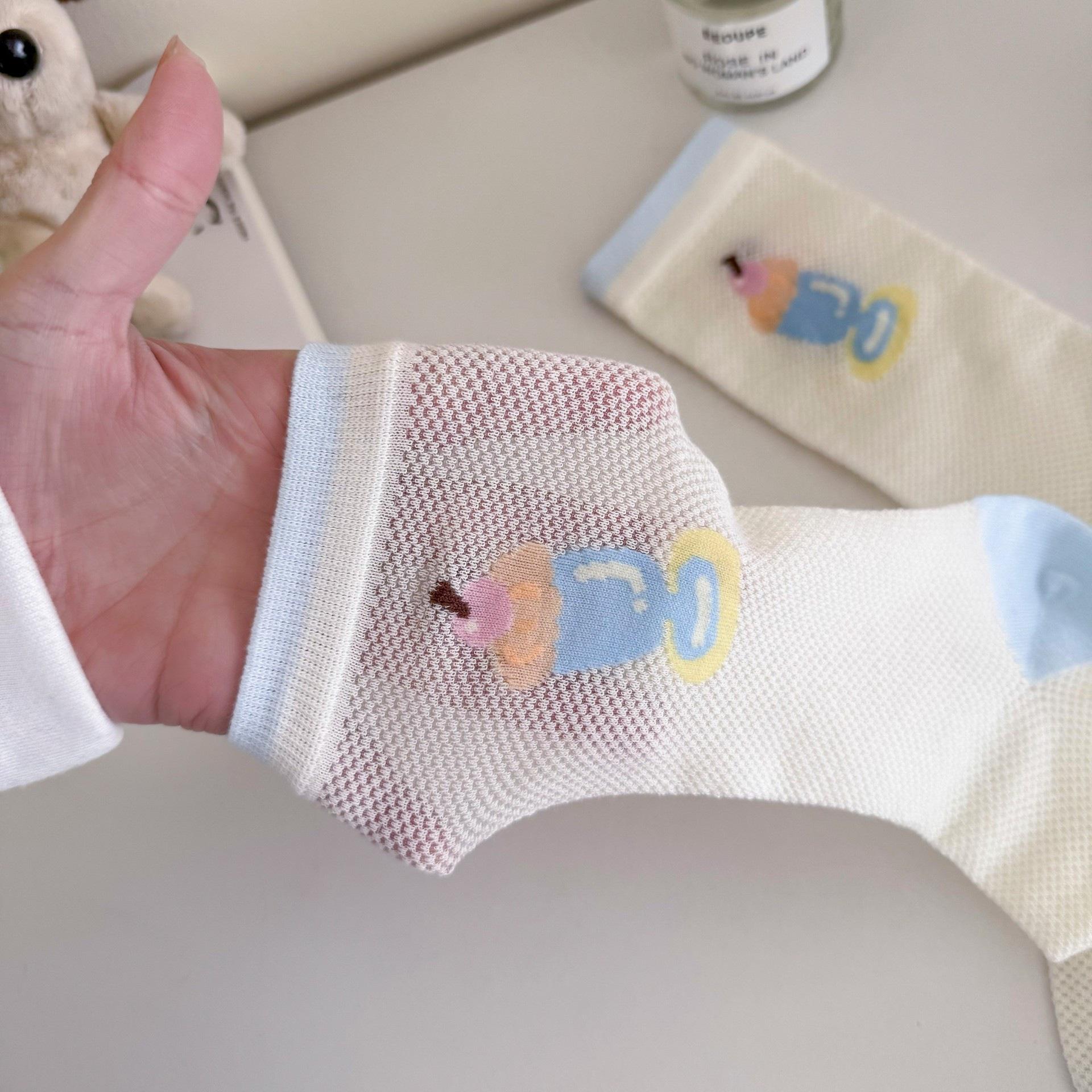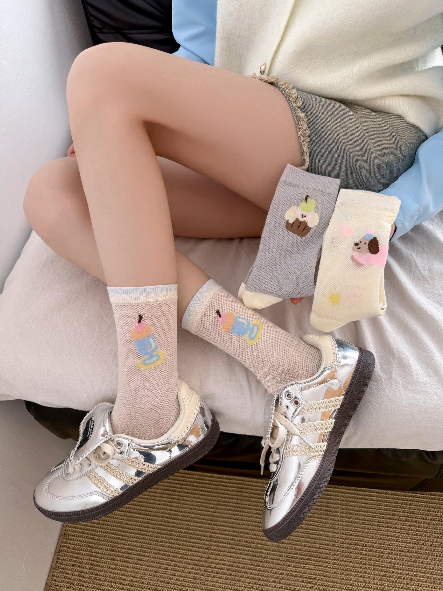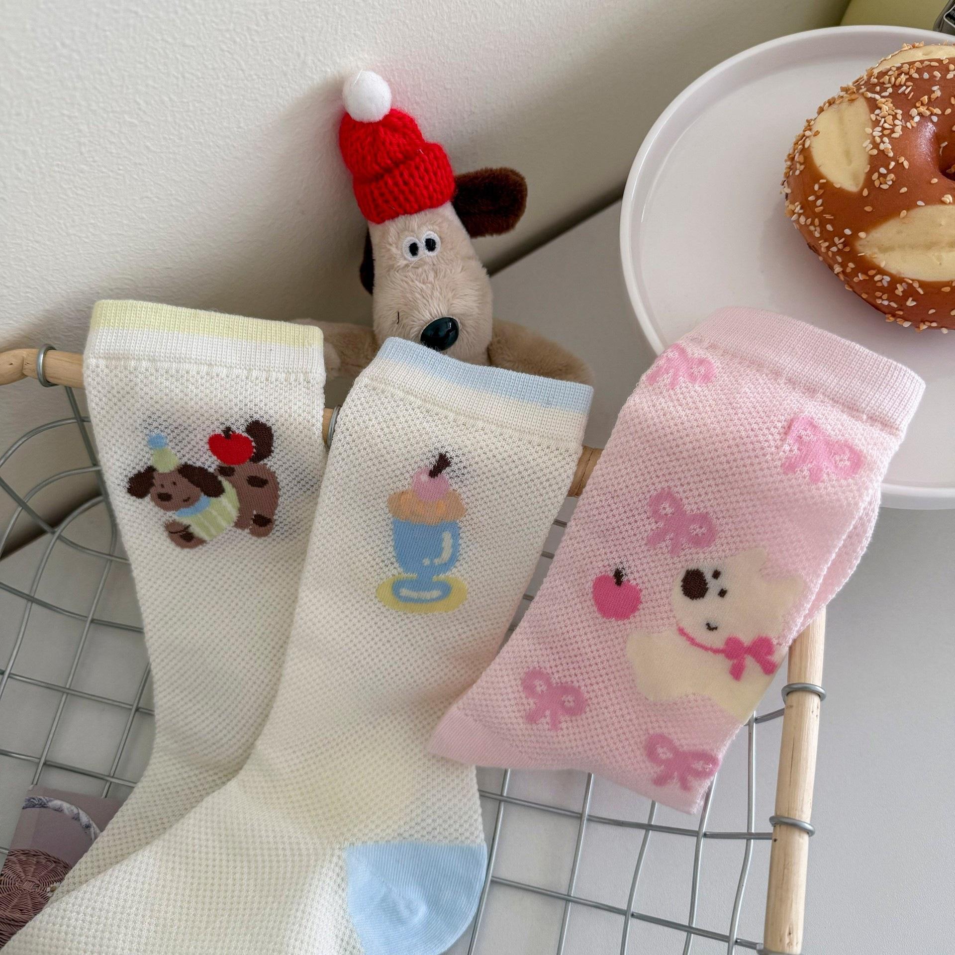 Primavera y verano nuevos calcetines de algodón de malla fina transpirable para mujer todo en uno sin costuras lindo perro de dibujos animados calcetines de montón al por mayor