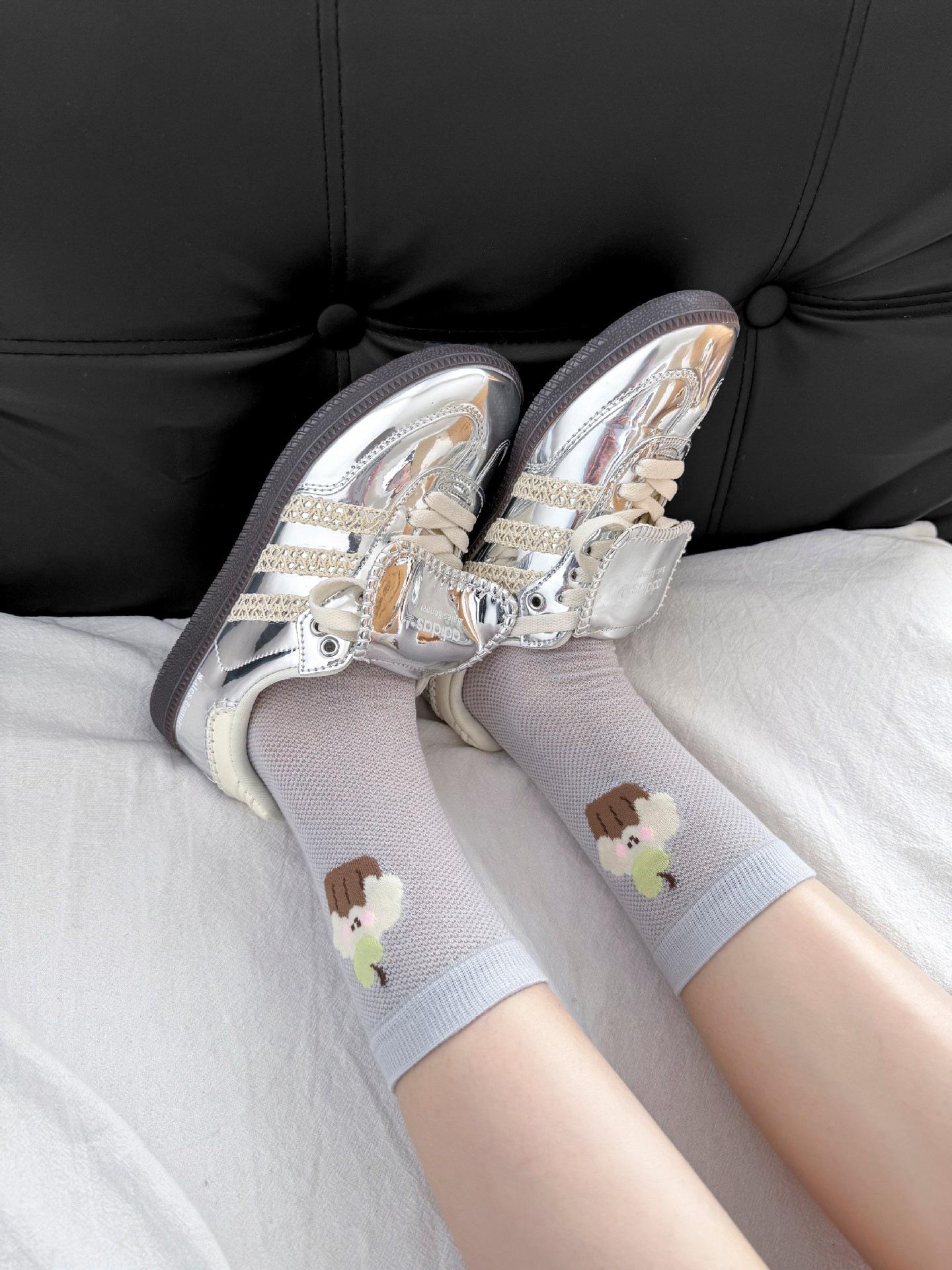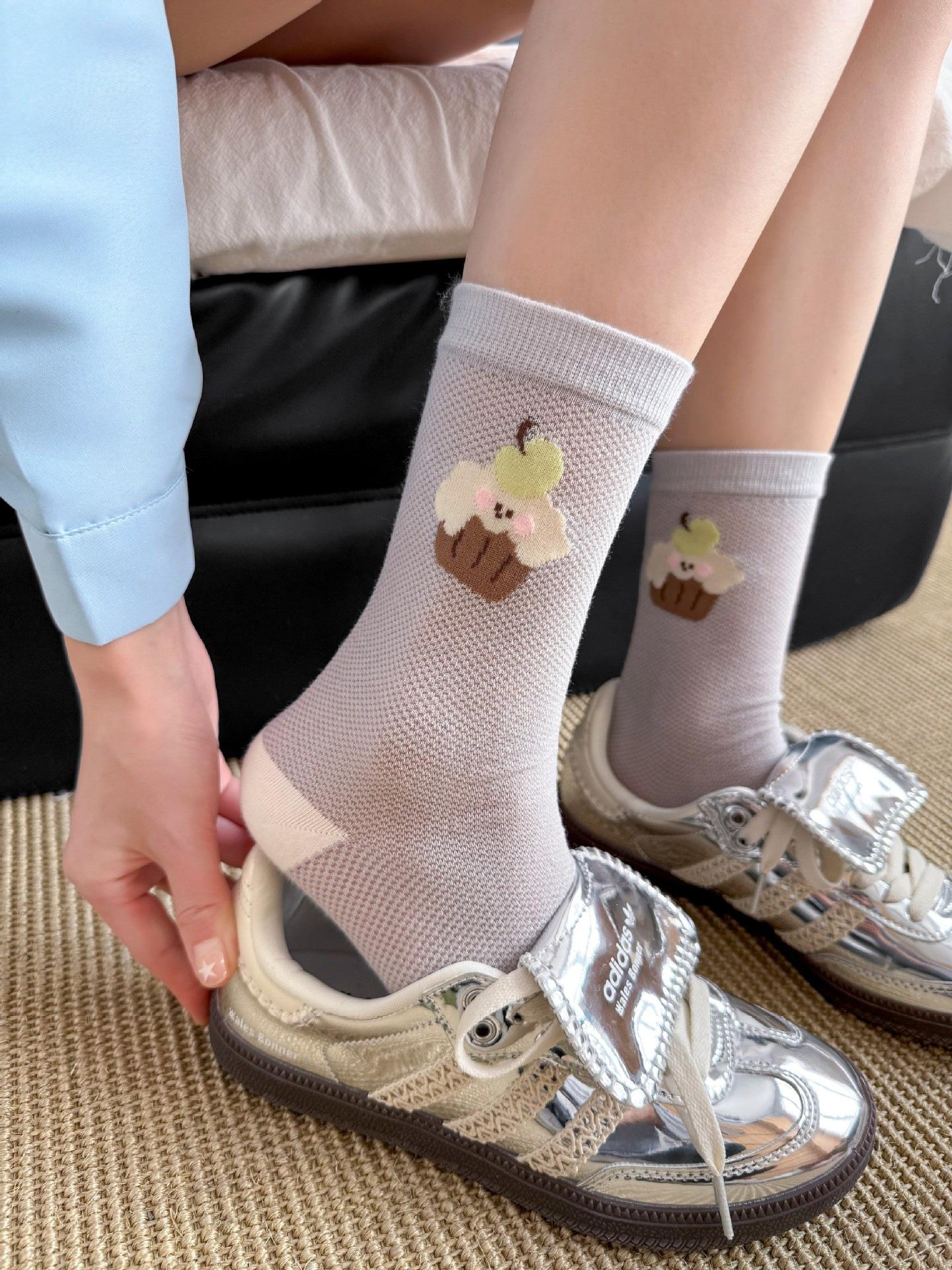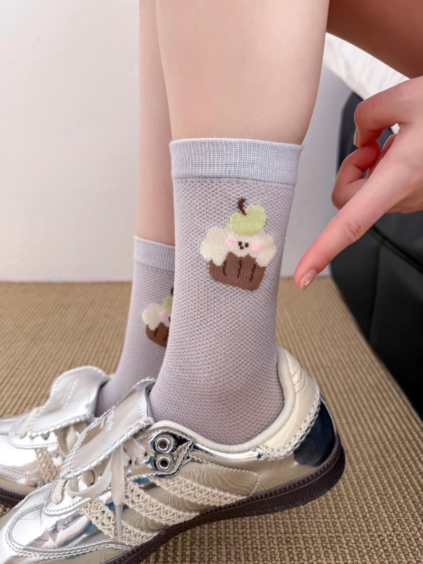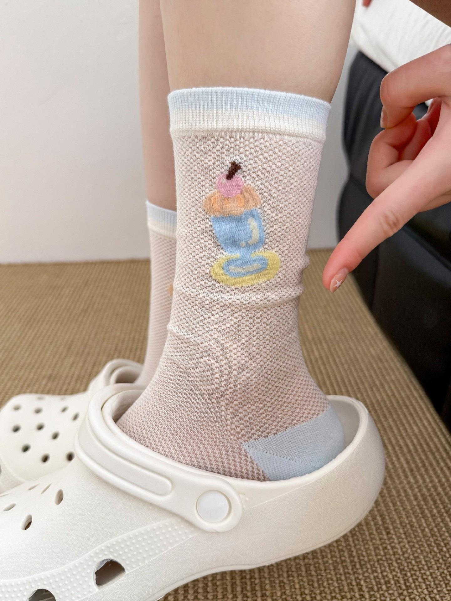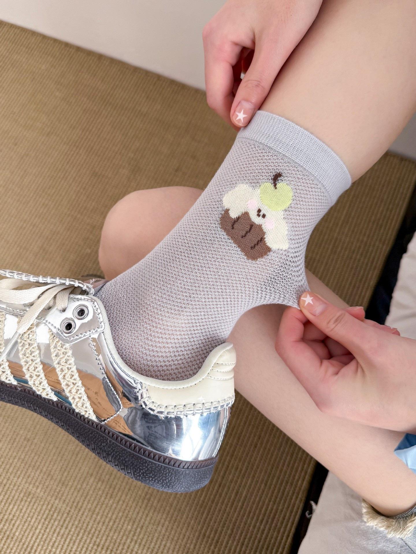 Primavera y verano nuevos calcetines de algodón de malla fina transpirable para mujer todo en uno sin costuras lindo perro de dibujos animados calcetines de montón al por mayor