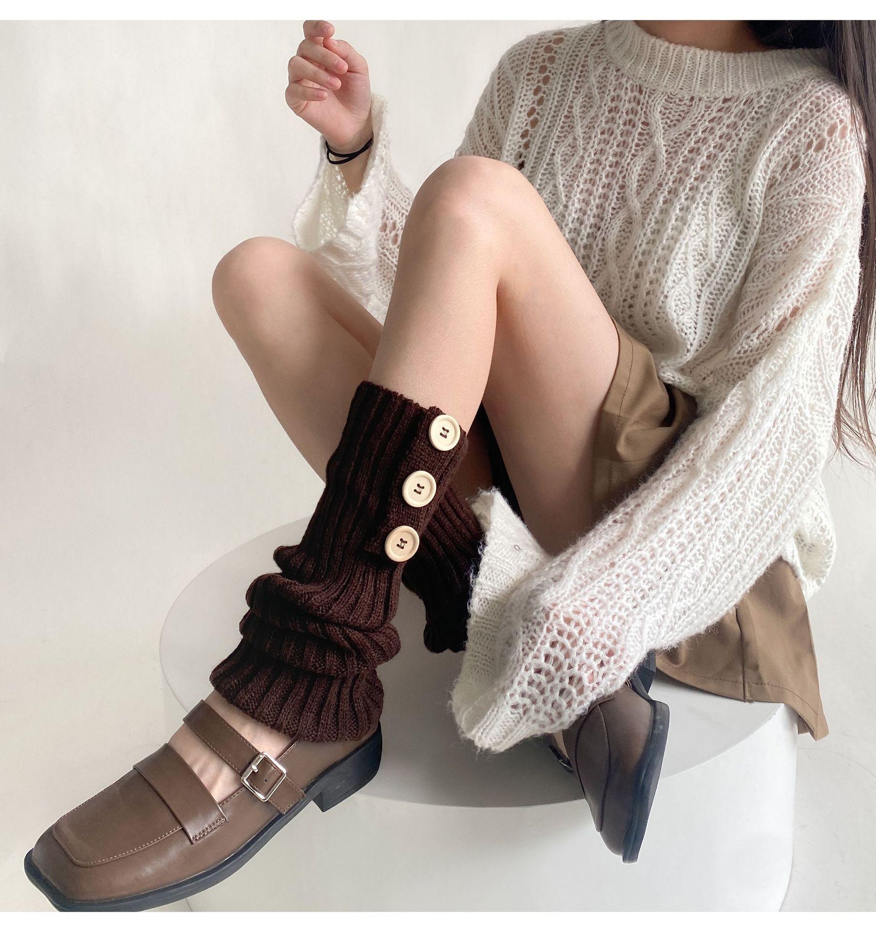 Calcetines de botón con patrón vertical abotonado cálidos de color sólido combinables otoño e invierno cubrepiés de punto calcetines de rizo modernos estilo japonés para mujer
