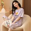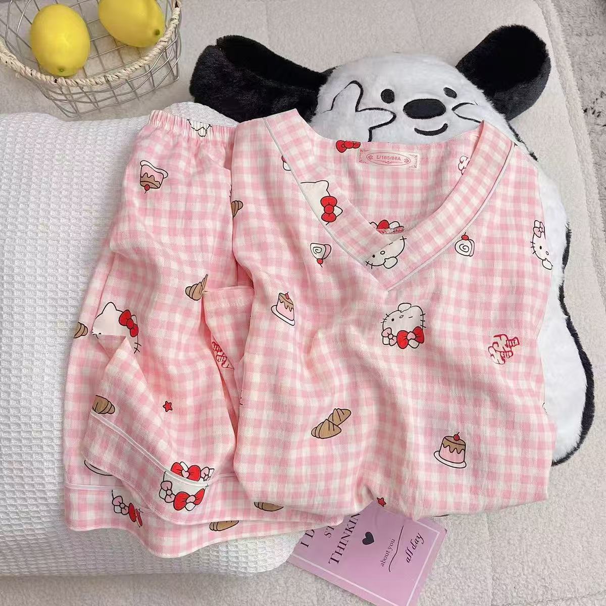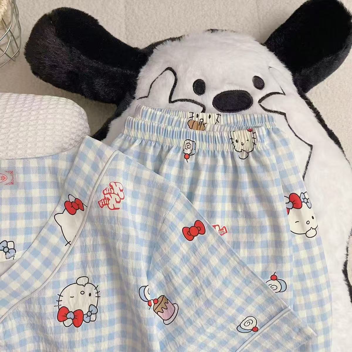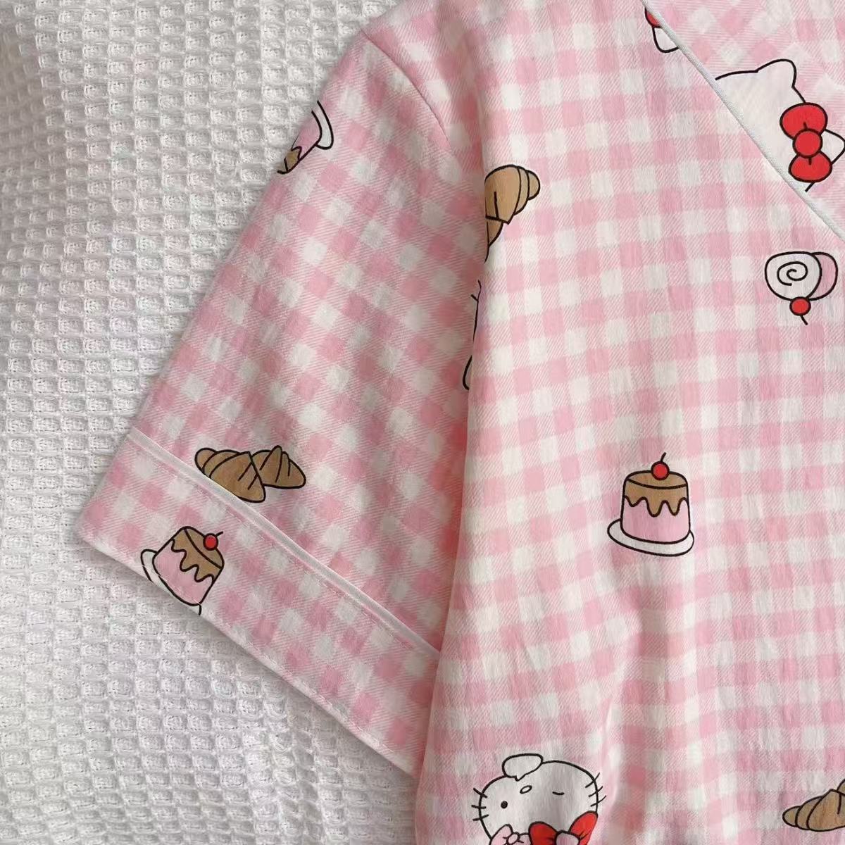 Pijama de algodón de nube para mujer, de verano, fino, con dibujos animados de gato KT, color liso, de manga corta, para el hogar, ropa exterior de verano.