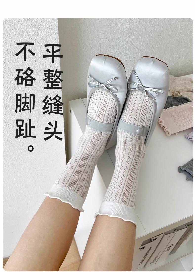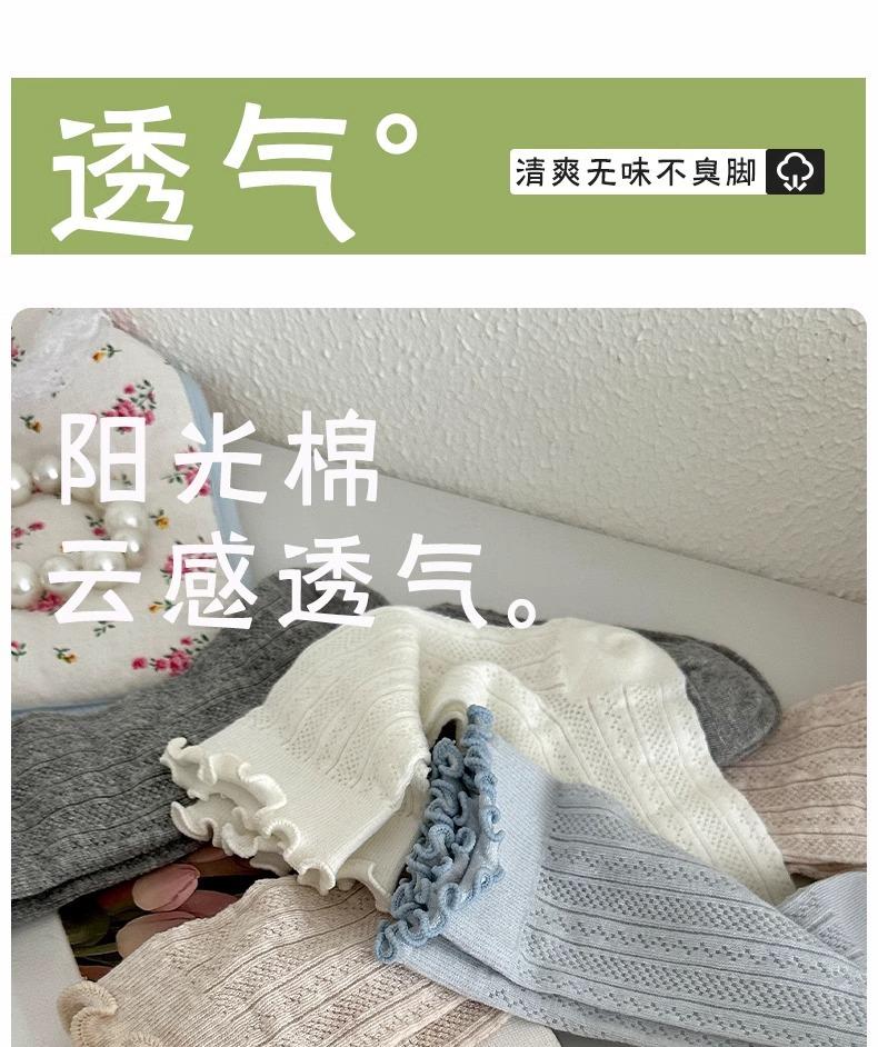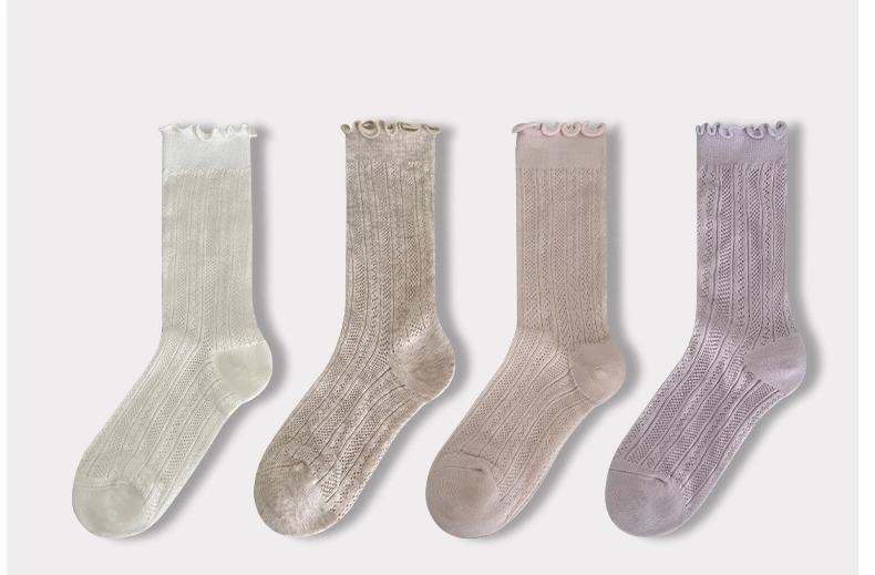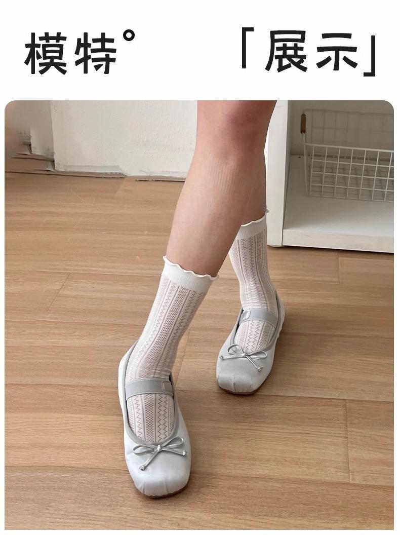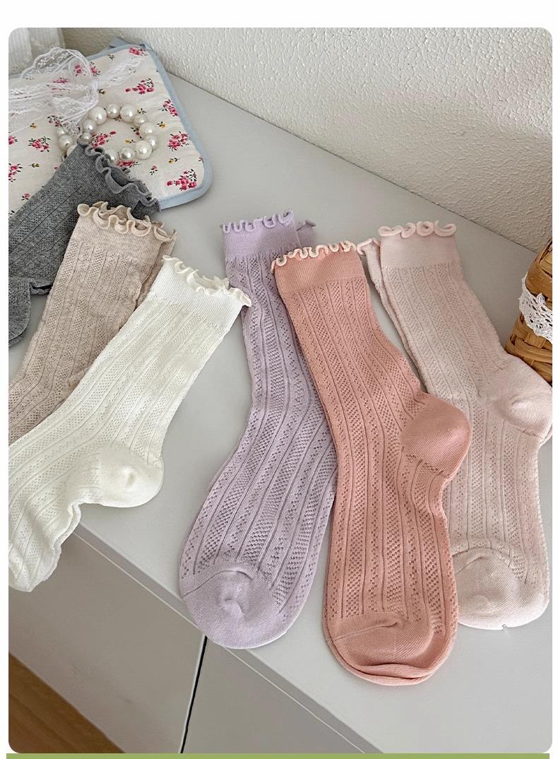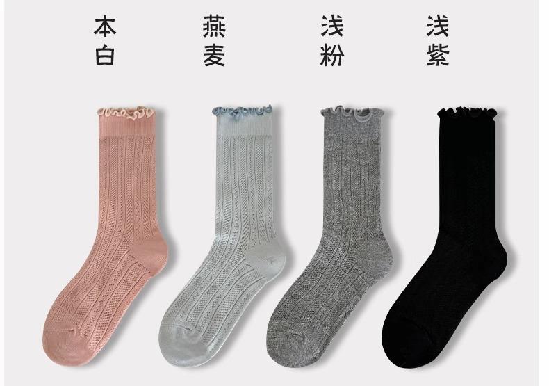 Calcetines de oreja de madera para mujer calcetines de tubo medio medias finas de verano algodón malla transpirable primavera y otoño calcetines blancos de rizo japoneses