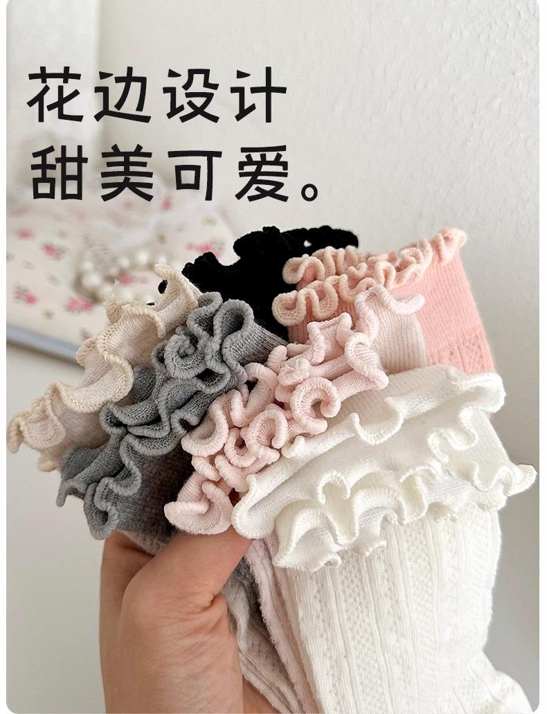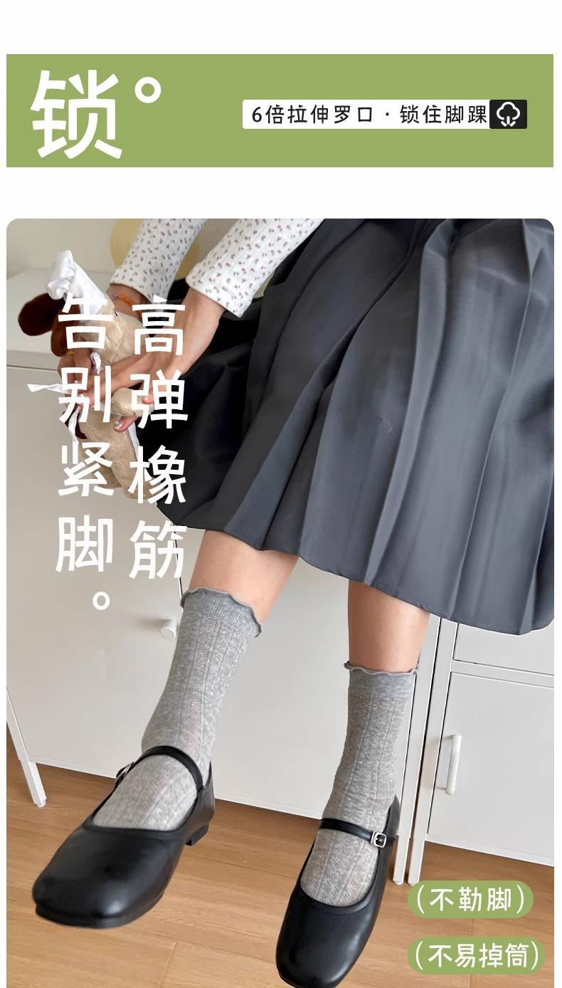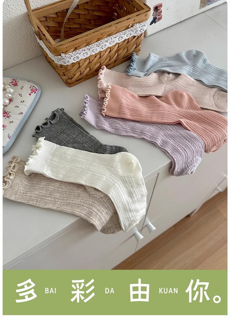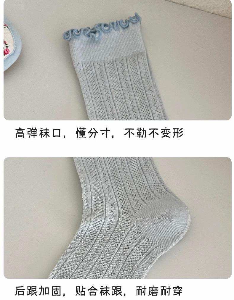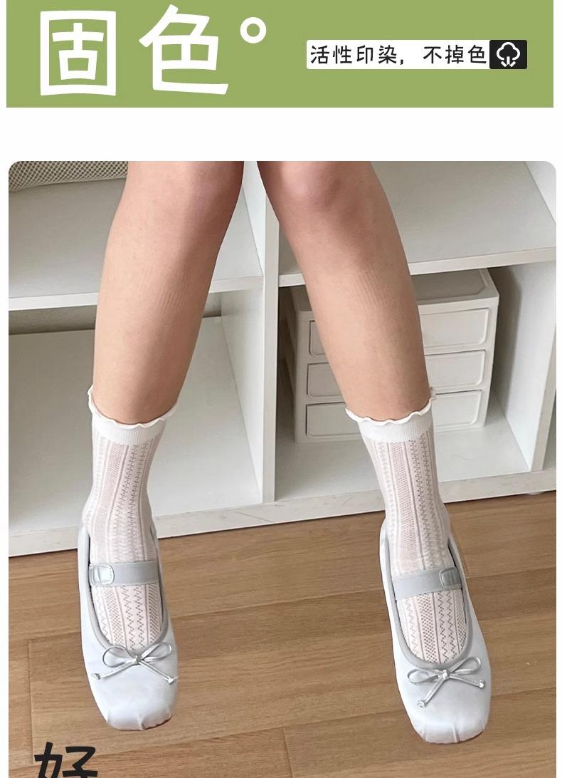 Calcetines de oreja de madera para mujer calcetines de tubo medio medias finas de verano algodón malla transpirable primavera y otoño calcetines blancos de rizo japoneses