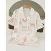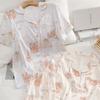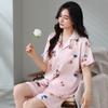 Pijamas de Primavera y Verano Nueva Llegada para Mujer Seda de Hielo Delgada Fresca Manga Corta Shorts Moda Estampado Imitación Seda Ropa de Casa para Mujer