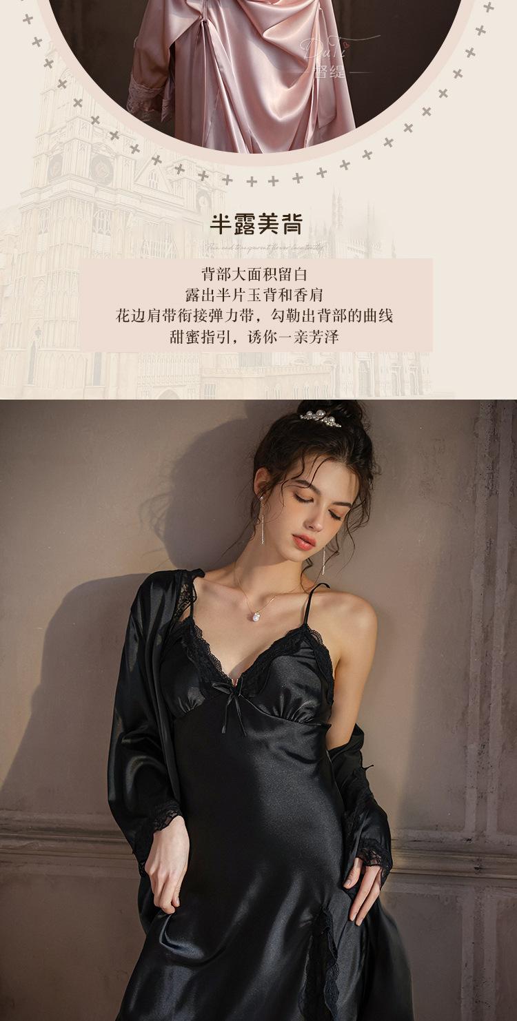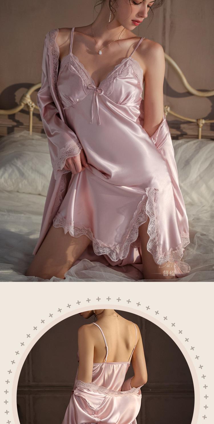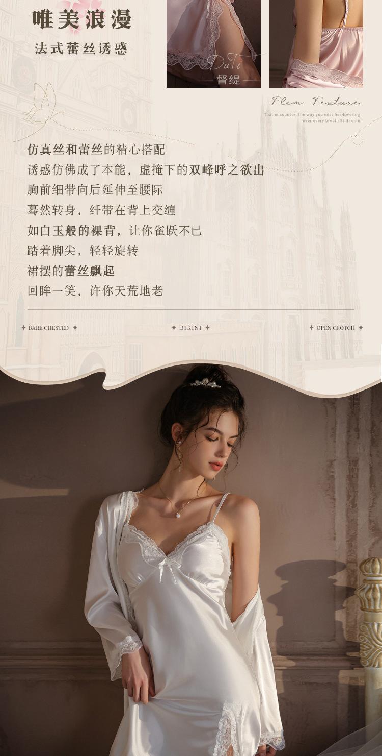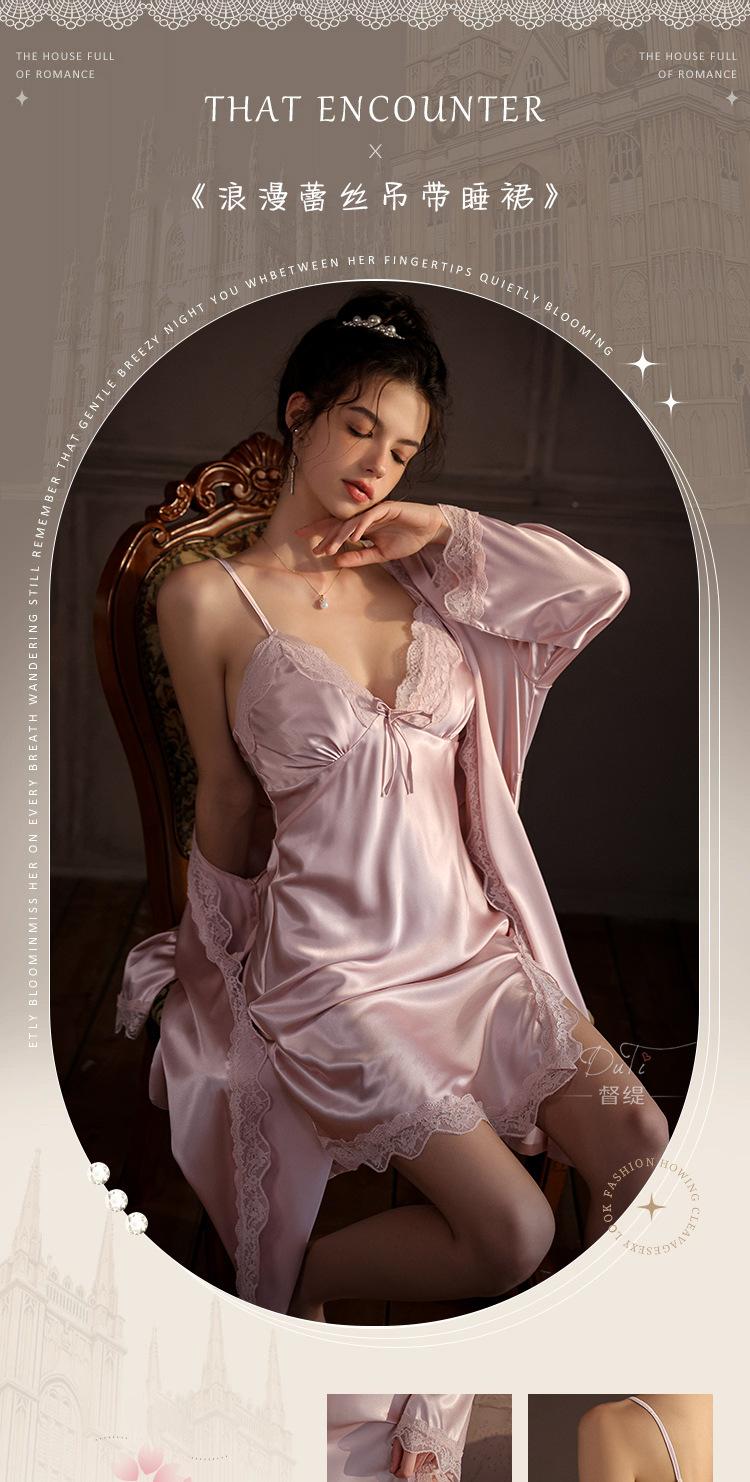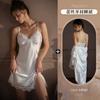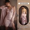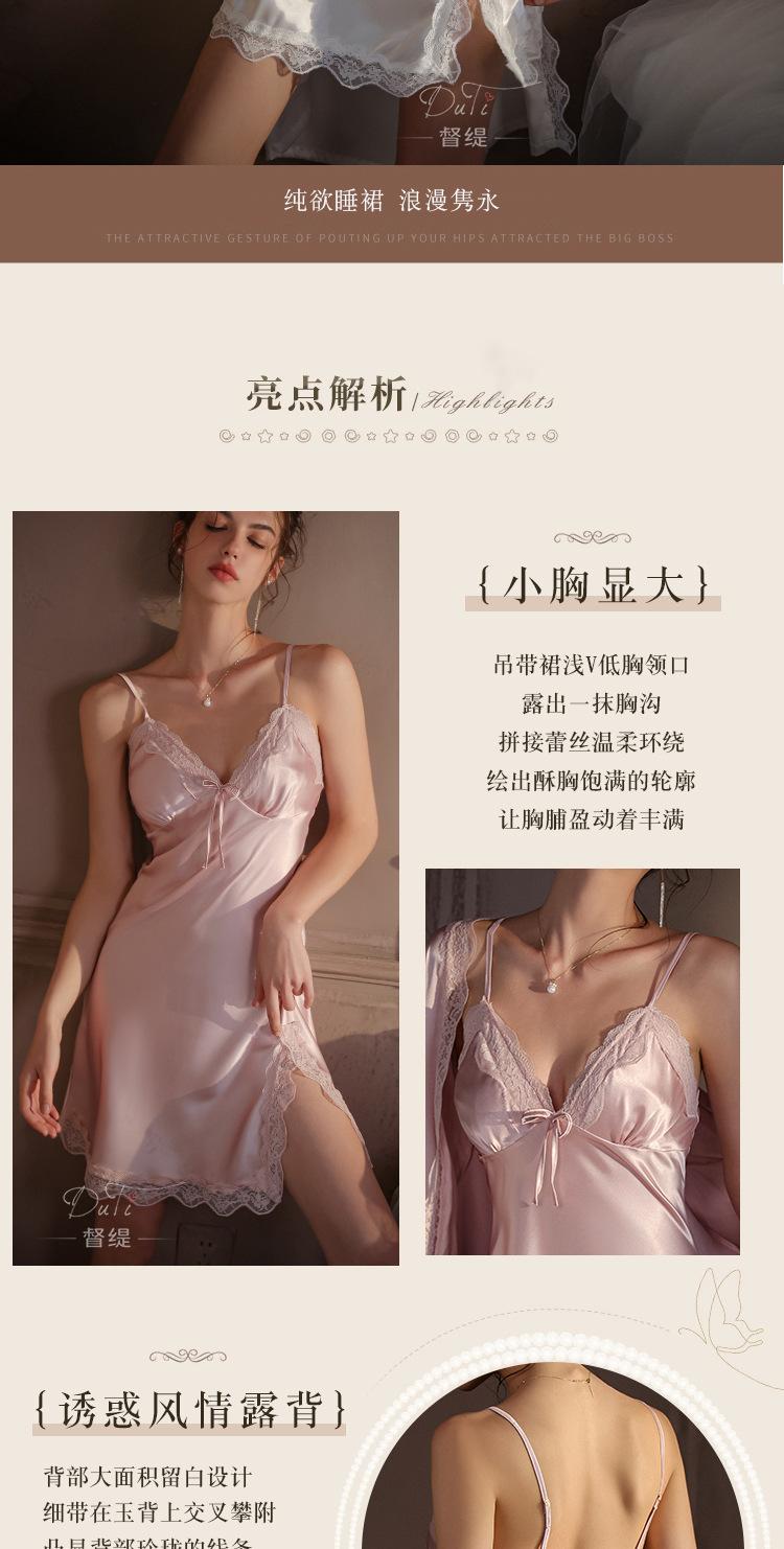 Xianyi Camisón de Encaje y Satén de Deseo Puro Cómodo con Almohadillas en el Pecho Cuello en V Sin Espalda Pijama Sexy Conjunto de Alta Gama para Mujer Verano 512