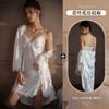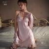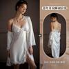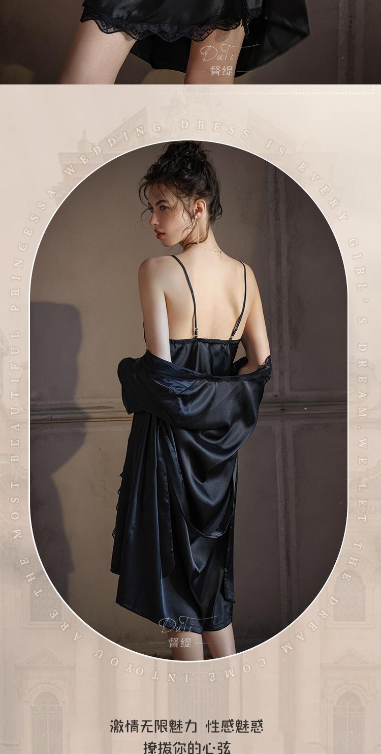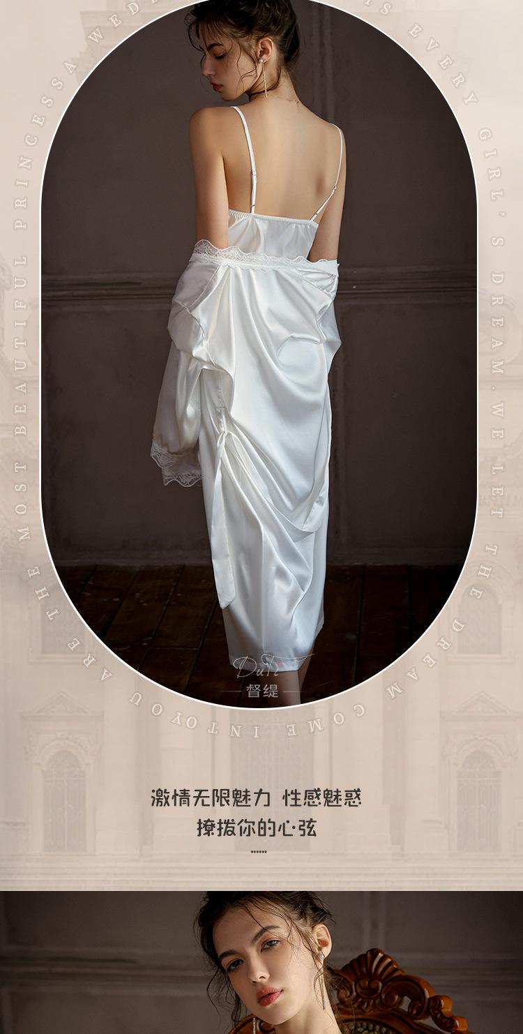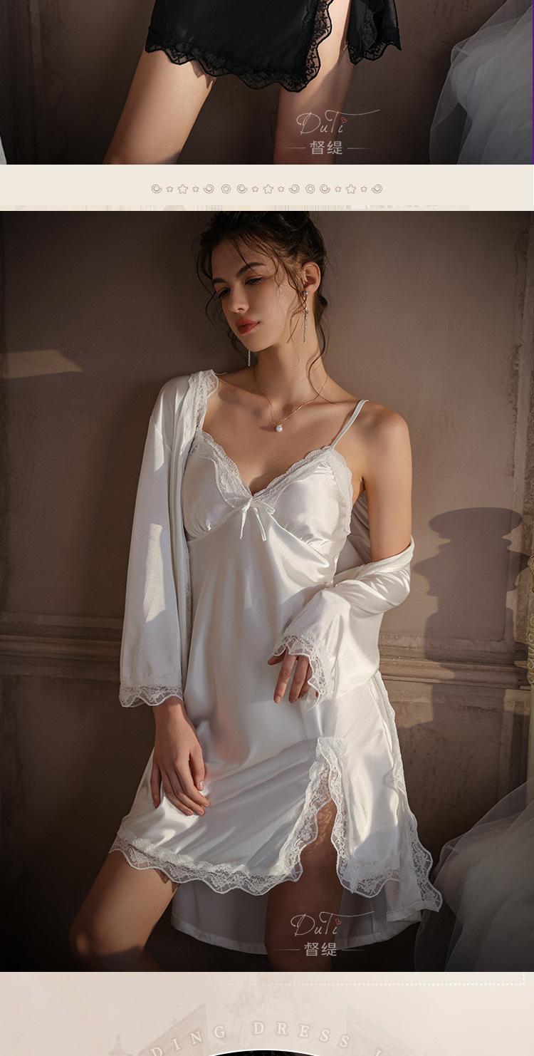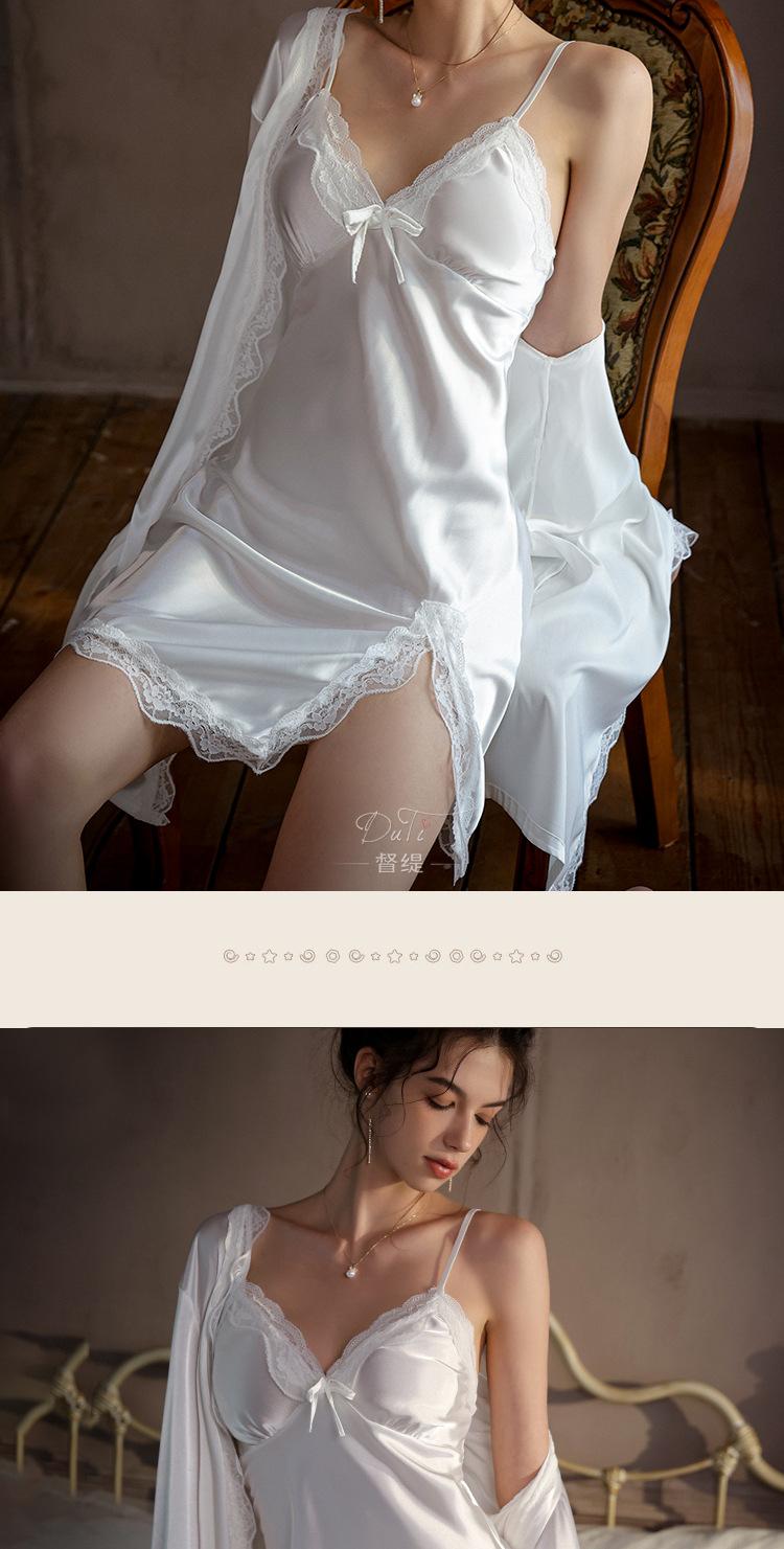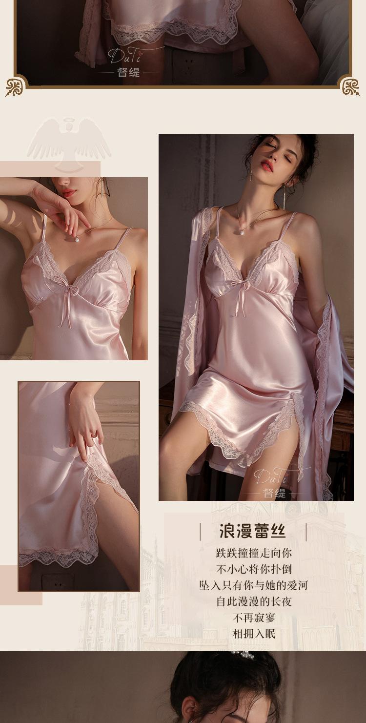Xianyi Camisón de Encaje y Satén de Deseo Puro Cómodo con Almohadillas en el Pecho Cuello en V Sin Espalda Pijama Sexy Conjunto de Alta Gama para Mujer Verano 512