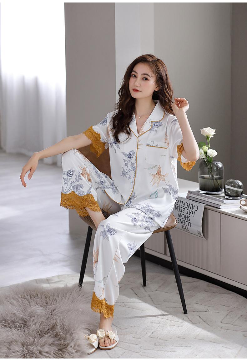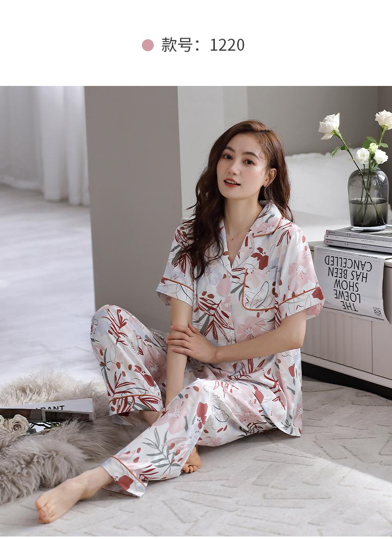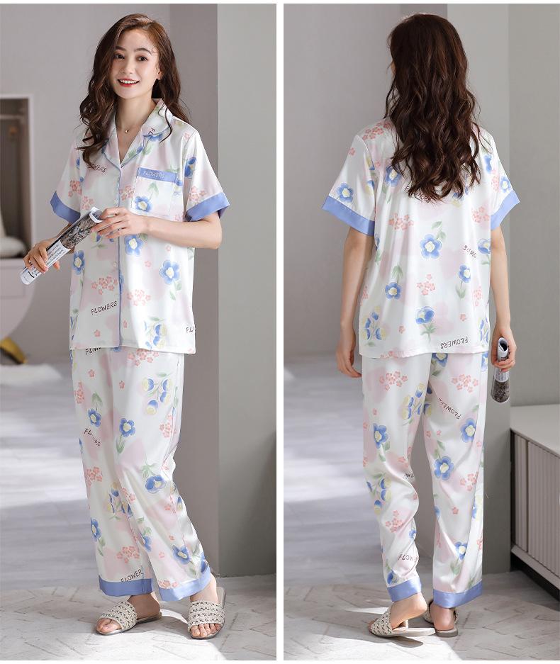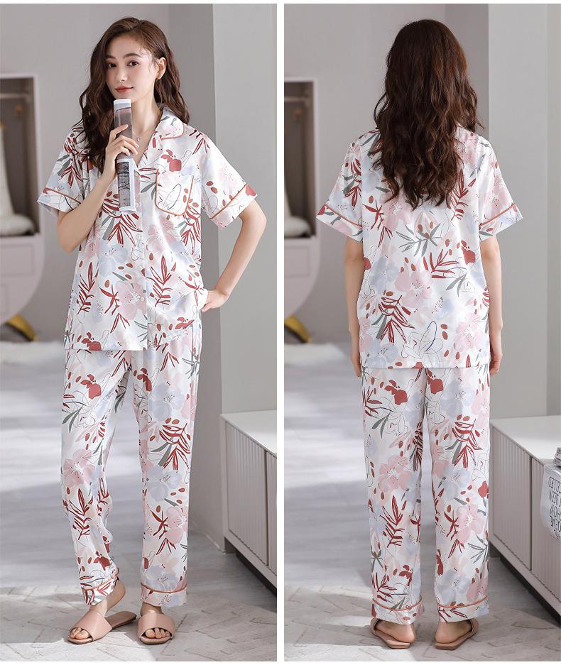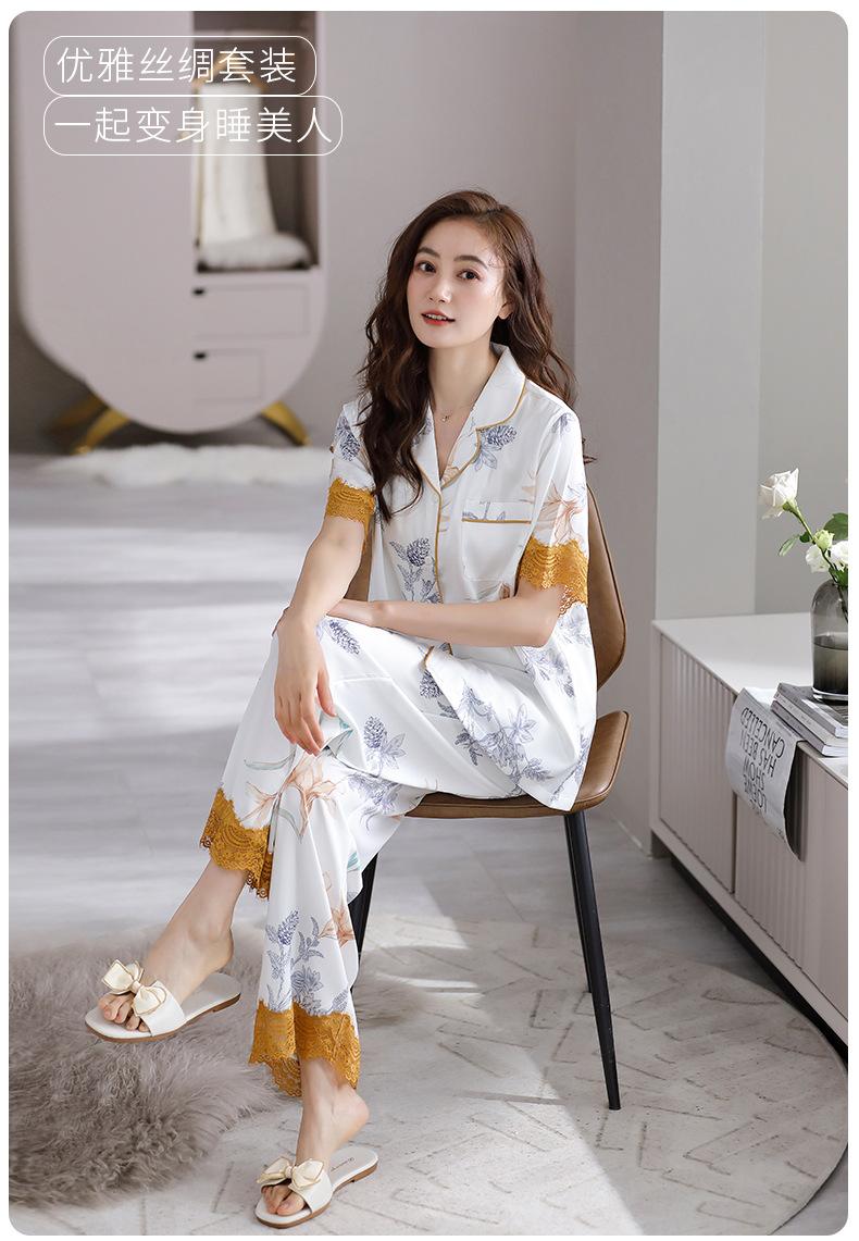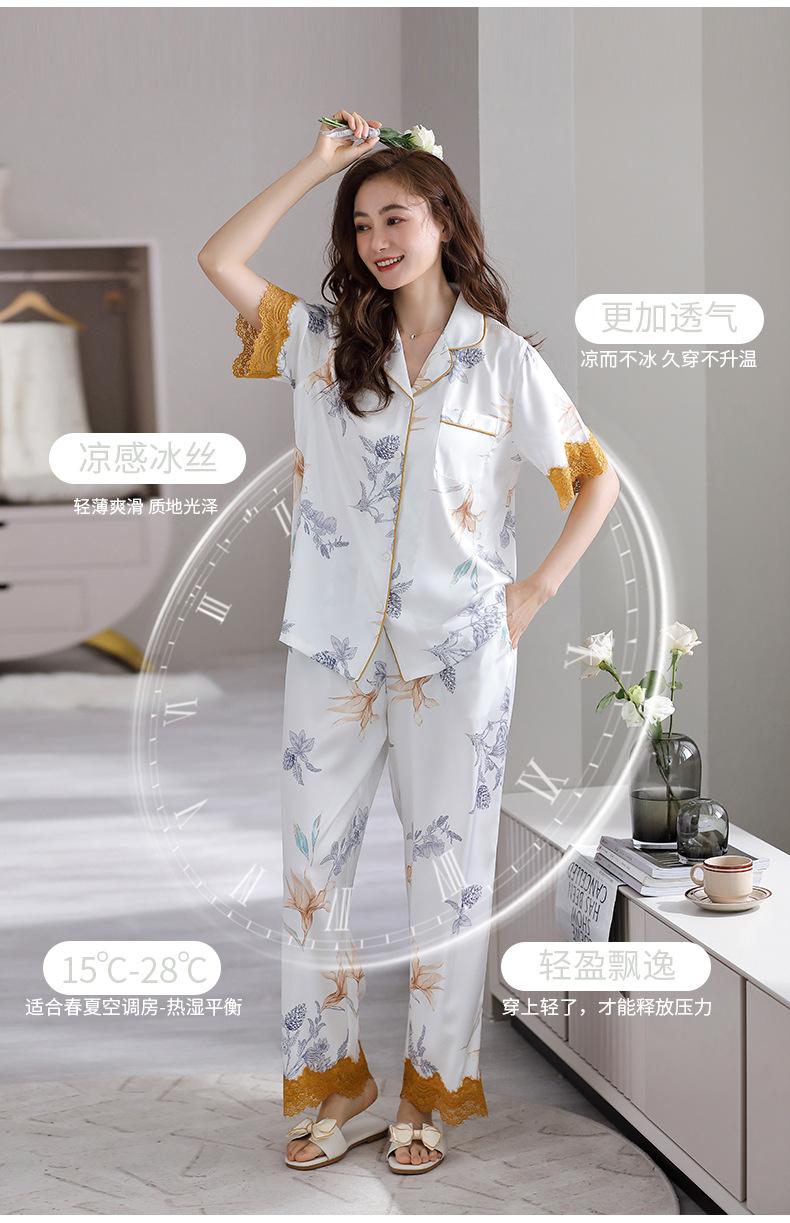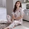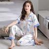 Pijama de verano para mujer, de seda helada, de satén, de manga corta, tipo cárdigan, pantalón, traje informal, moderno, cómodo y juvenil, ropa para el hogar