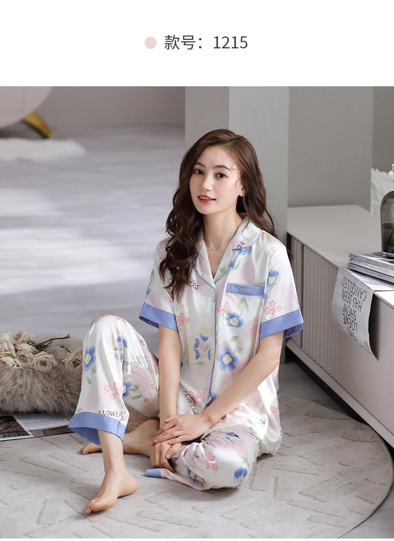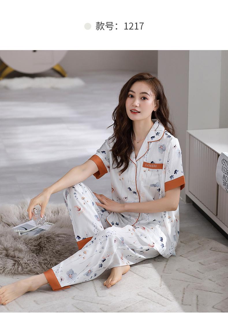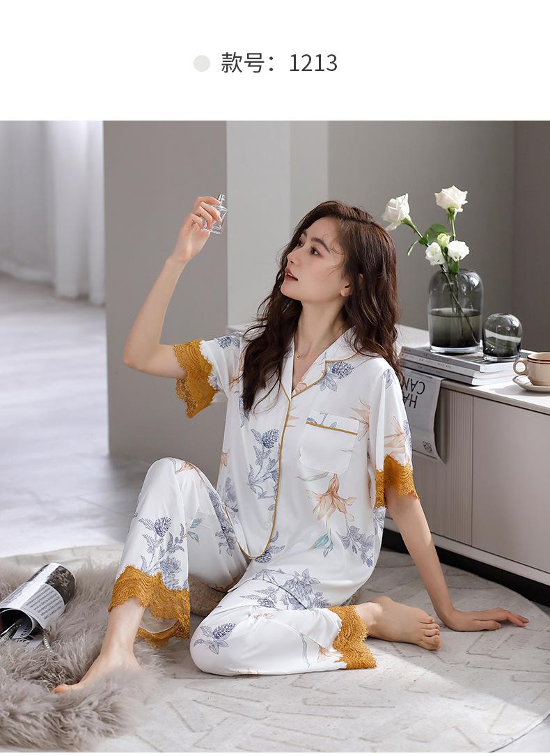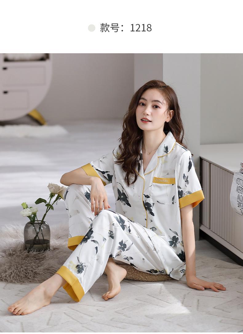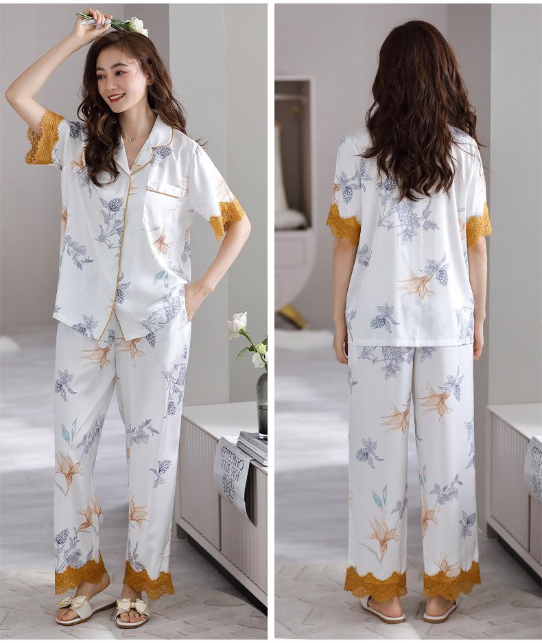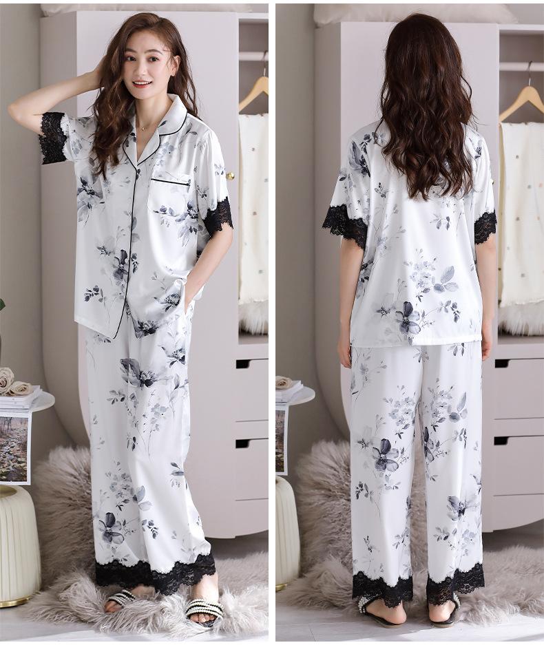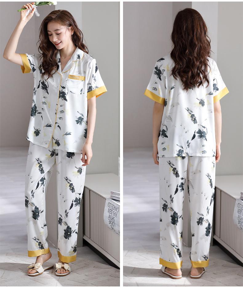 Pijama de verano para mujer, de seda helada, de satén, de manga corta, tipo cárdigan, pantalón, traje informal, moderno, cómodo y juvenil, ropa para el hogar