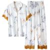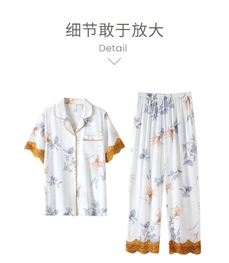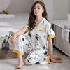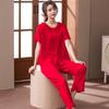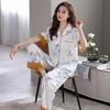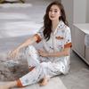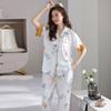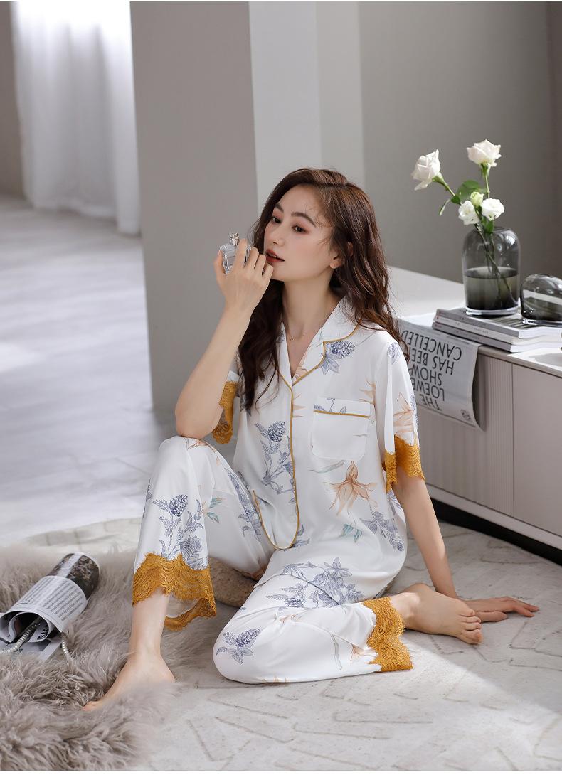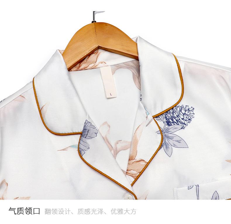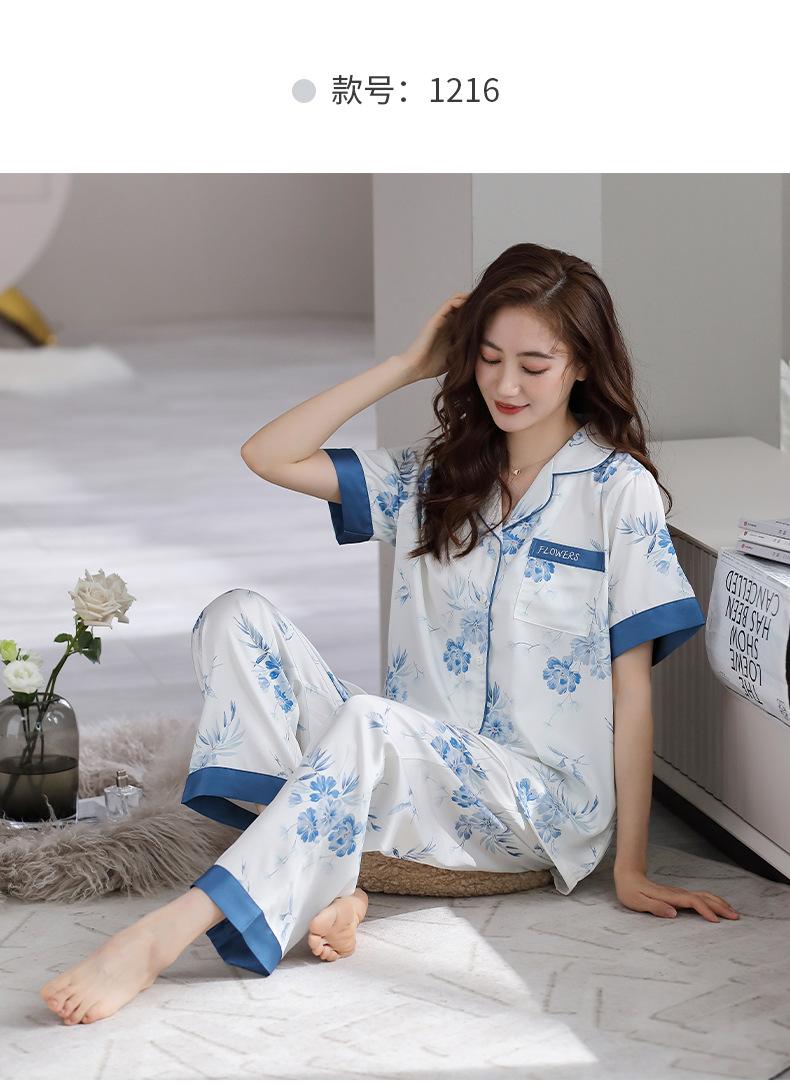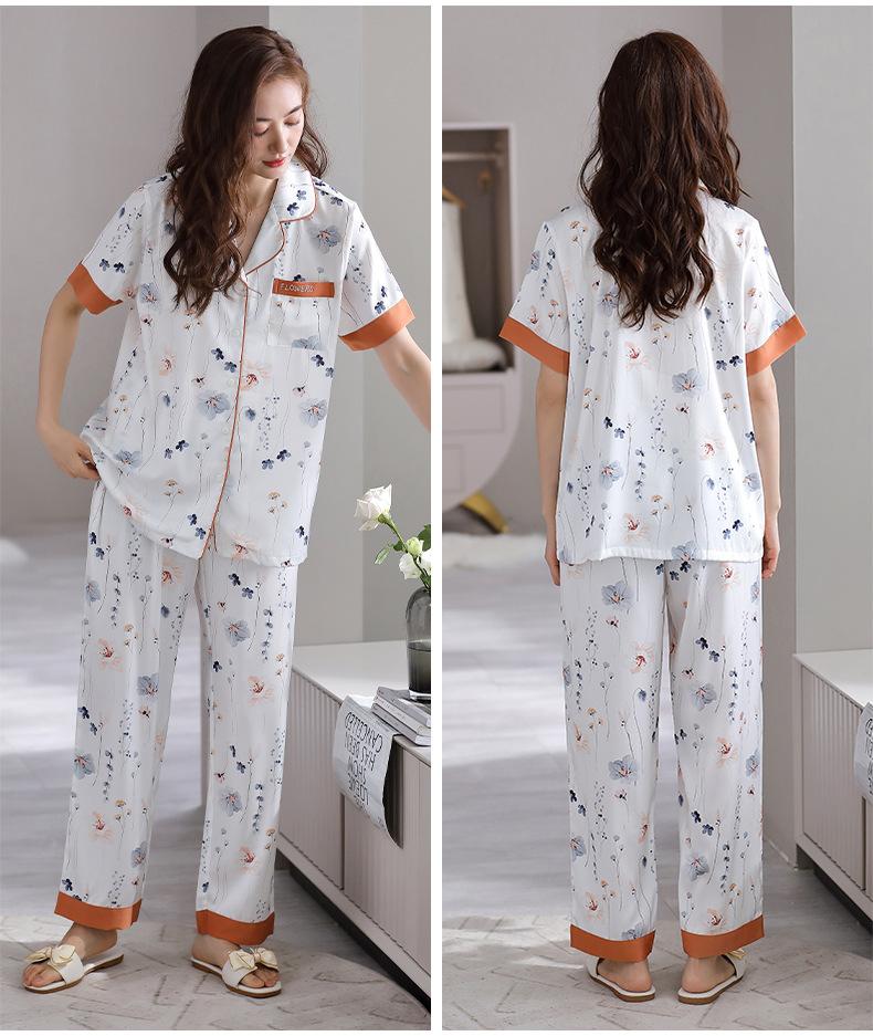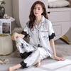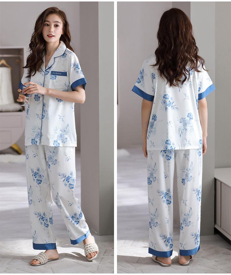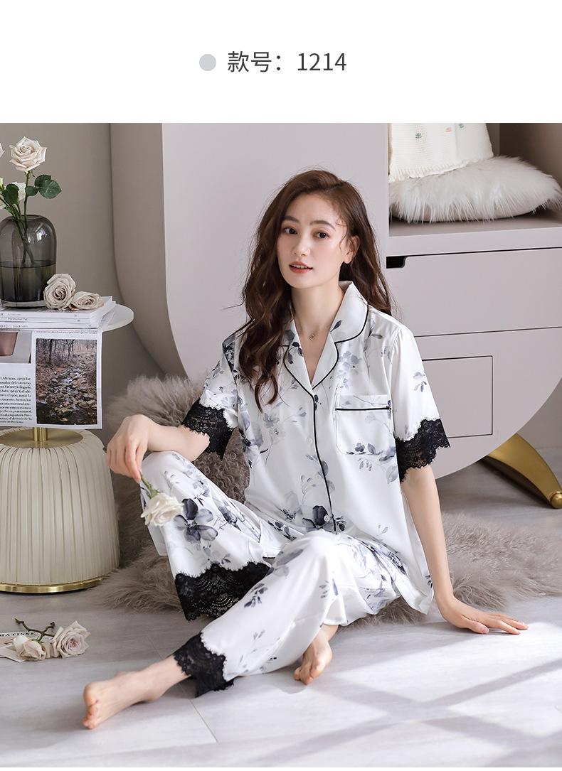 Pijama de verano para mujer, de seda helada, de satén, de manga corta, tipo cárdigan, pantalón, traje informal, moderno, cómodo y juvenil, ropa para el hogar