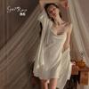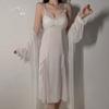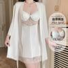 Guiruo Talla Grande Ropa Íntima Pura Lujuria Tentación Recorte Plus Almohadilla para Busto Sexy Suave Satén Camisón Bata Exterior Traje de Mujer 1712
