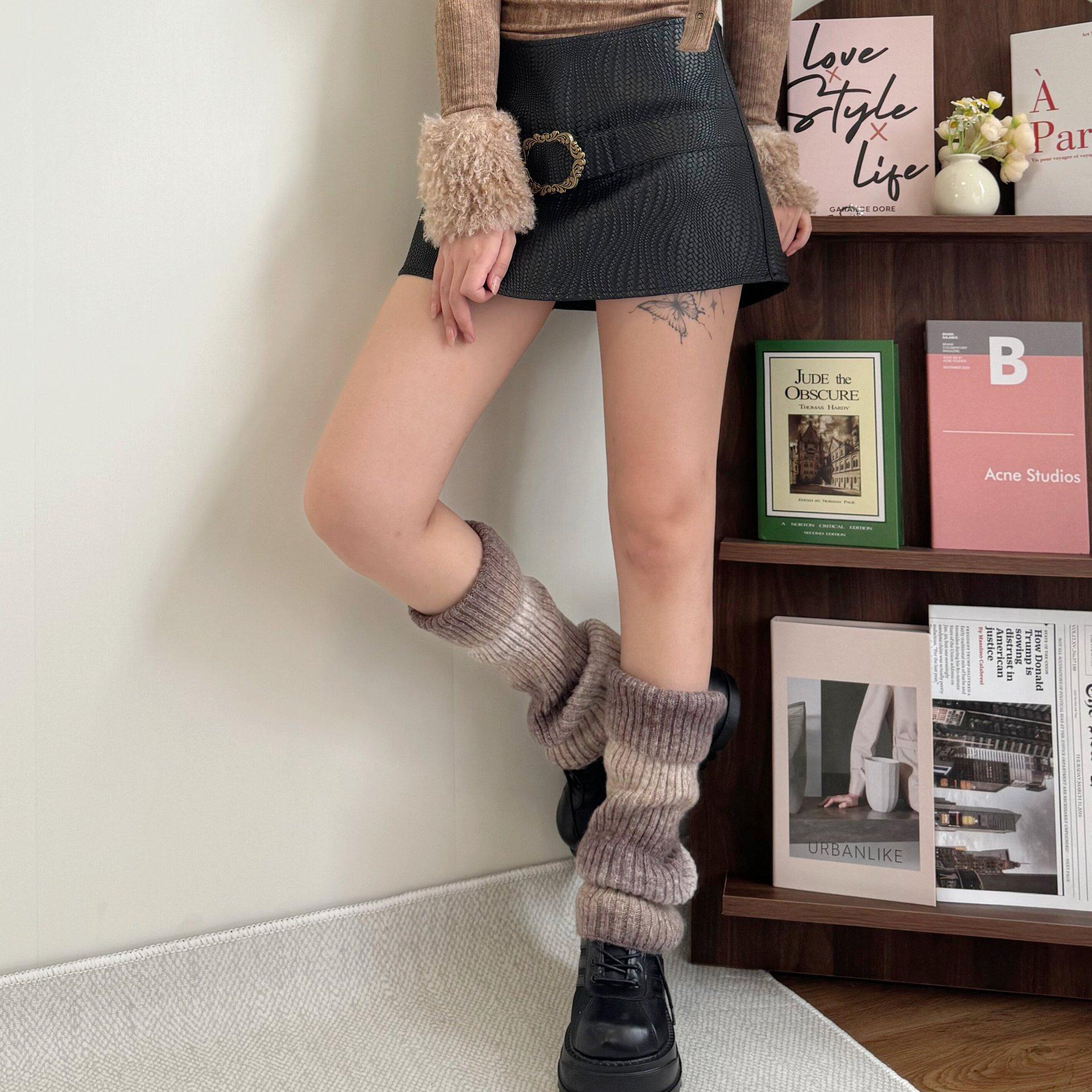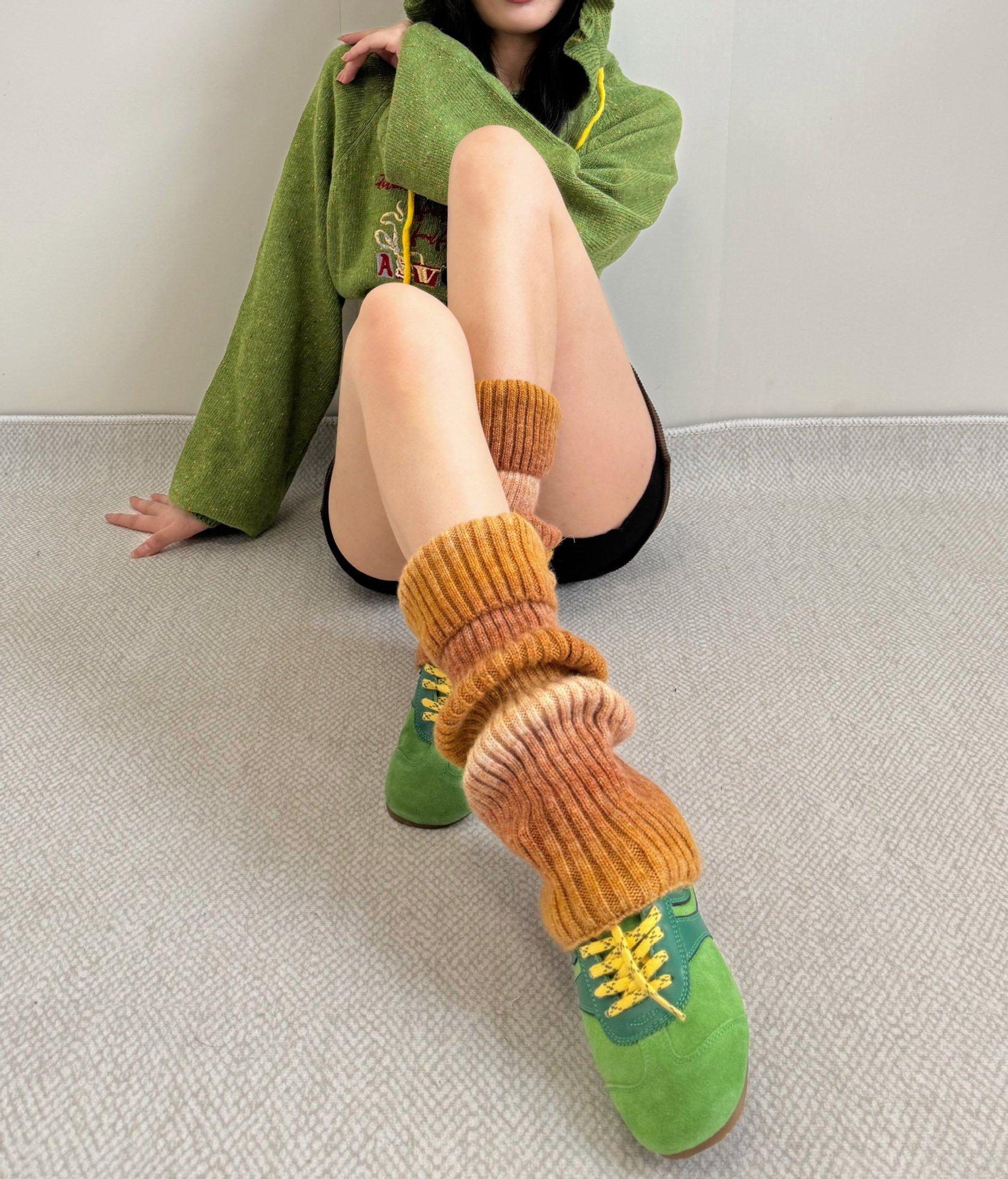 Otoño e Invierno Nueva Moda Color Contraste Cálido Suave Lana Degradado Cubrepiernas Combinable Dobladillo Adelgazante Pierna Calcetines Apilados Cubre para Mujer