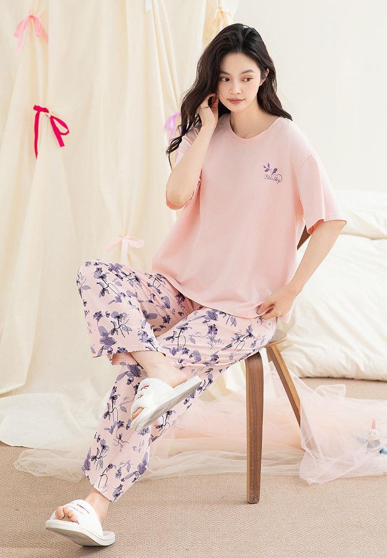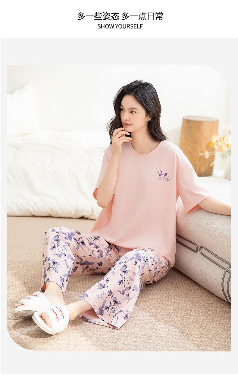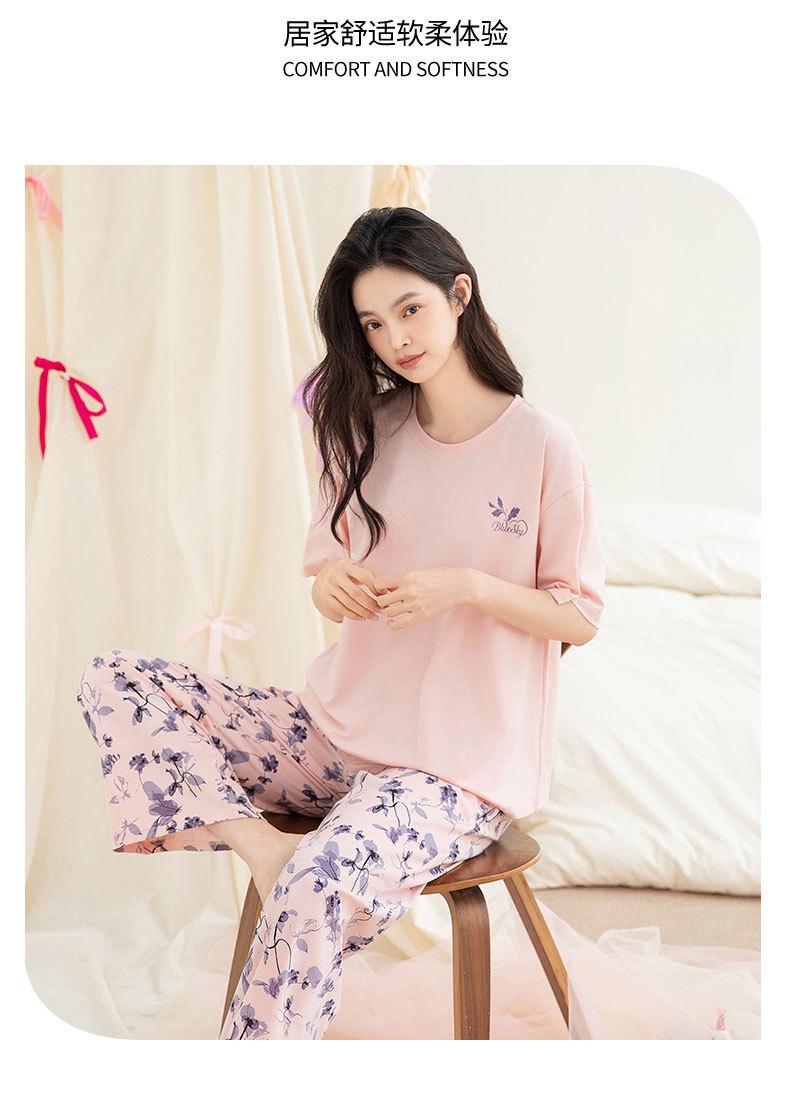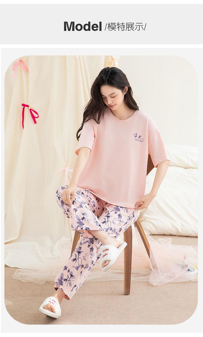 Pijamas de verano de algodón para mujer, pantalones de manga corta, ropa bonita y dulce para el hogar, pantalones con flores, traje de algodón fresco, ropa exterior fina