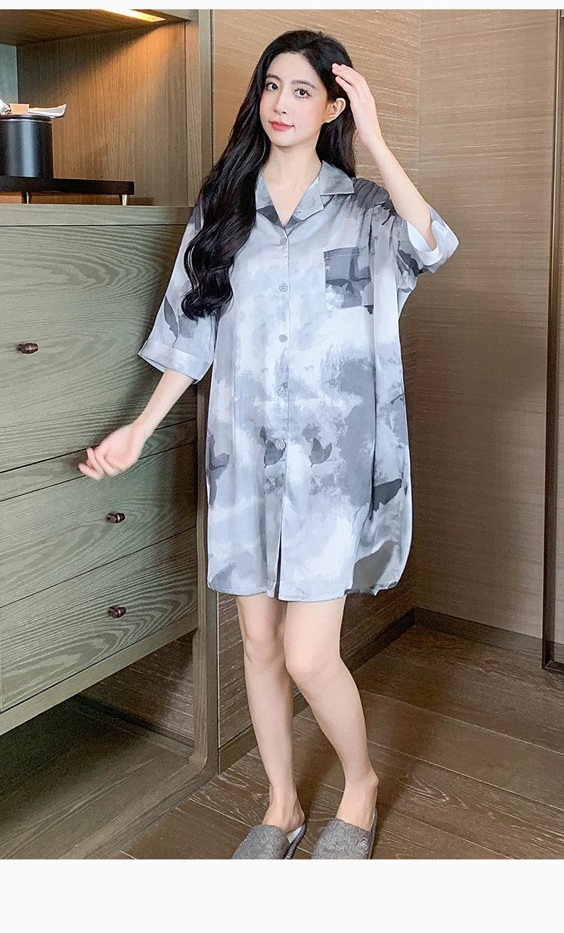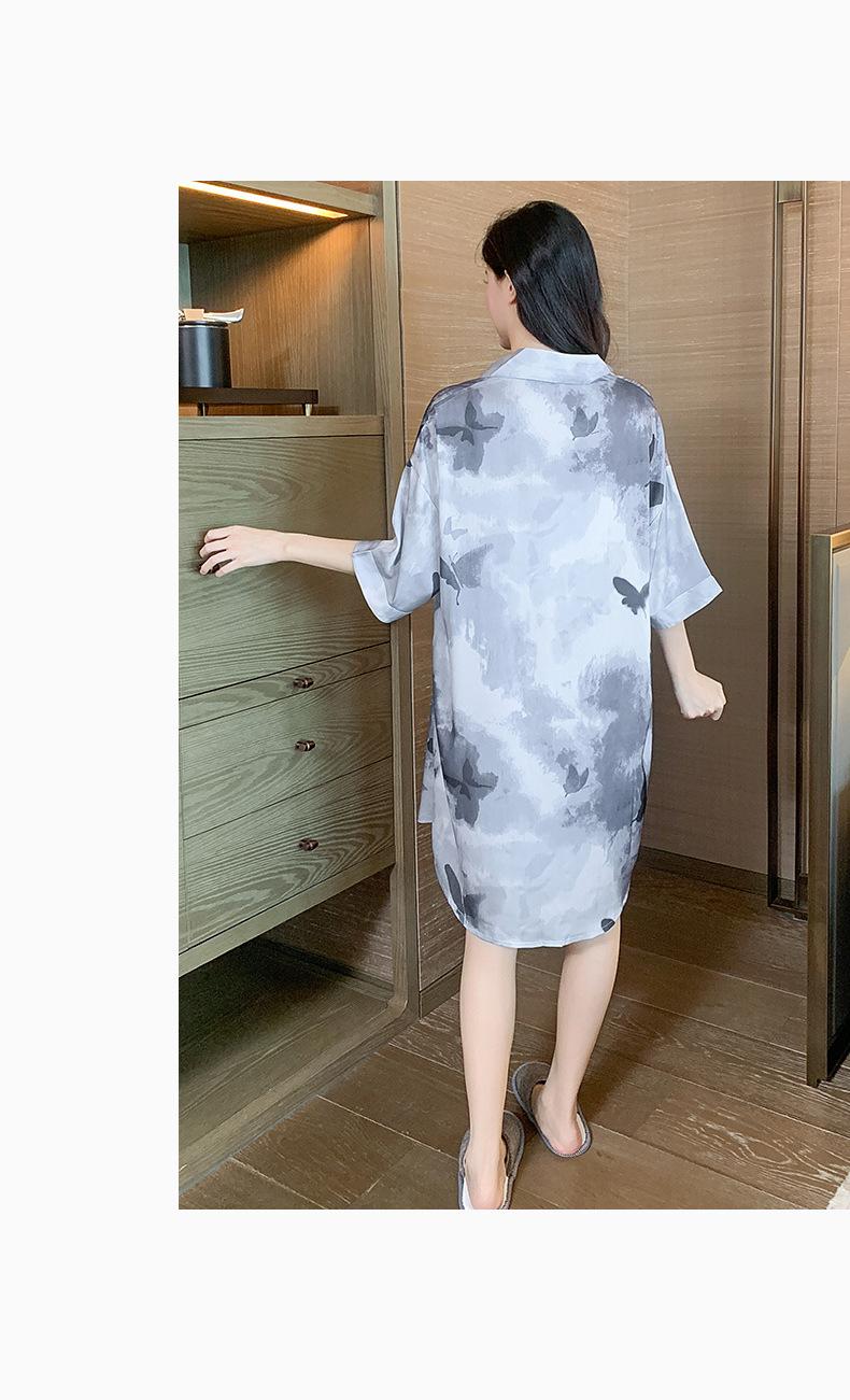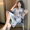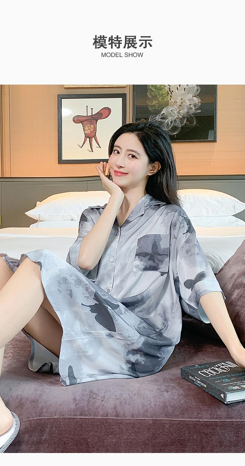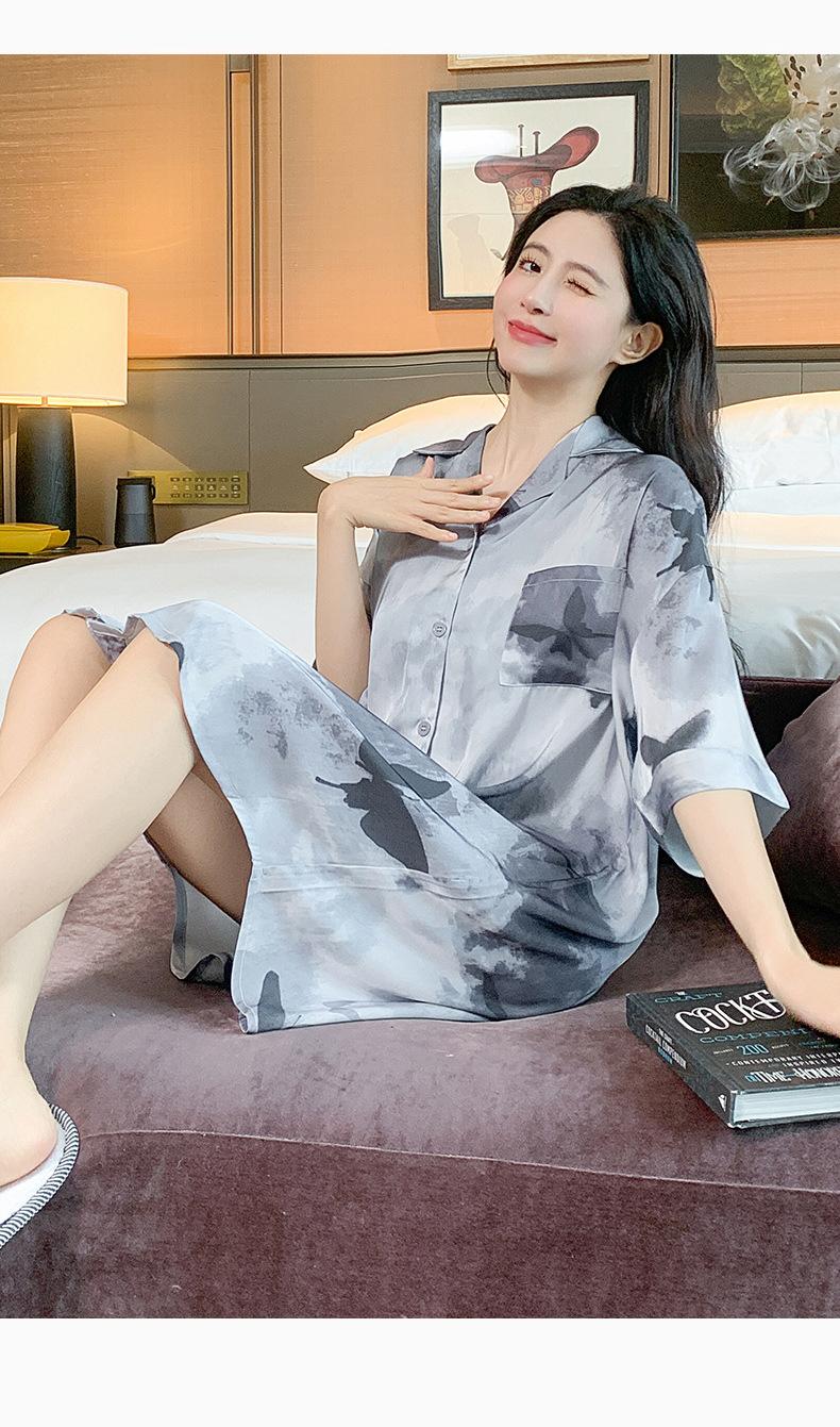 Nuevo Camisón Pijama de Mujer Verano Seda de Hielo Satén Manga Corta Falda Larga Verano Seda Talla Grande Cárdigan de Alta Gama